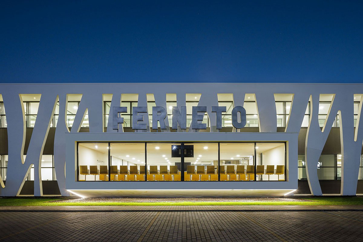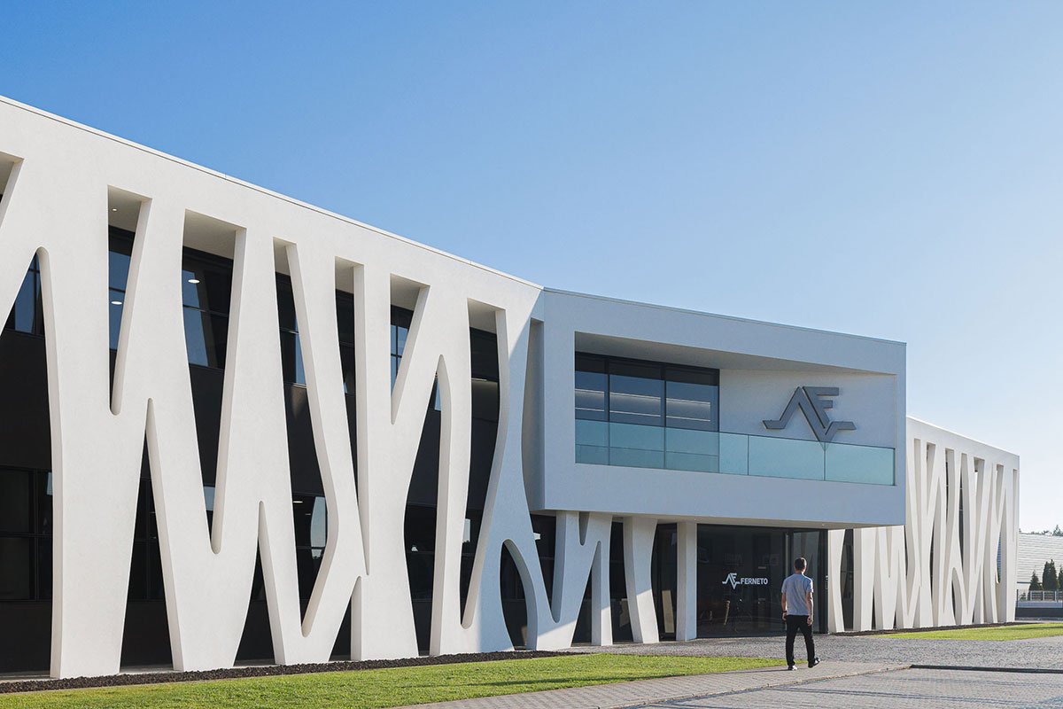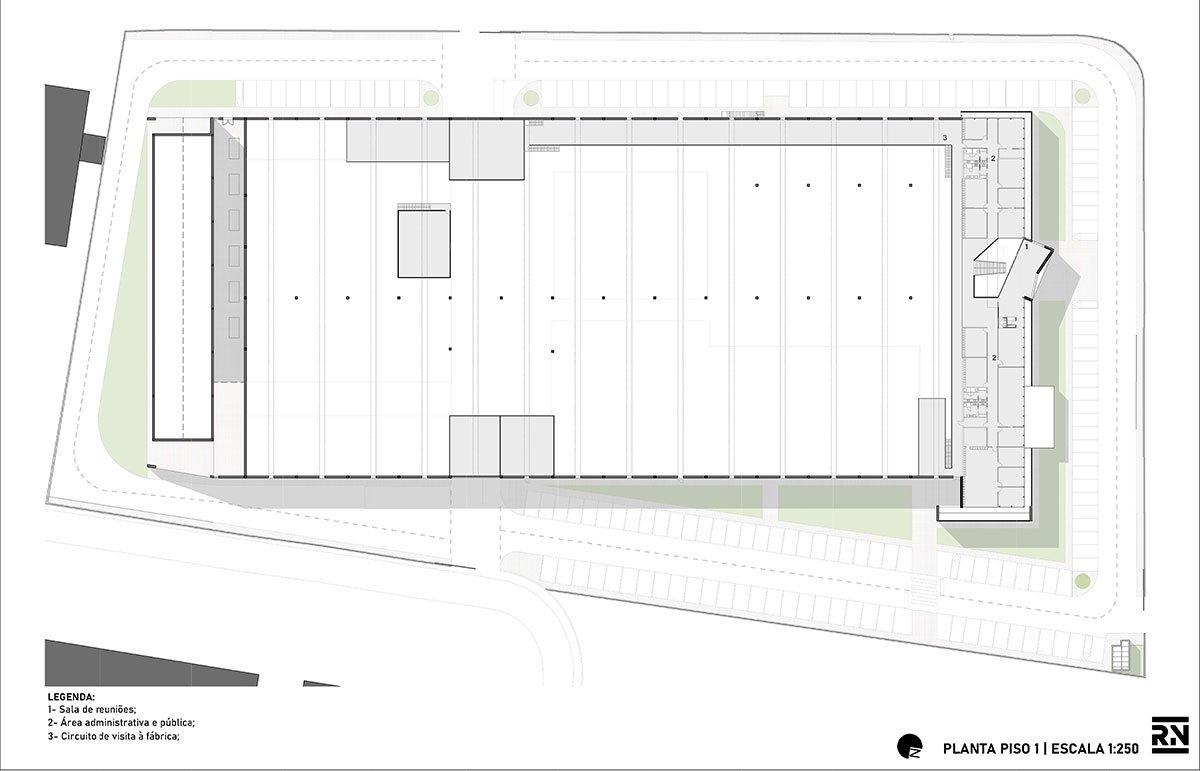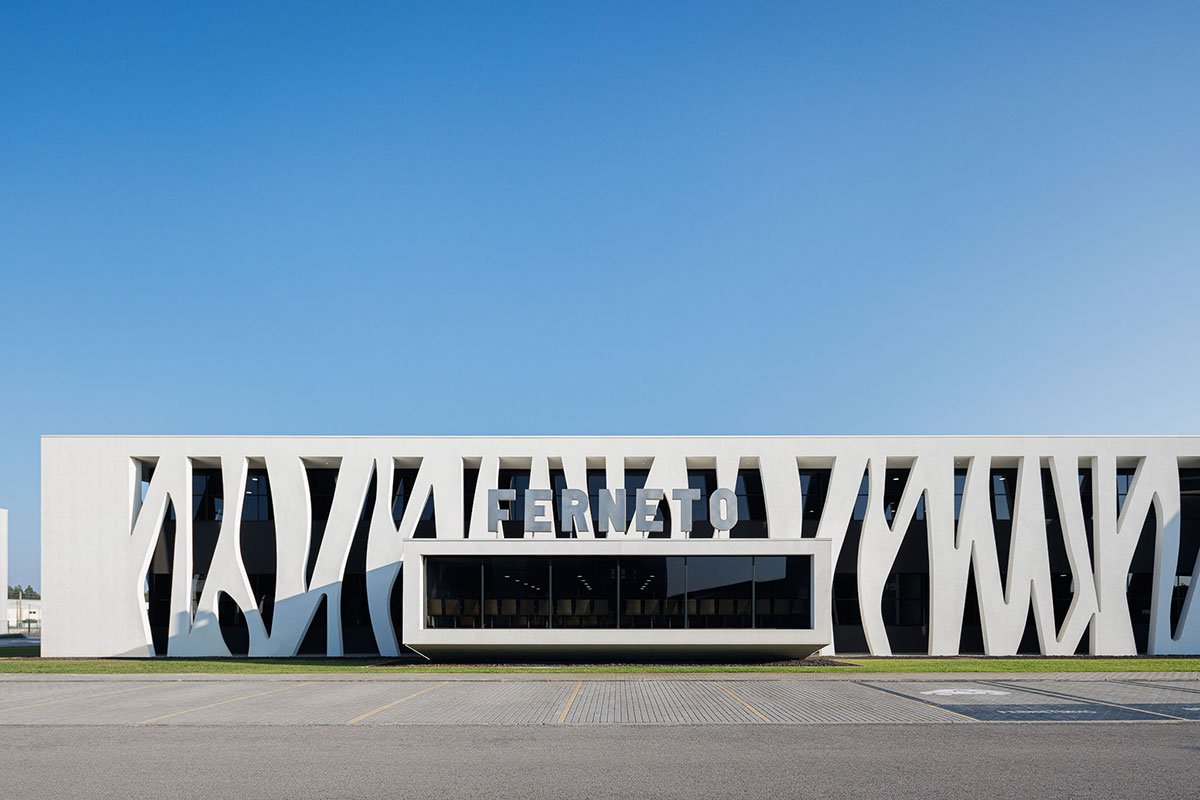 Excerpt: Ferneto SA, Designed by Rómulo Neto Architects, is an industrial building for the production of bakery and pastry machines that produce dough for bread and pastries. The design of the facade is based on the pattern of an alveolar that represents the company’s identity. The entire project is catogorised into 6 sectors including functions like Administrative, Manufacturing, Storage, Warehouse, Shipping, and Painting Area.