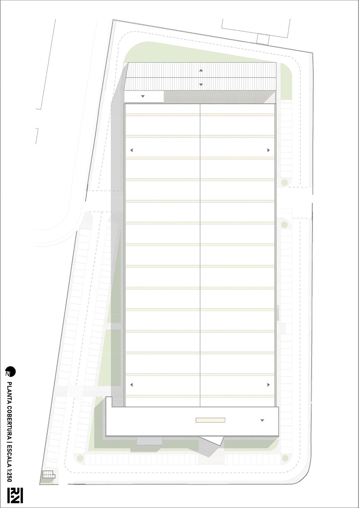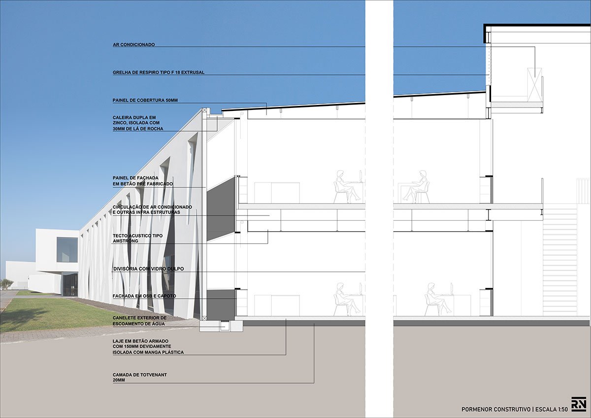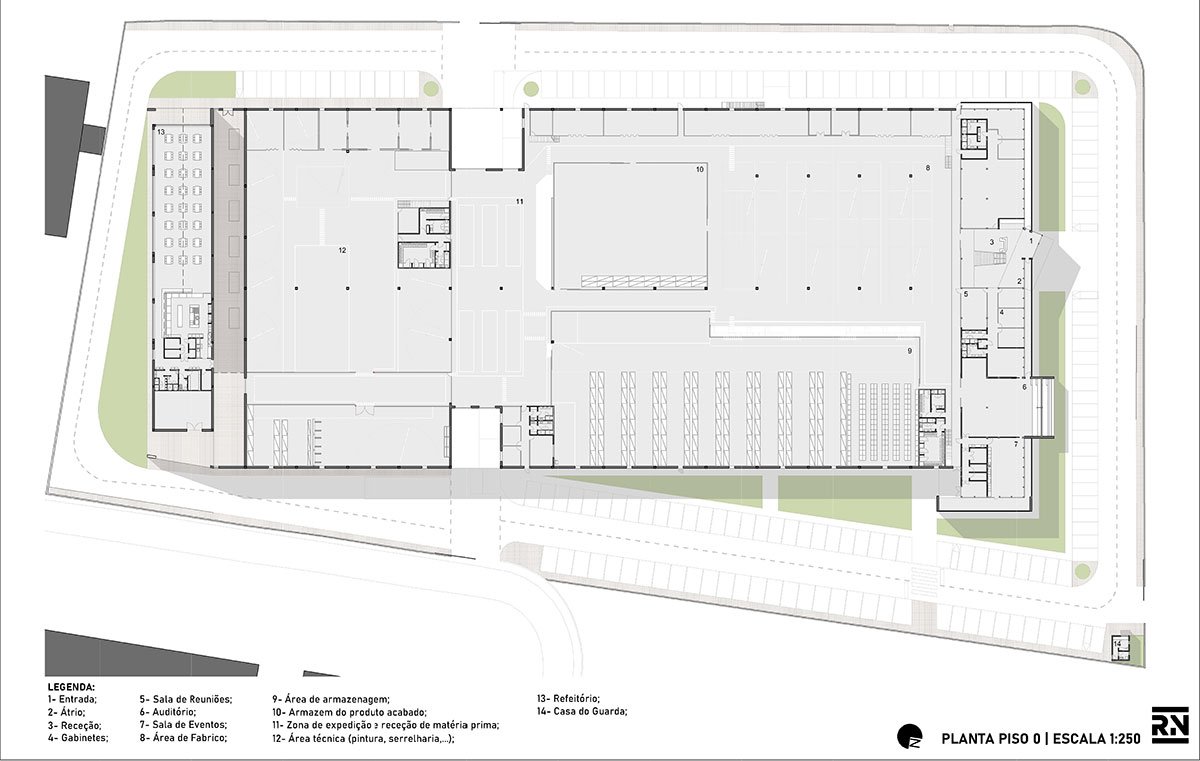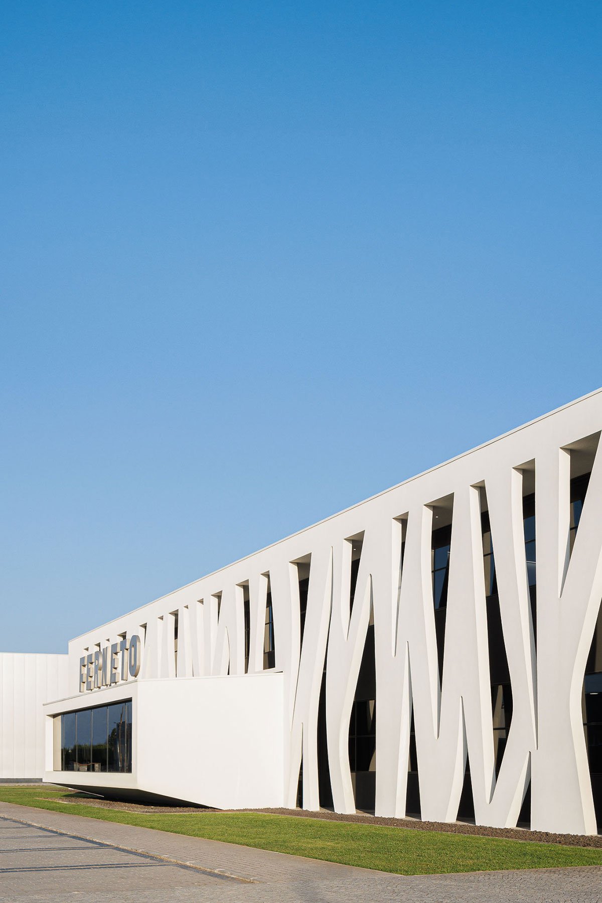 Excerpt: Ferneto SA, Designed by Rómulo Neto Architects, is an industrial building for the production of bakery and pastry machines that produce dough for bread and pastries. The design of the facade is based on the pattern of an alveolar that represents the company’s identity. The entire project is catogorised into 6 sectors including functions like Administrative, Manufacturing, Storage, Warehouse, Shipping, and Painting Area.