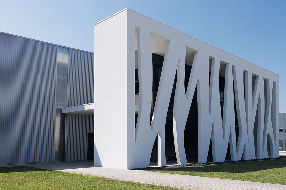 [Text as submitted by architect] The concept of the building was created taking into account the company’s principal activity, this being, the production of bakery and pastry machines that produce dough for bread and pastries. This was the idea behind the starting point of the composition of our façade. We observed that the dough presented an alveolar pattern thus, we decided to implement it into the “manufacture” of the design of our façade.