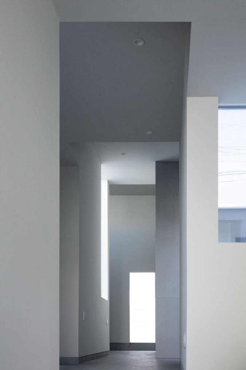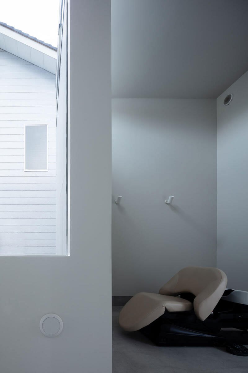 First of all, we sought to create a space surrounded by soft and homogeneous indirect light because the program is a hair salon. Since the site is adjacent to a road on the north side, the openings take full advantage of this aspect to ensure a soft and consistent light internally. The site is long and narrow, and in order to obtain natural light at the back of the building, the shape of the building gradually expands from the front to the back, both in plan and elevation.
