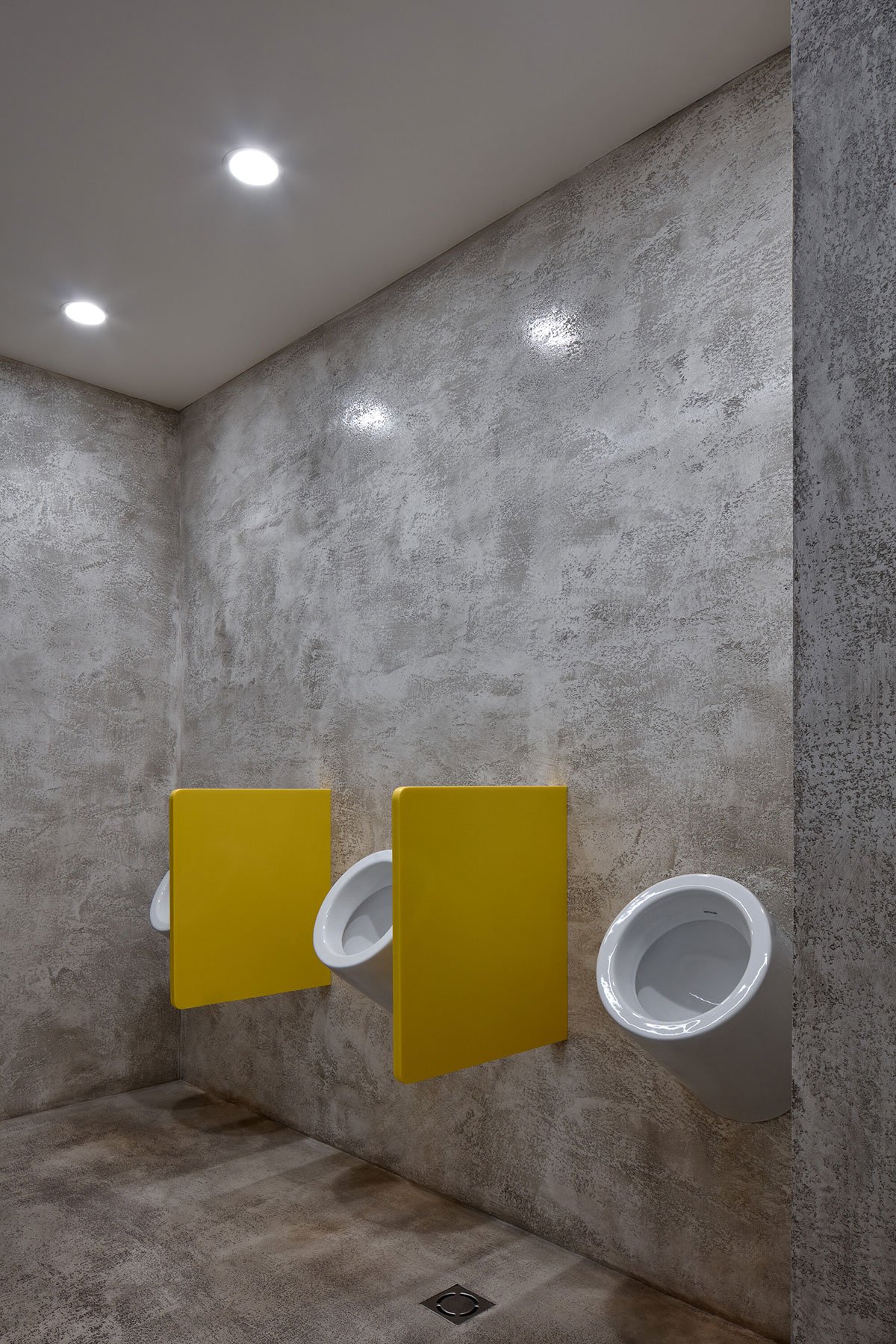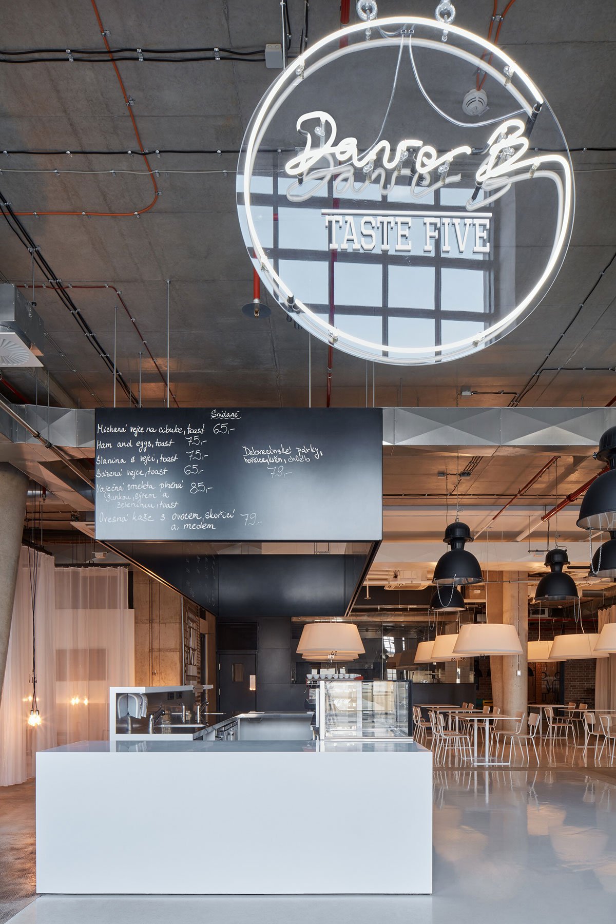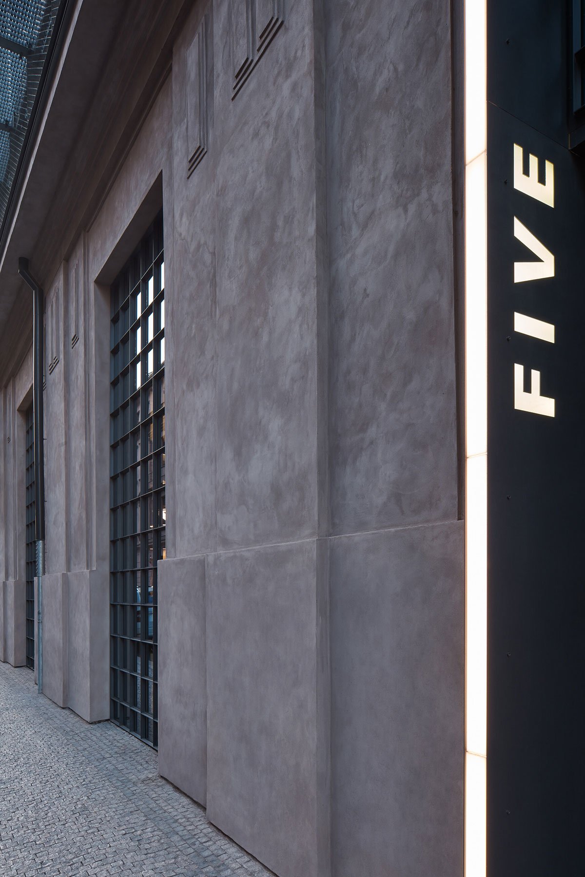 Excerpt: Five, an old building reimagined by Qarta Architektura, has the industrial character of the building and offers a premium gourmet experience. The design acts as a living part of the organism of the city, keeping and restoring historical architectural elements. The unique industrial design, featuring a double-skin façade of perforated metal, architectural concrete, or exposed conduits visible on the ceilings, embodies both the local genius loci and all the preserved historical elements.
