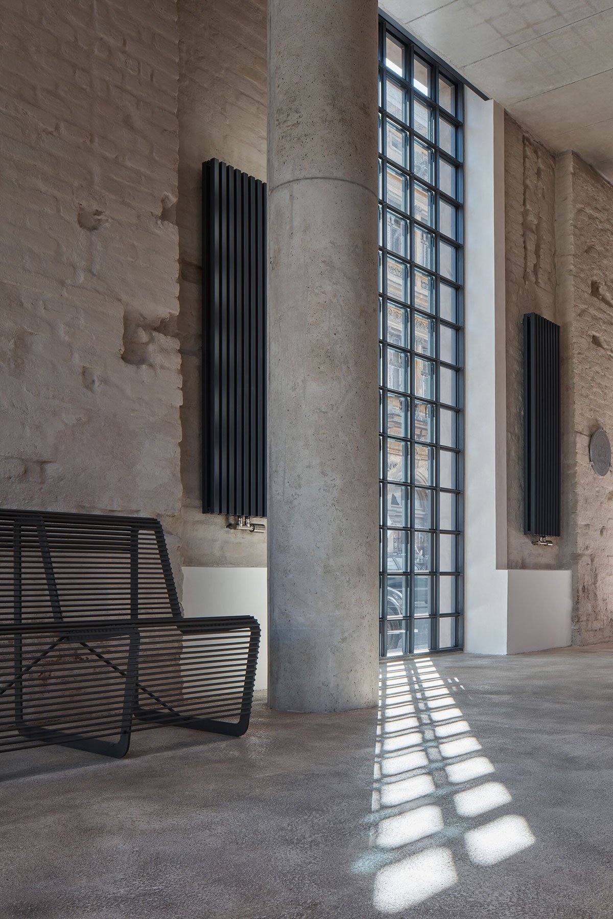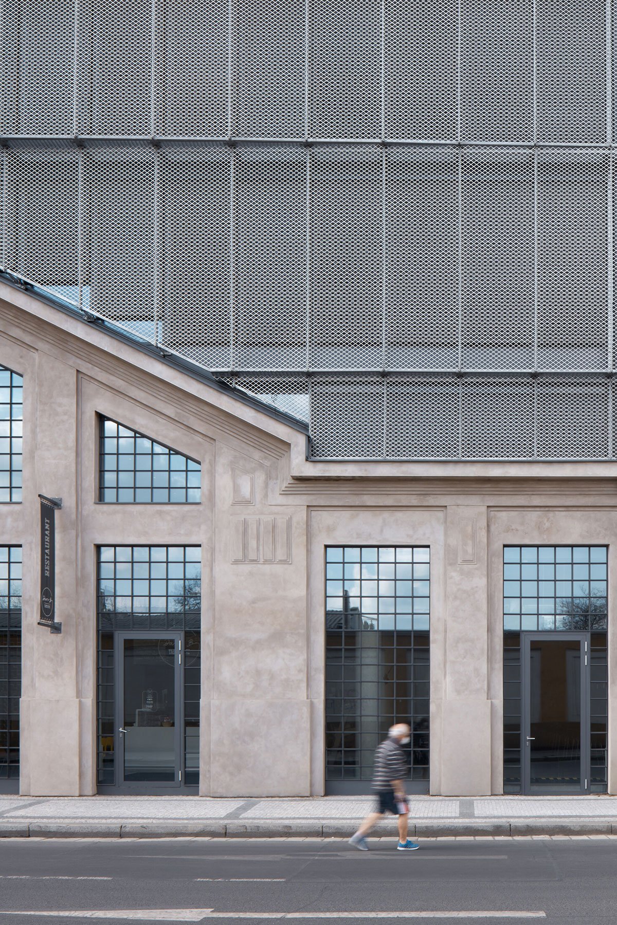 The original structure was not entirely replaced. Its architecturally valuable parts were incorporated and implemented in the new building. Both street fronts of the depot were kept in their entirety and opened up to pedestrians. This way the relics don’t obstruct the new use, instead they play a key role in the organism of the new building. The unique industrial design, featuring a double-skin façade of perforated metal, architectural concrete, or exposed conduits visible on the ceilings, embodies both the local genius loci and all the preserved historical elements.