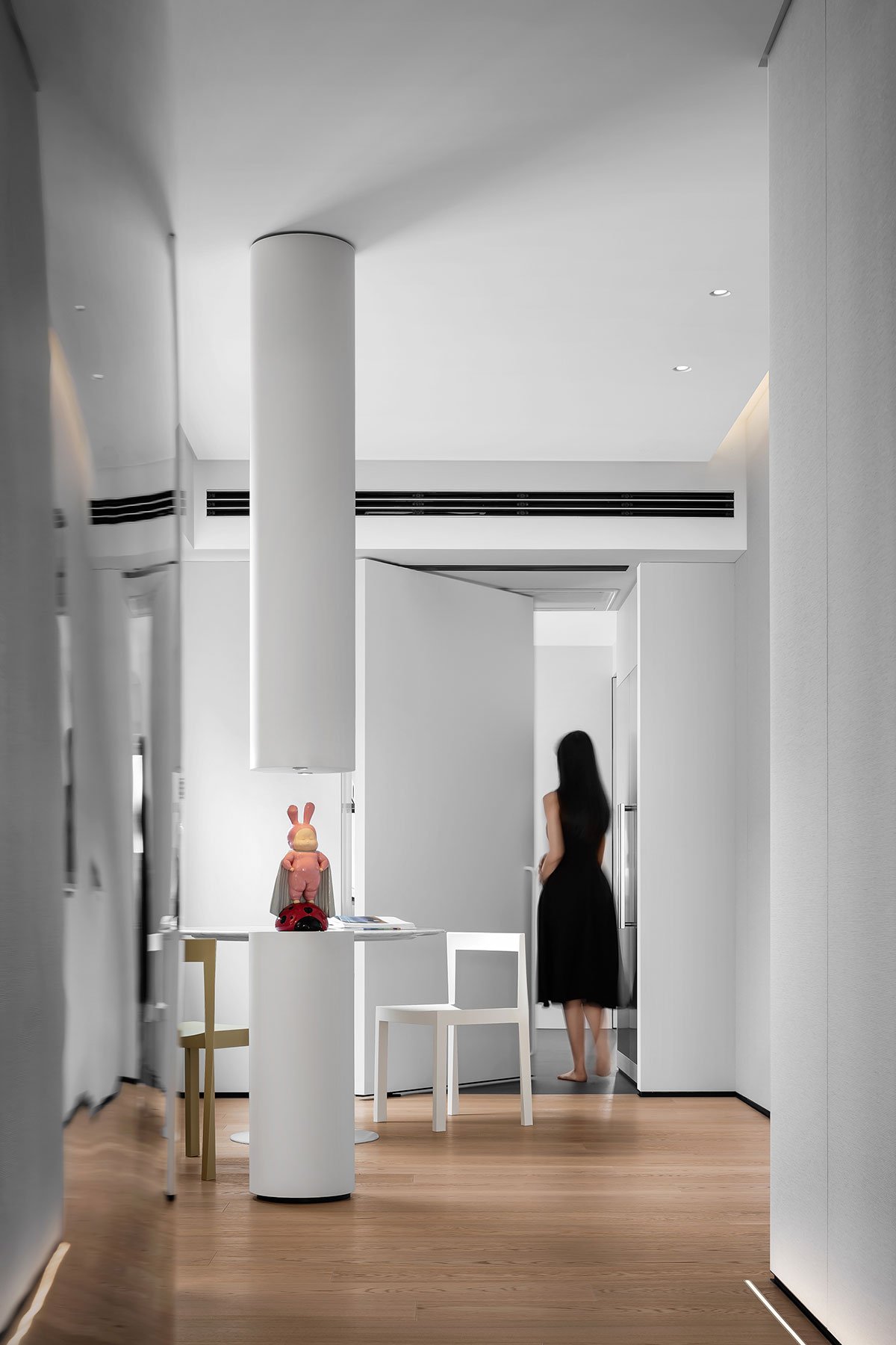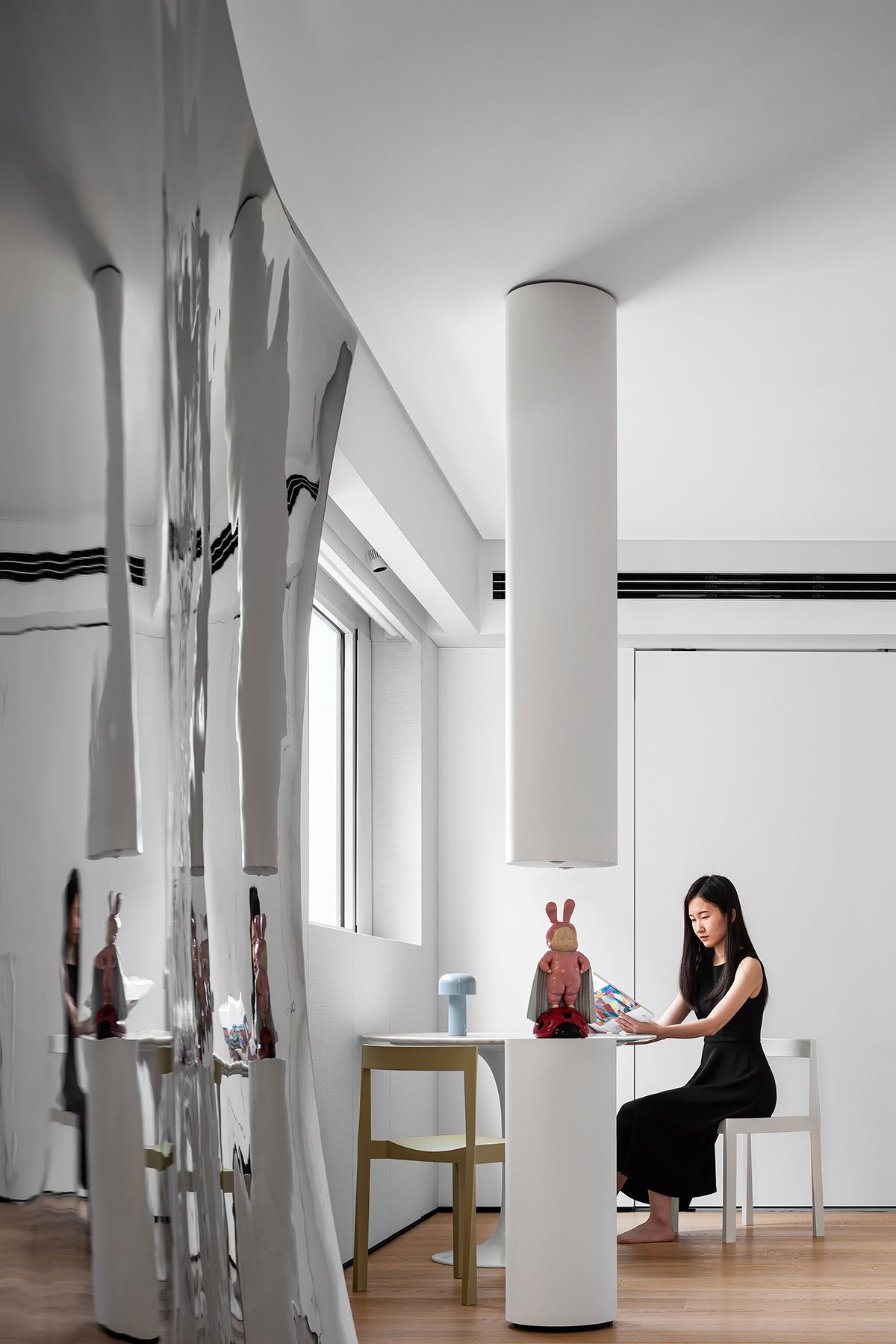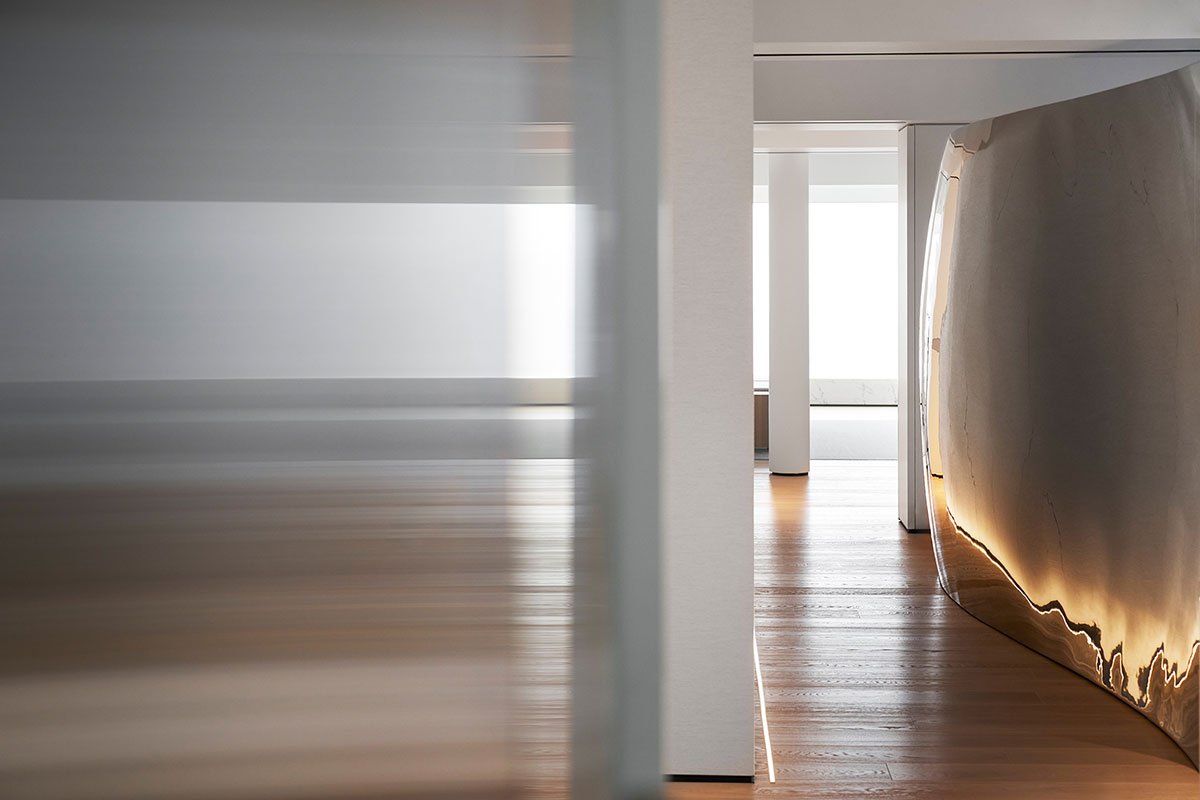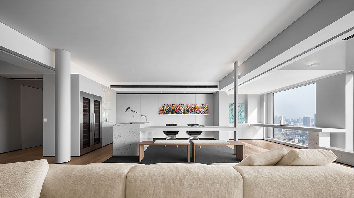 Excerpt: Foshan #1 Lake Lantern by Evans Lee Interior Design Co., Ltd. is an interior design project featuring a contemporary minimalist design that allows the space to reflect its essence. The design blurs functional boundaries, removing partition walls for natural sunlight. The original layout has been reorganized into a versatile space that integrates socializing, leisure, working, and living, extending an infinite artistic lifestyle.