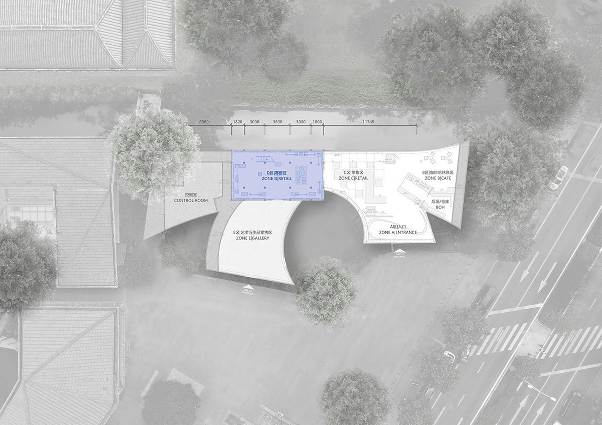 According to the requirements of the program group, the building and indoor scene should be equipped with four main functions, which are fashion retailing, art exhibition, café region and guiding work area. The indoor scene and props should be flexible in order to meet the requirements of art exhibition arrangement in the shooting process and the spatial compatibility of cross-border cooperation with international top artists. On this basis, indoor and outdoor space needs to meet the seamless transition and connection between the live shooting of the early stage program and the actual operation in the later stage. The existing ancient building space is far from meeting these functional requirements, therefore we need to reorganize the spatial logic within the limits of the red line, and seamlessly combine the new space and original space together to create possibilities in the ‘Fourtry space’.
