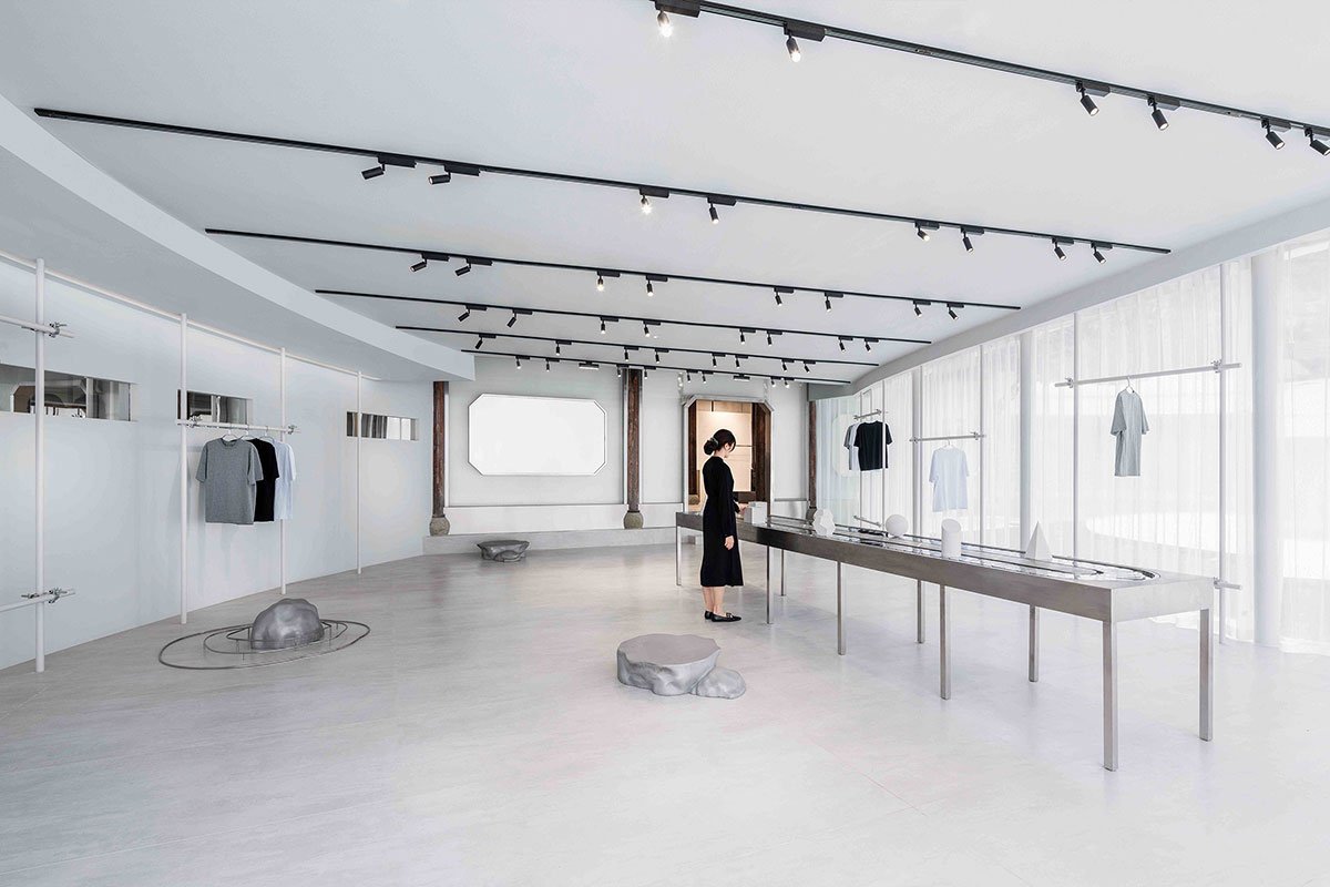 Go through the “bamboo forest” and enter the retail space inside the ancient buildings, abandon the complicated colors and redundant decorations, maintain a restrained and modest attitude, add functional display props into the original space of the wood structure, and set off each other with the pure white tone and red brown wood color of the large block surface, so as to interpret the scene of “The strangeness of canvas’s white and the simplicity of the ink’s black ” in the oriental culture.