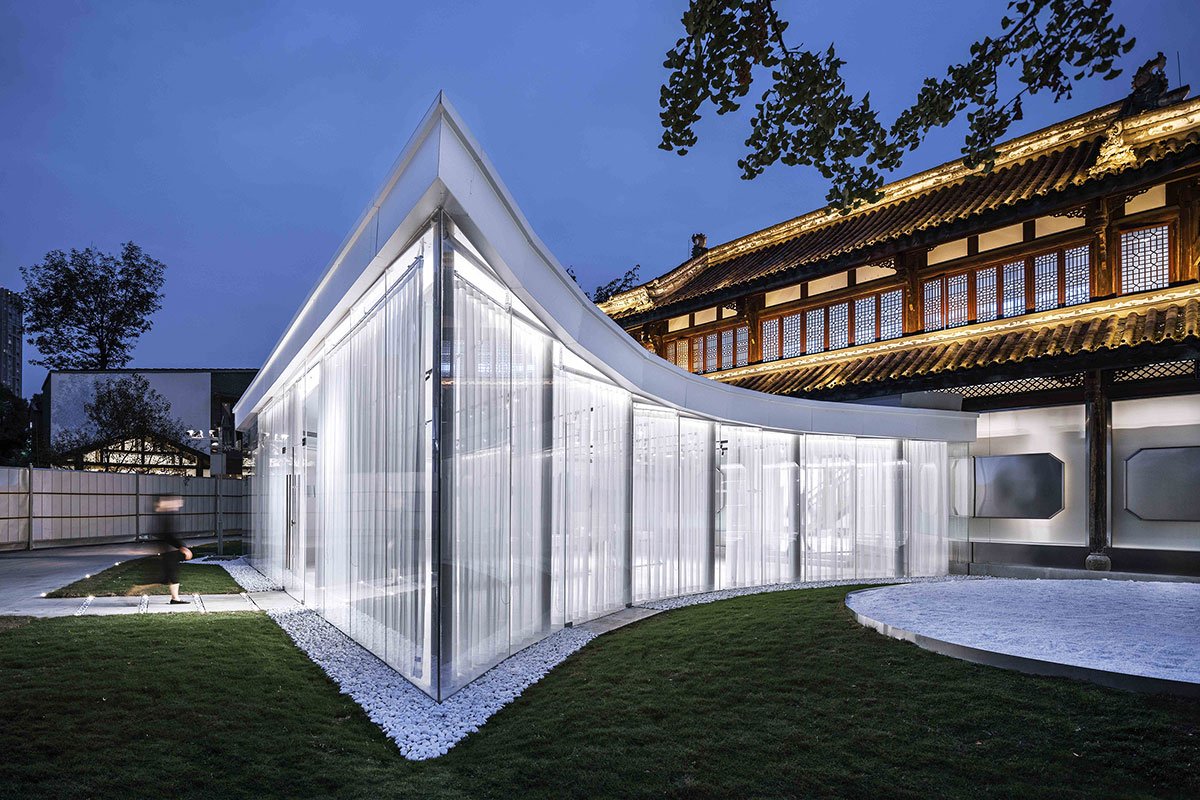 The concept of the whole design is “Flow”. Two white color light weight blocks represent the trend and life. They meet in this traditional place as the best response to the revival of life and the rebirth of trends. At the same time, the bullish gradient of the white roof is a modern interpretation of the cornice of traditional architecture, ensuring the continuity of the spirit and terroir of the place. About the wooden structure of ancient buildings, we maximize the structure, and only reshape the necessary facade. The interior space and scene design of the ancient buildings with a modest attitude keeps restraint and balance, and outlines the structure of the traditional buildings through light without too much decoration.