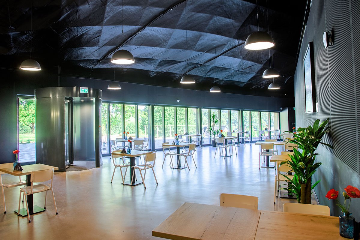The shape of the Shaded Dome in Groesbeek is that of an elongated cupola of light fabric, alluding to the parachutes that filled the sky during Operation Market Garden. The building, sited on a flattened hilltop, is slightly tilted towards the valley and cut away in that direction, to create an obvious entrance. The offices and depot are below ground, giving the restaurant a view of the valley from which the Allied divisions once moved towards Germany.