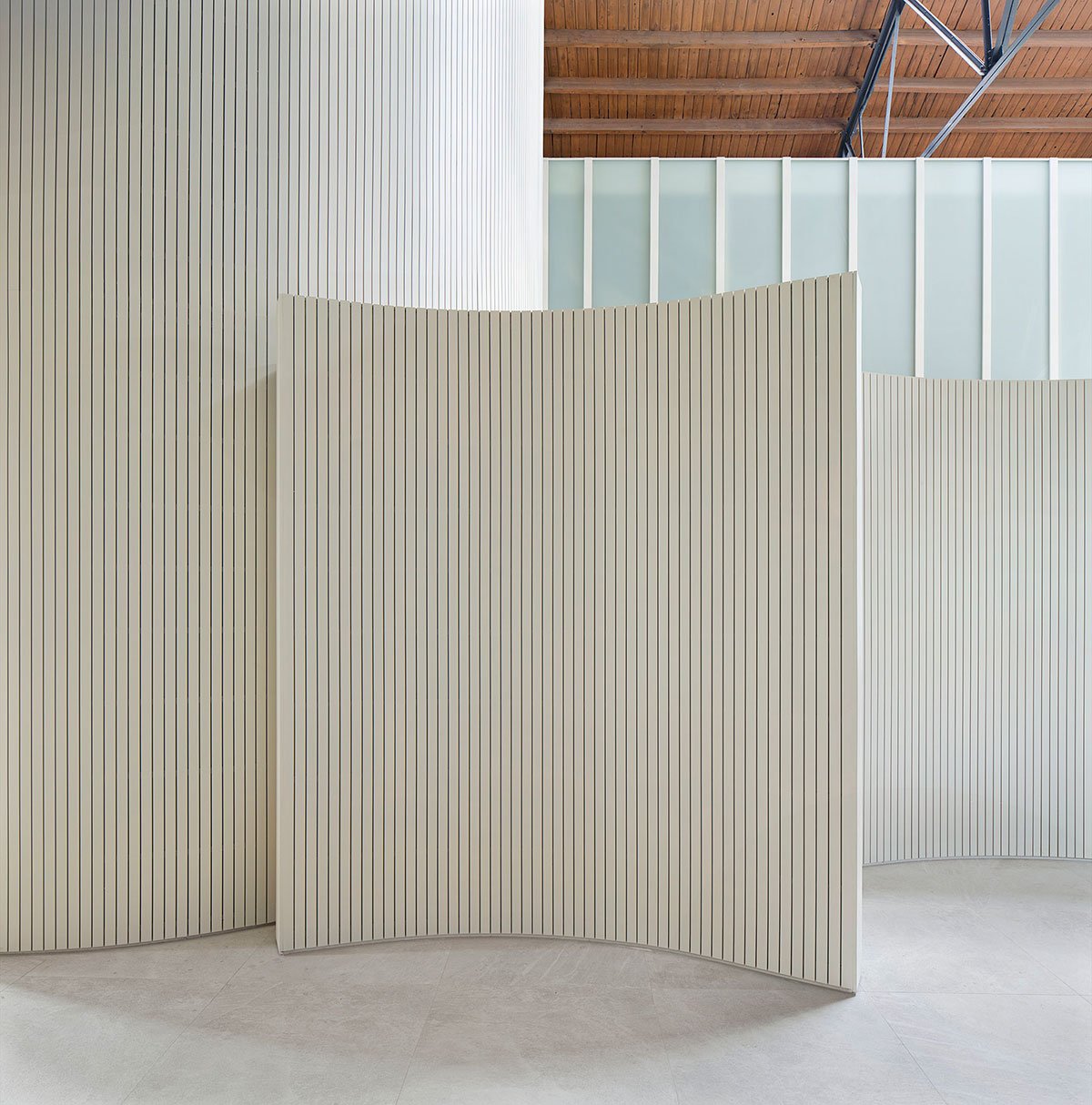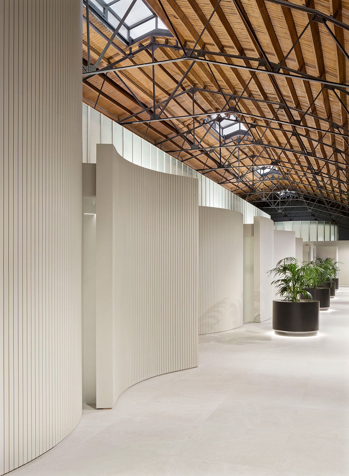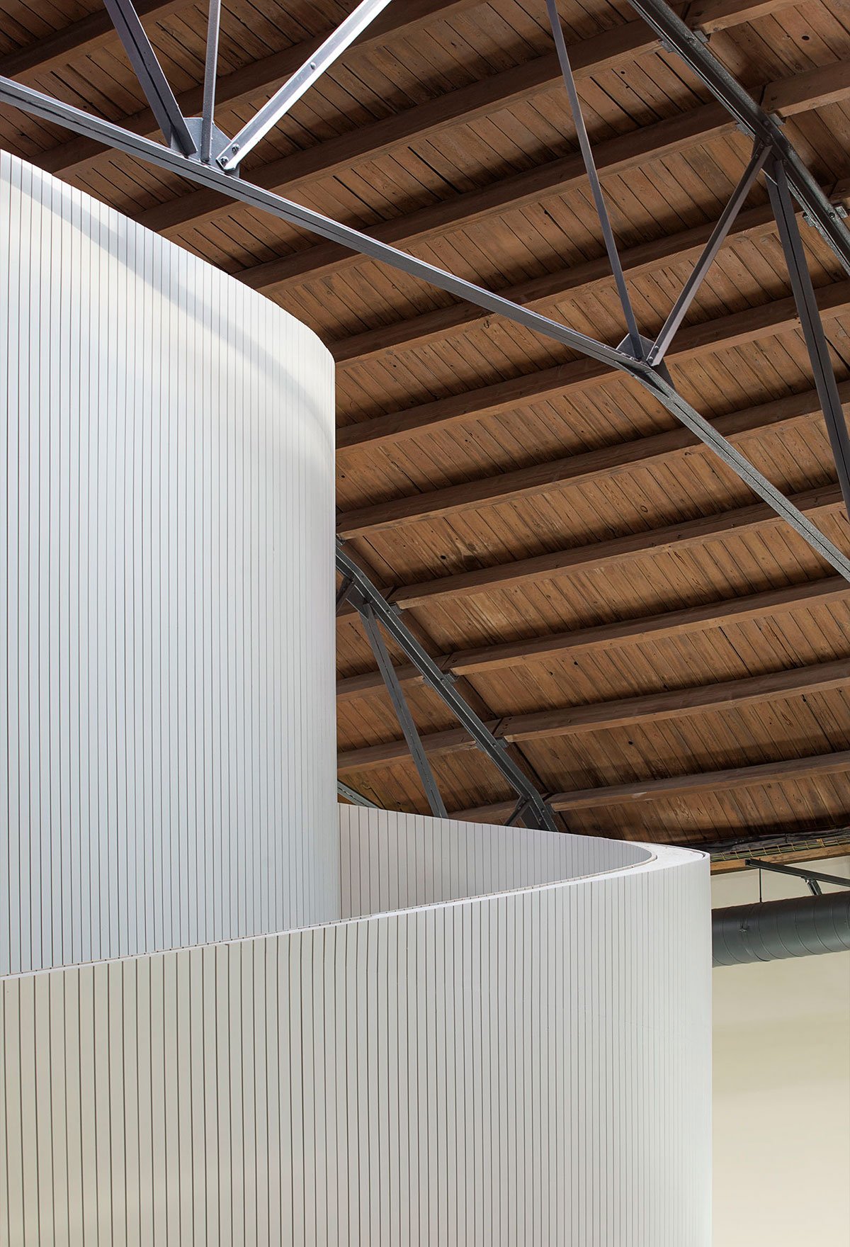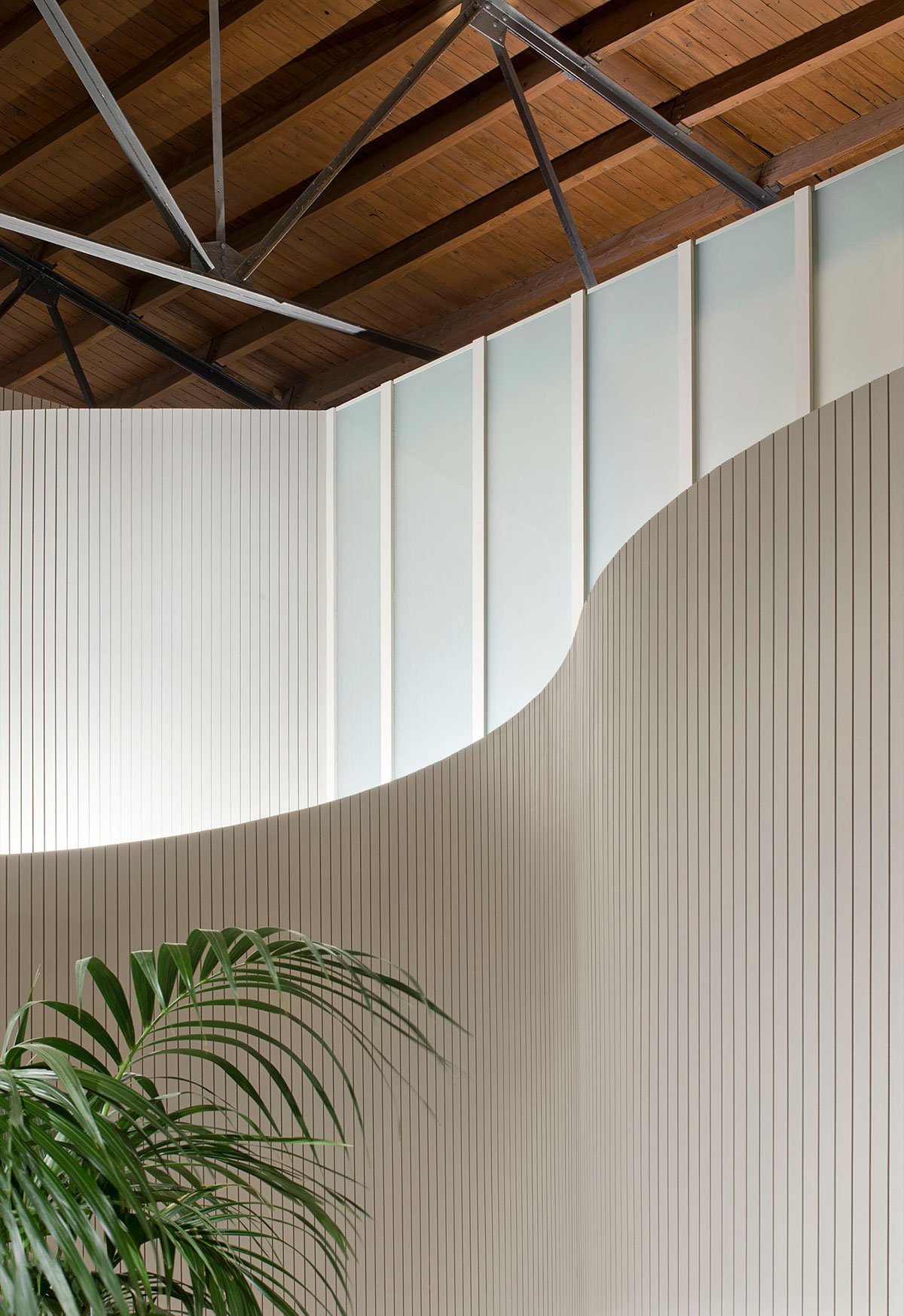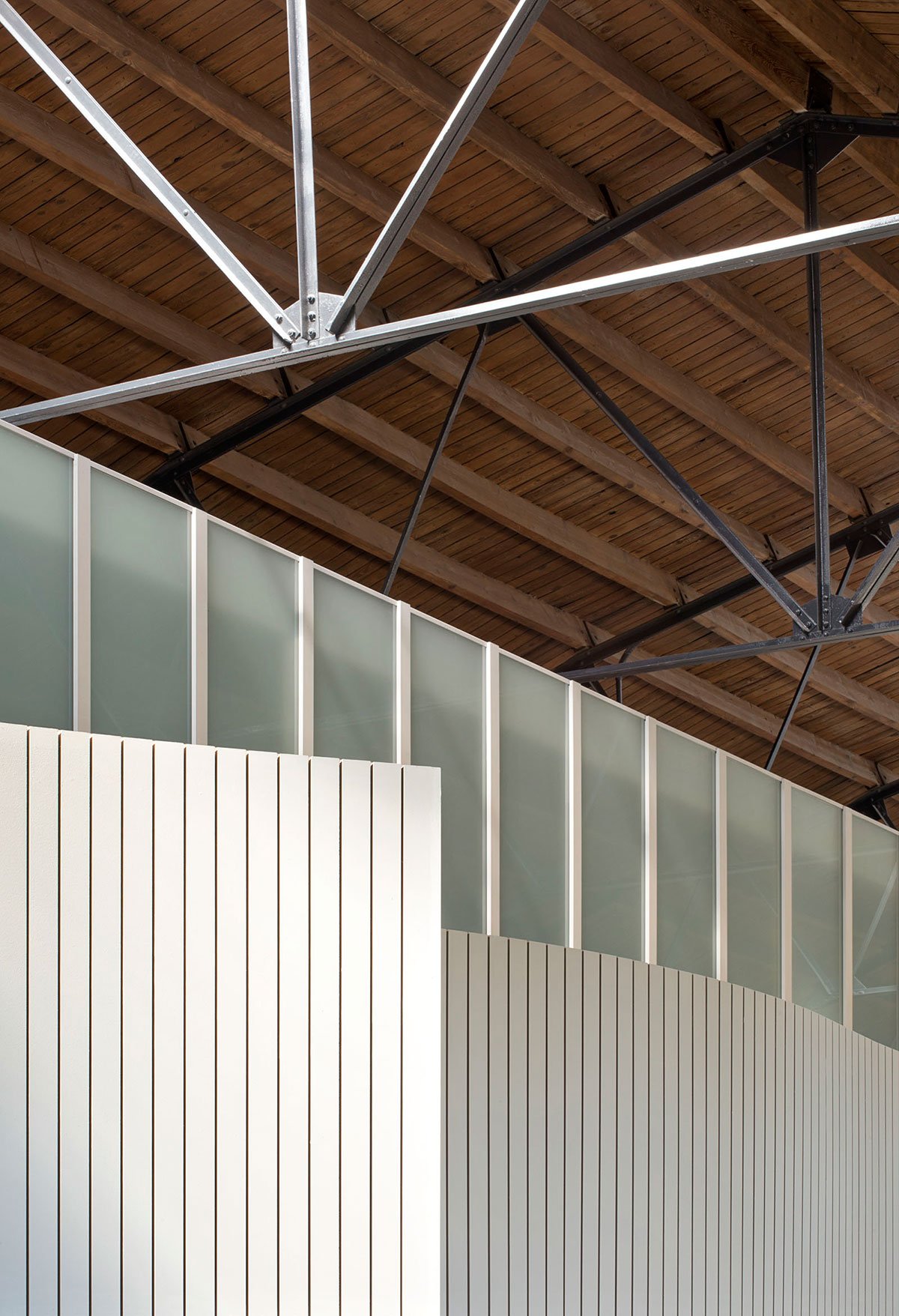 All the new volumes have been treated with a uniform light colour that is used to define all the elements, walls, floor and ceiling, and that gives an image of unity to the entire intervention. In this way, it contrasts with the warmth of the wooden roof.
