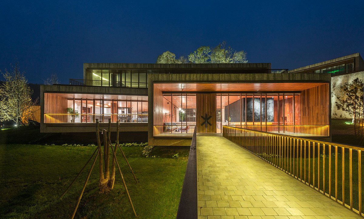 Excerpt: Located at the foot of the Luo Fu Shan mountain range, Fushengyu Hotspring Resort is an architectural project by AIM Architecture featuring a spa with a variety of water experiences. The stunning scenery influences the resort’s design, as the spa building wraps around a hill overlooking the valley. The hill informs the spa’s shape and experience, offering different views across the changing landscape as guests progress through the bathing stages.