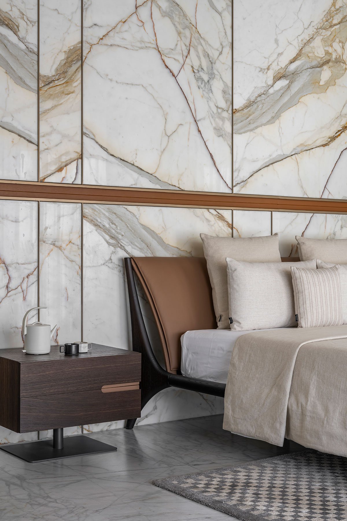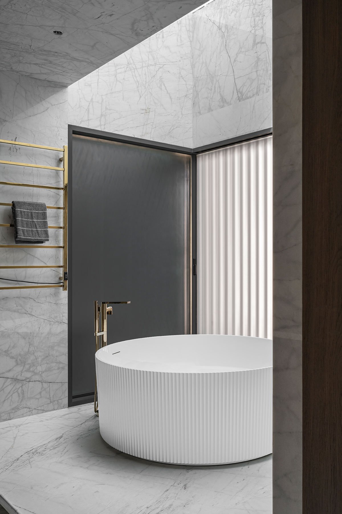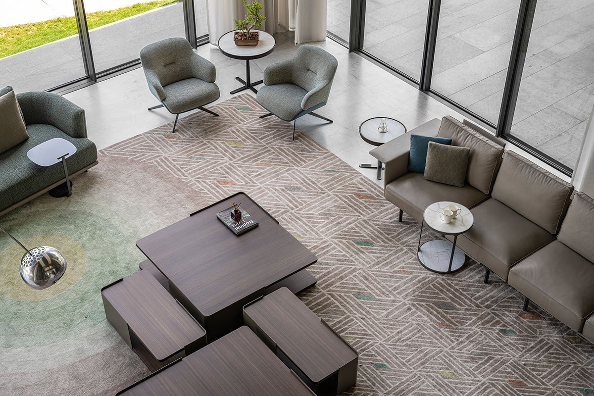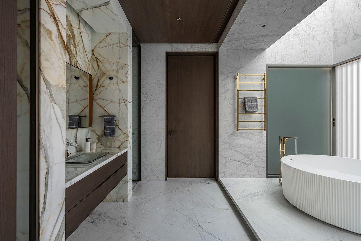 The central courtyard, in particular, was a rewarding design challenge. The striking staircase, illuminated by a skylight, serves as the sculptural centerpiece of the home, embodying the essence of the project’s design philosophy. The fusion of styles in this space captures the spirit of Fusion Court.