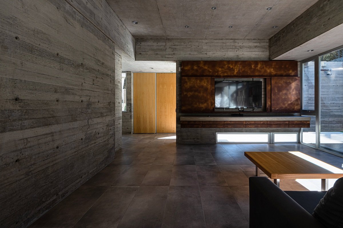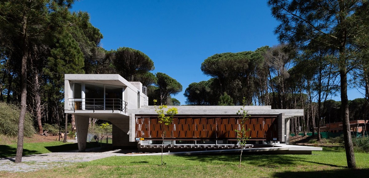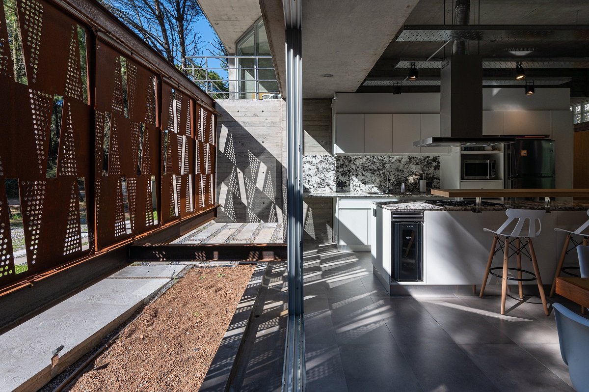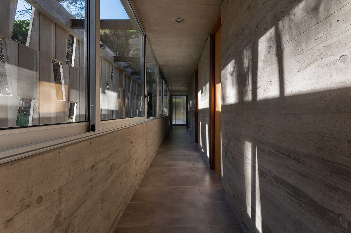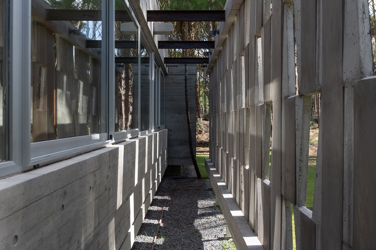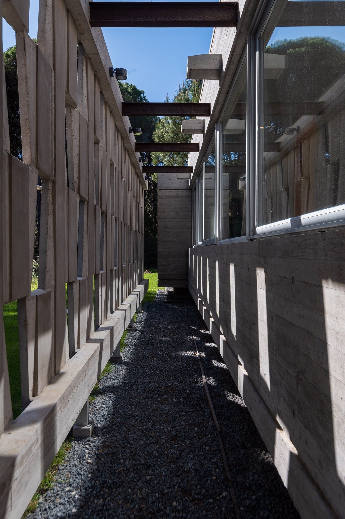 Both systems of brisoleis were designed following a recognizable pattern, even when their materiality and technology are different. The materials used in their manufacture were selected for their zero maintenance and to reflect the passage of time over them. Their natural aging by been exposed to the coastal climate will incorporate the residence into the landscape. Concrete, corten steel, aluminium and glass make up the scarce materials used in the building of the house. By being lifted from the ground, these materials guarantee minimal maintenance and their low complexity optimizes the human resources at the time of building.