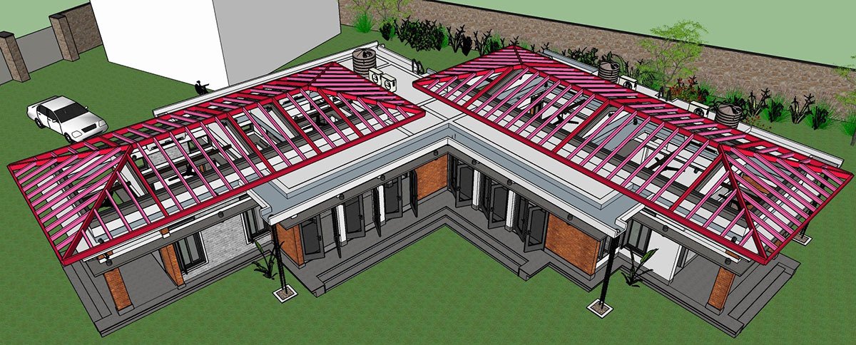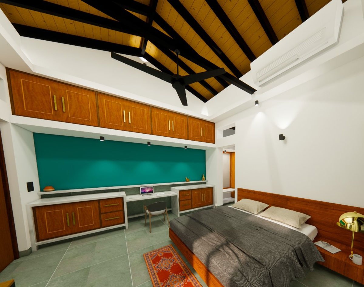 Exposed local country tile brickwork was used to avoid additional costs of plaster and paint. The entire building is sheltered by two independent four-way pitched roofs to allow for larger interior volumes of slender linear spaces. Verandas on all sides have been crafted by deploying the traditional technique of using stone slabs resting steel girders to omit the need of expensive concrete shuttering and scaffolding apparatus during construction. Ventilators above doors and windows allow for hot air to rise and escape outwards to keep the interior naturally cool via solar passive technology.