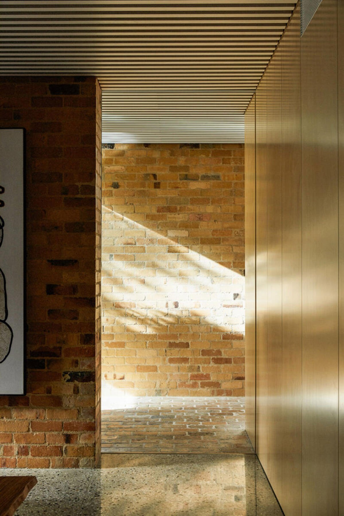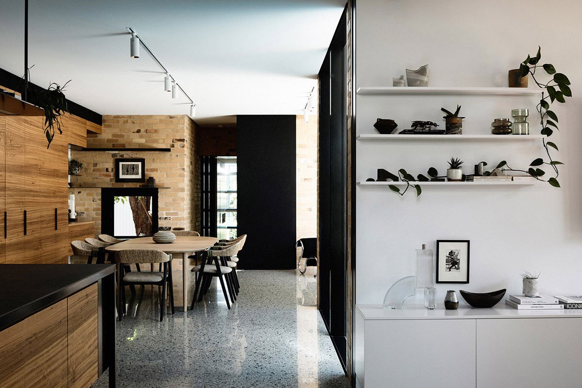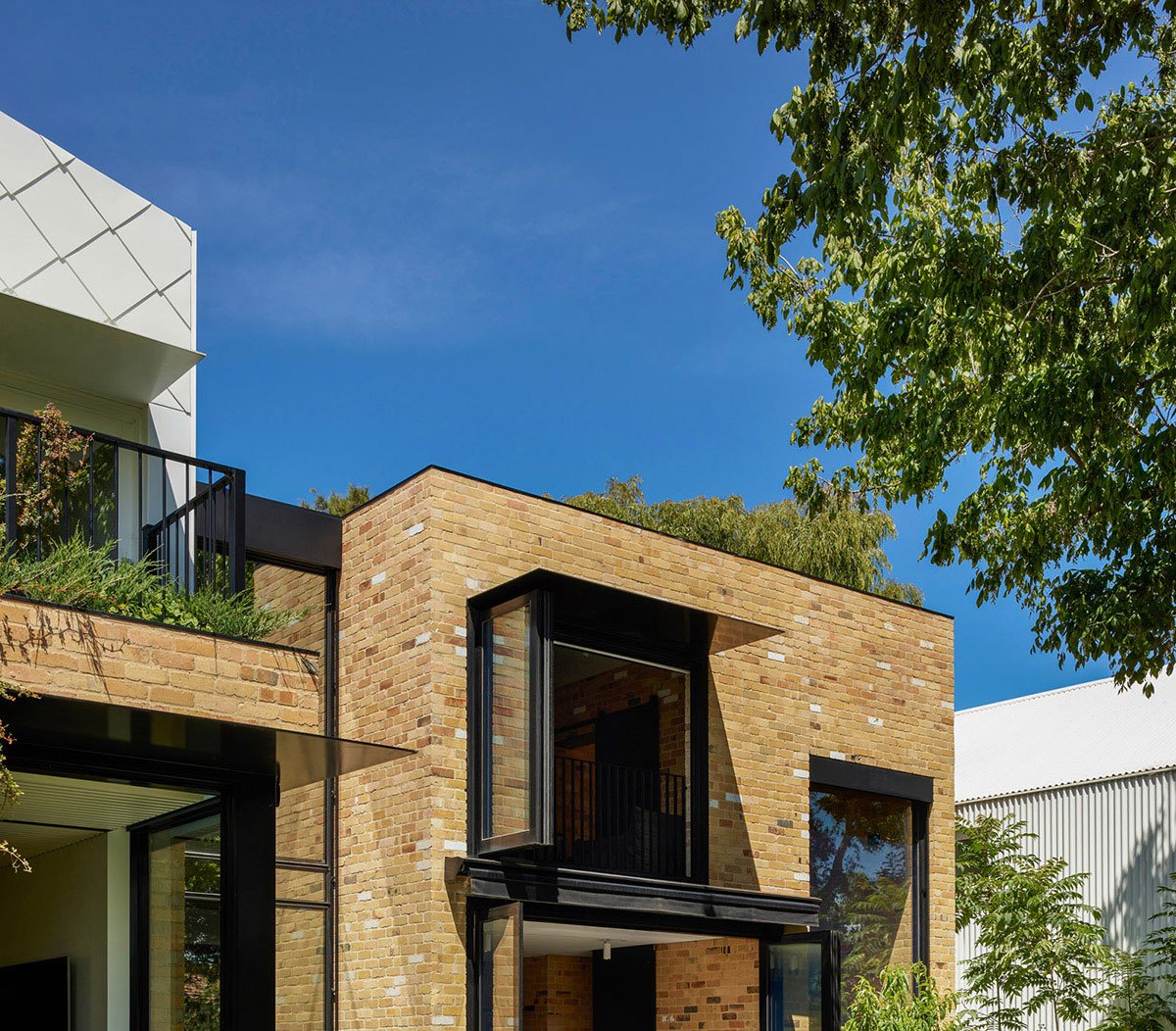 Located on a long and narrow street, lined with long and narrow blocks, in Prahran, Garden House is a wholly unexpected family home. At street-view, the simple and domestic scale garage appears to be the house, in its entirety. A pretty, white shingled cottage with a perfect pitched roof. Walk down the side pedestrian alleyway and the main front door opens up to reveal a much bigger property concealed within – like discovering Narnia at the end of a literal yellow brick road.