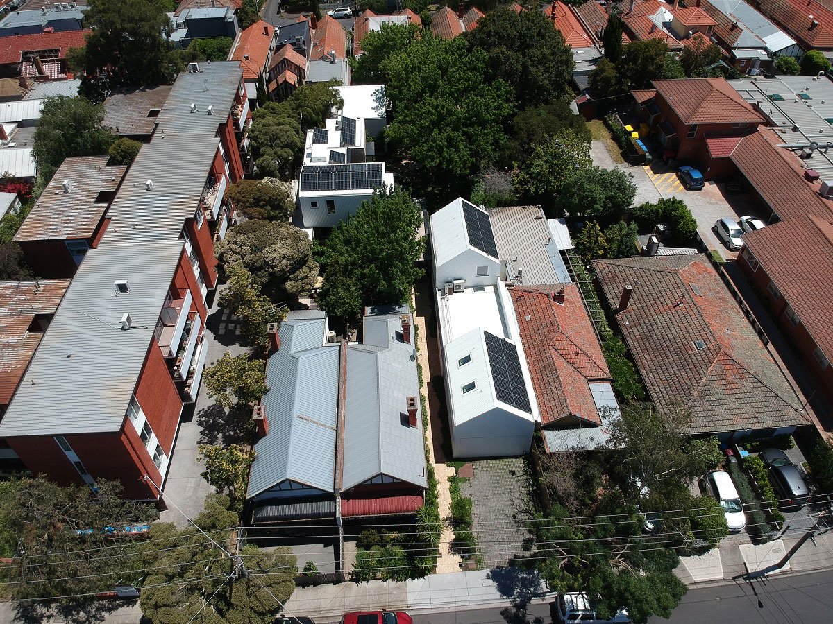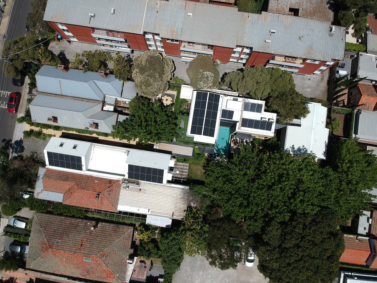 [Text as submitted by architect] The average Australian house uses 19kwh of energy per day. Garden House produces 100kwh per day and has a 26kwh Tesla battery. A high-performing, hi tech, inner-city oasis, Garden House illustrates the future of sustainable energy – electrified homes, powered by the sun, powering our shared energy grid. The owners came to us with a highly detailed and specific brief. They wanted a sustainable, super modern, longterm family home, that could change and adapt over time. They had a fantastic and unusual block. Facing the street was a tired, single-fronted cottage with a 1980s addition at the rear that opened out onto a surprising, large private garden. Self-professed “kind of quirky types” the owners asked us to think outside the square house box, save as much of the garden as possible and build a ‘homely’ multifunctional and sustainable family house.