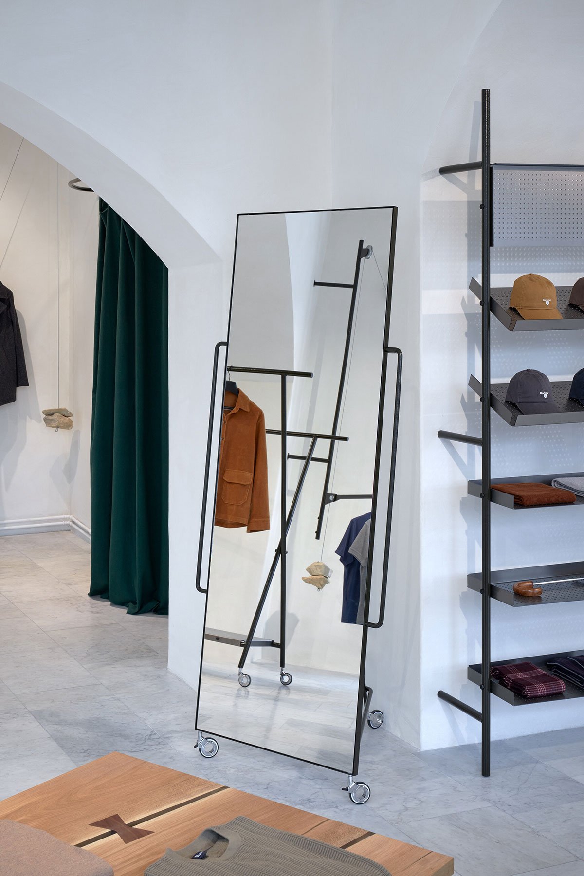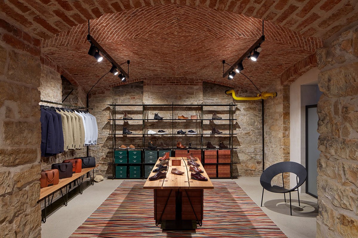Craftsmanship: The store focuses on quality predominantly British men’s fashion. The interior therefore avoids ostentation, instead aiming for asceticism. The designed furnishings are simple and transparent, but are perfectly crafted in detail and use only a few high-quality materials. All substitutes are avoided. The interior is designed to be inviting to touch, to feel solid.