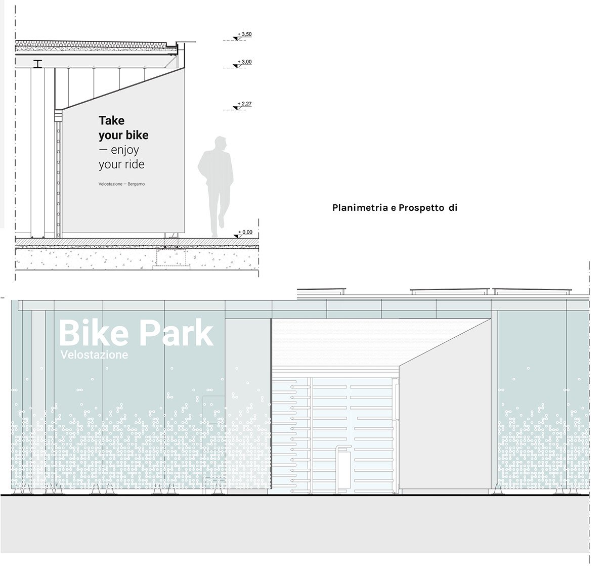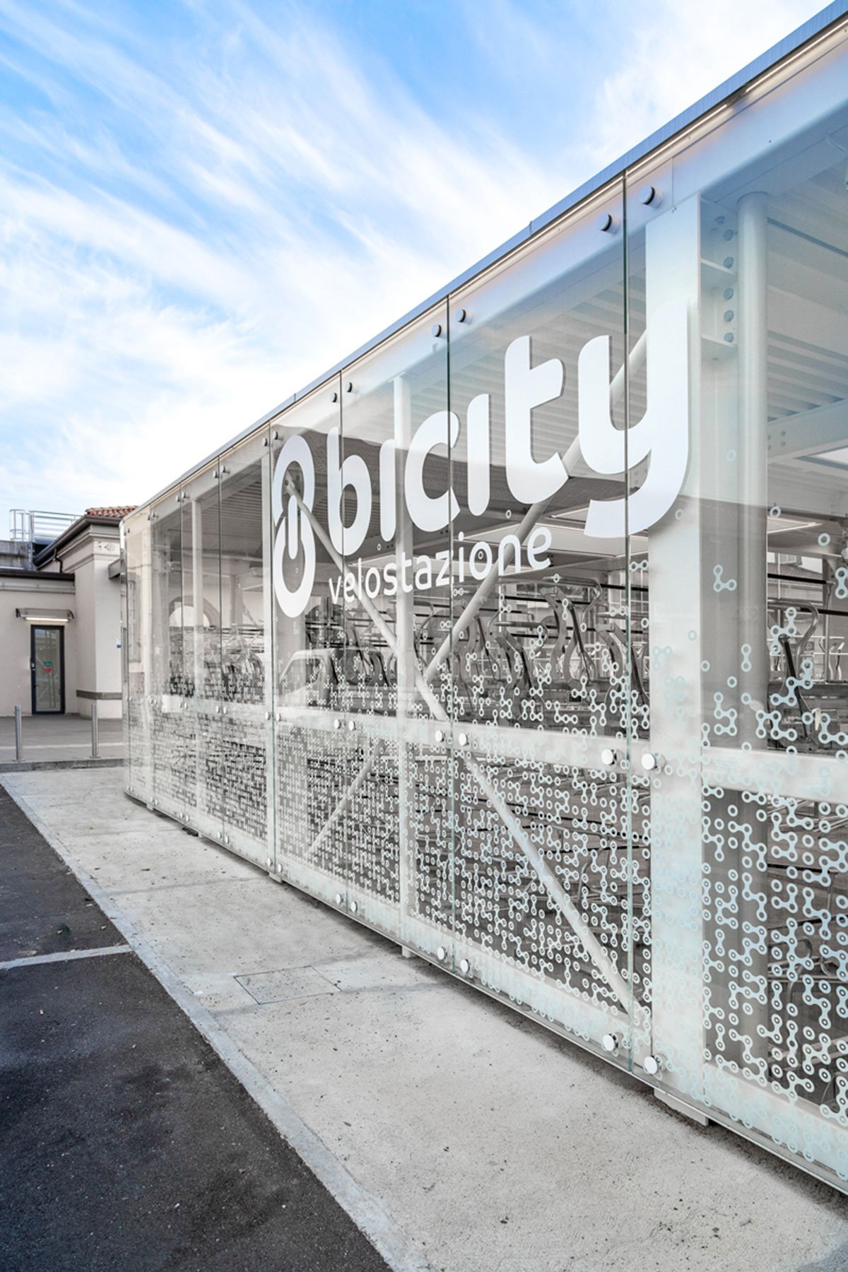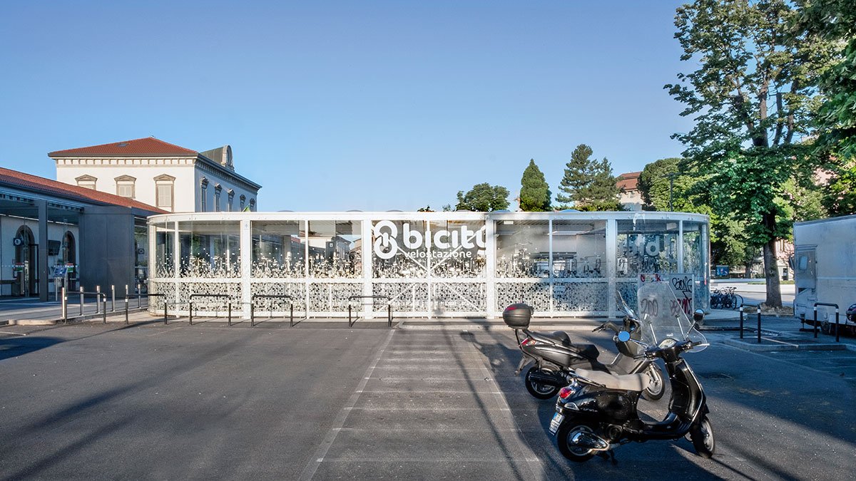 [Text as submitted by architect] The first bicycle station in Bergamo is set in a strategic and highly relevant location on the edge of the historic centre and close to the train station. The facility was designed by Studio Capitanio to carry out the green policies on cycling enablement as an integral part of the intermodal connection hub and the future urban regeneration of Porta Sud train station.