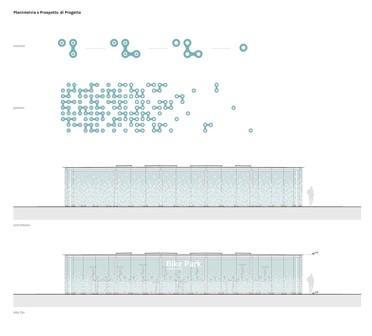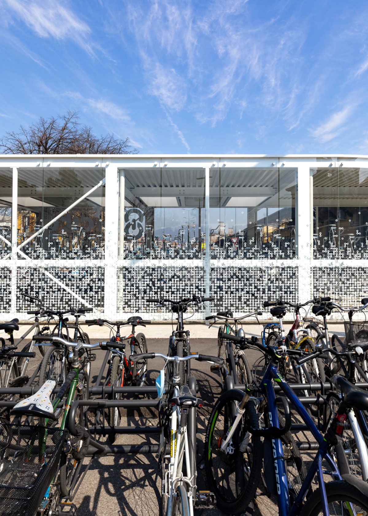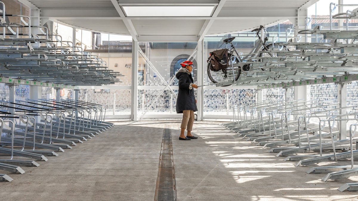 [Text as submitted by architect] The first bicycle station in Bergamo is set in a strategic and highly relevant location on the edge of the historic centre and close to the train station. The facility was designed by Studio Capitanio to carry out the green policies on cycling enablement as an integral part of the intermodal connection hub and the future urban regeneration of Porta Sud train station.