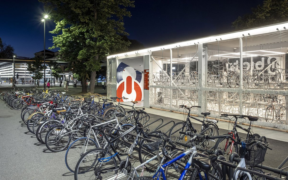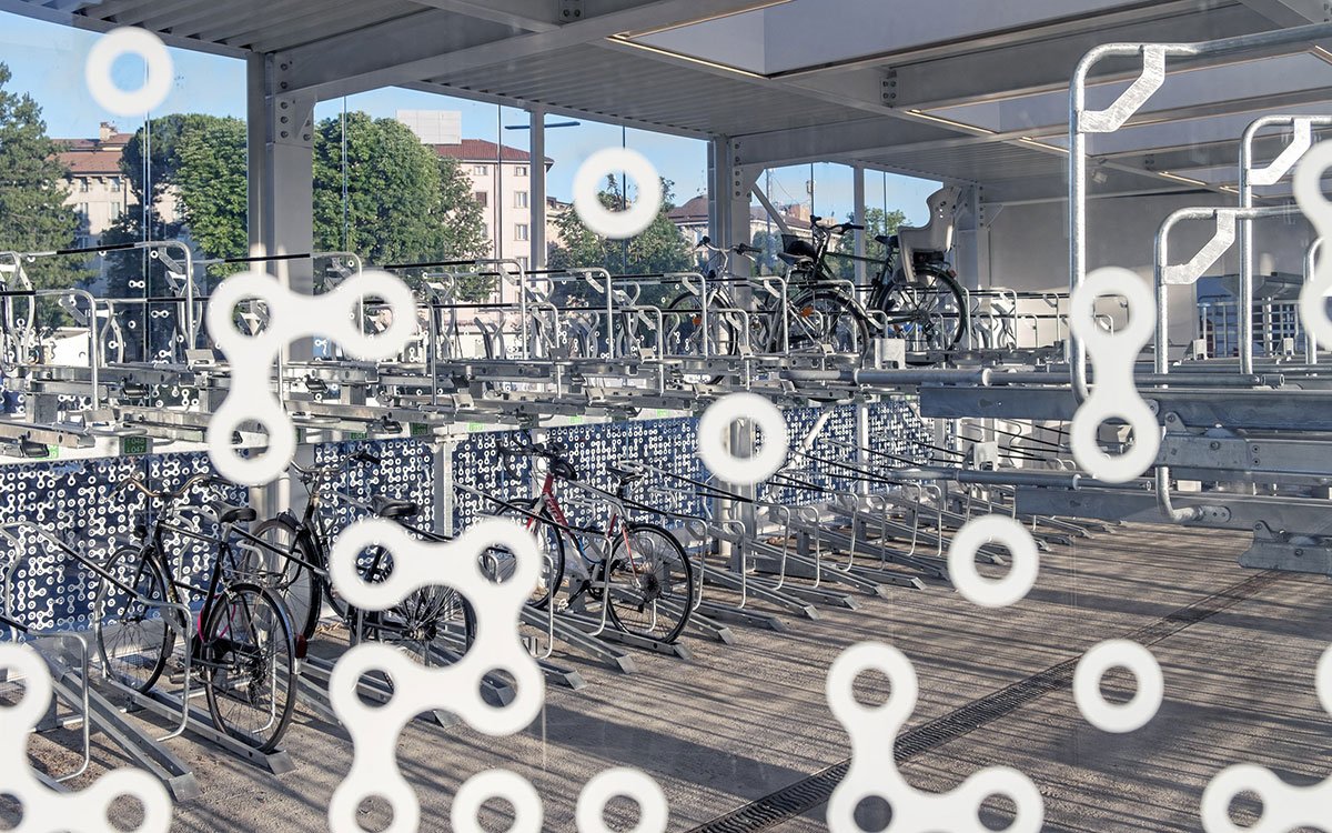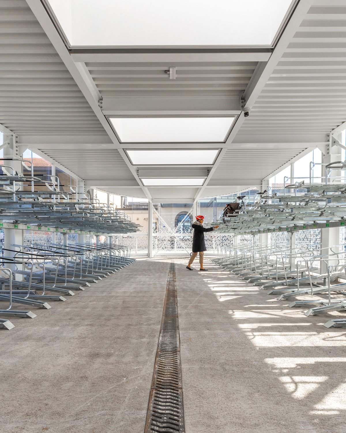 Particular attention was paid to the management of the bicycle station. The service to cyclists is fully automated using access badges and hydraulic lifting systems to avail of the two levels of bicycle racks.