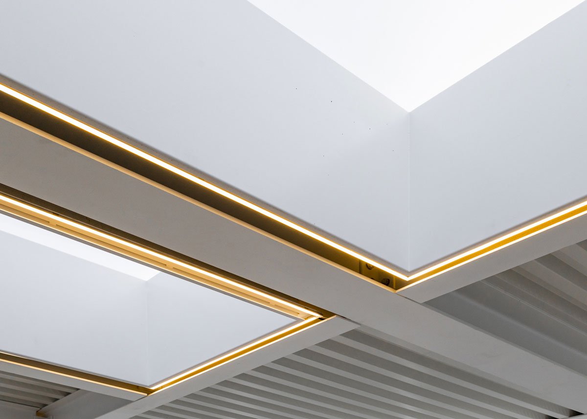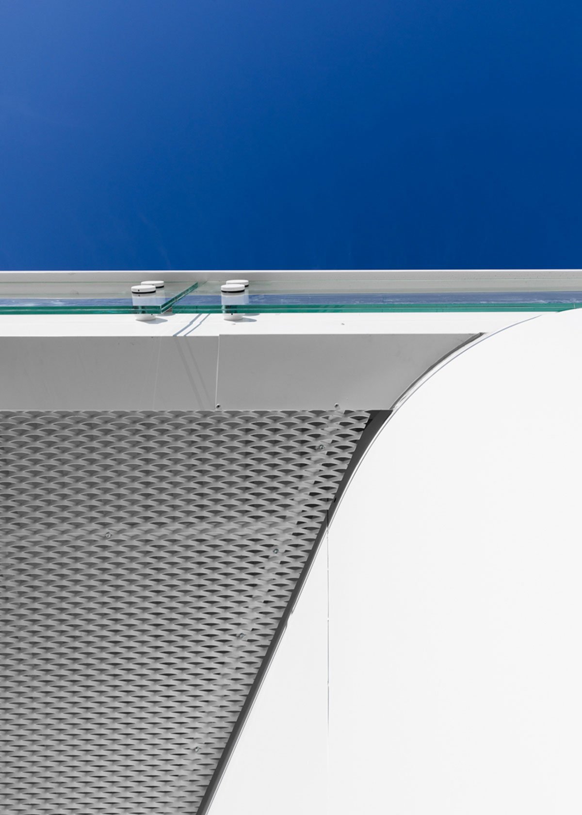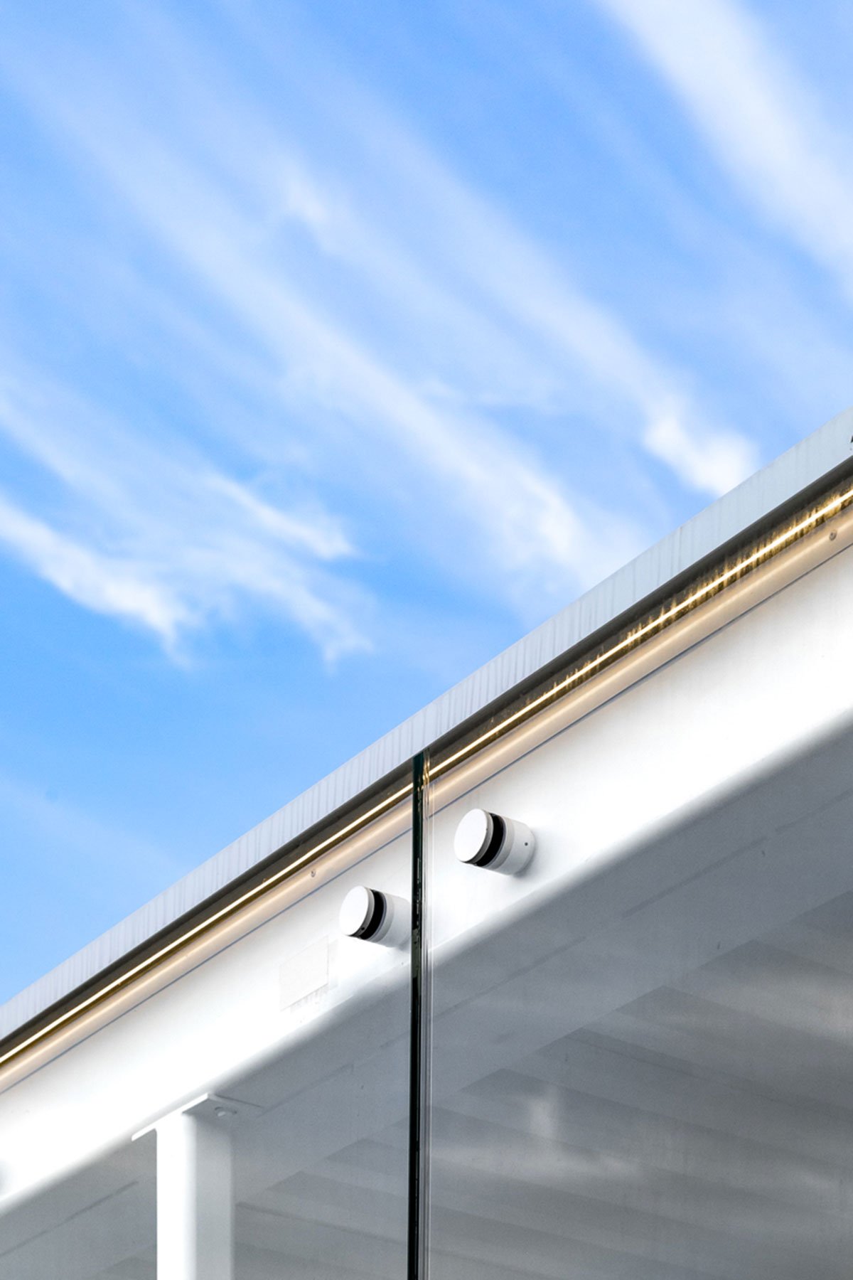 The steel frame is varnished white. The same single colour is used for the facility’s branding serigraphs by Publifarm, thus not only facilitating effective communication but also matching the monochromatic approach in the unit.