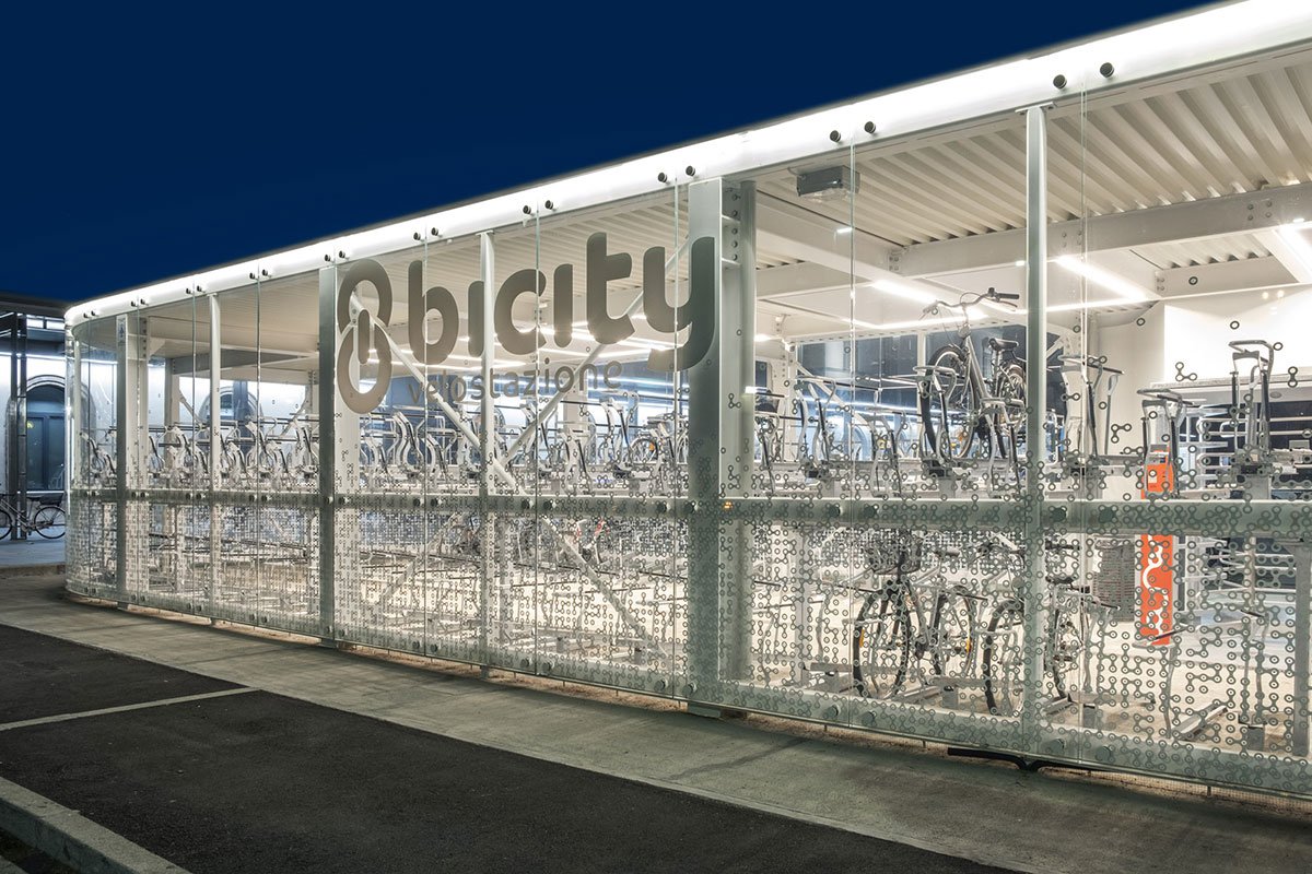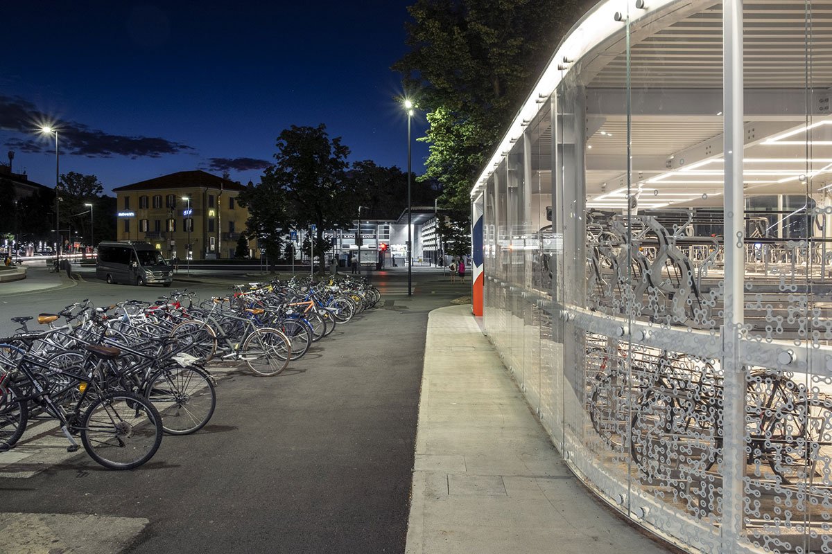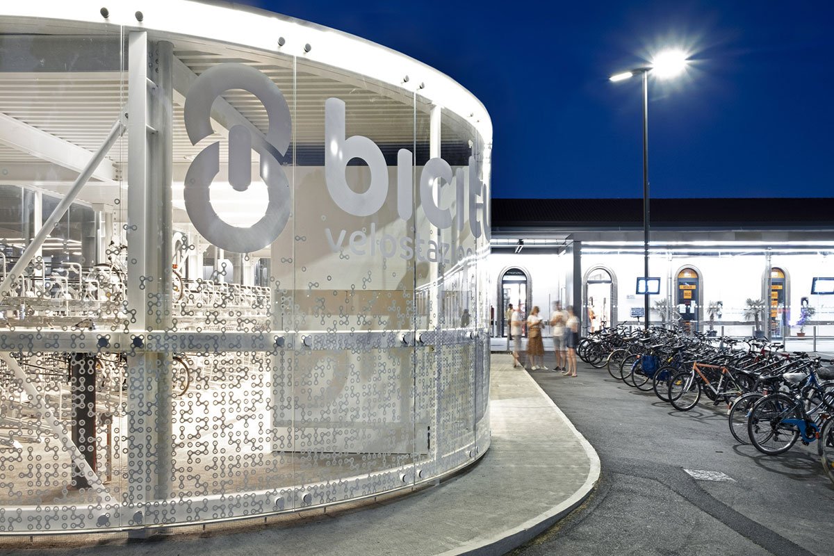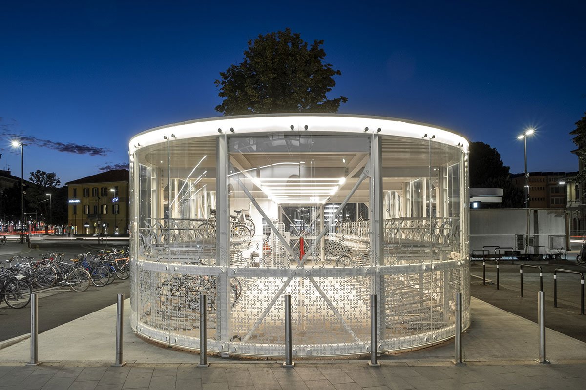 Excerpt: The objective of the Glowing Bicycle station in Bergamo designed by Studio Capitanio Architetti was to insert a new element, integrated into the contemporary development of the square, providing a centre of interchange between modes of transport: public transport, cycling and walking.