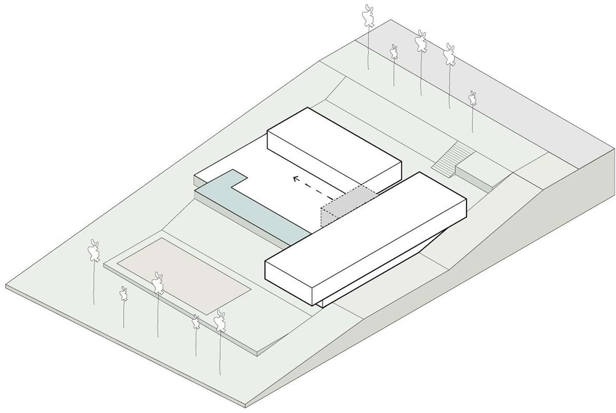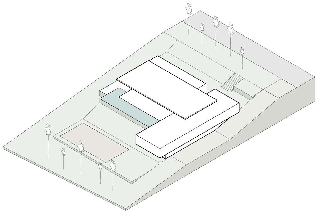 [Text as submitted by architect] The GM House was conceived for a young family on a remarkably distinctive plot of land with an intriguing topography. Taking advantage of a slope that offers stunning views, the house harmoniously blends with the surroundings by resting horizontally on the contours of the terrain.