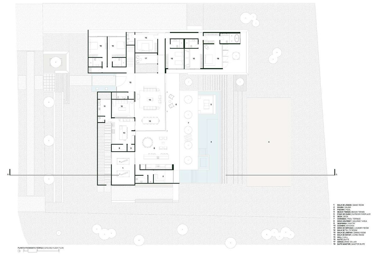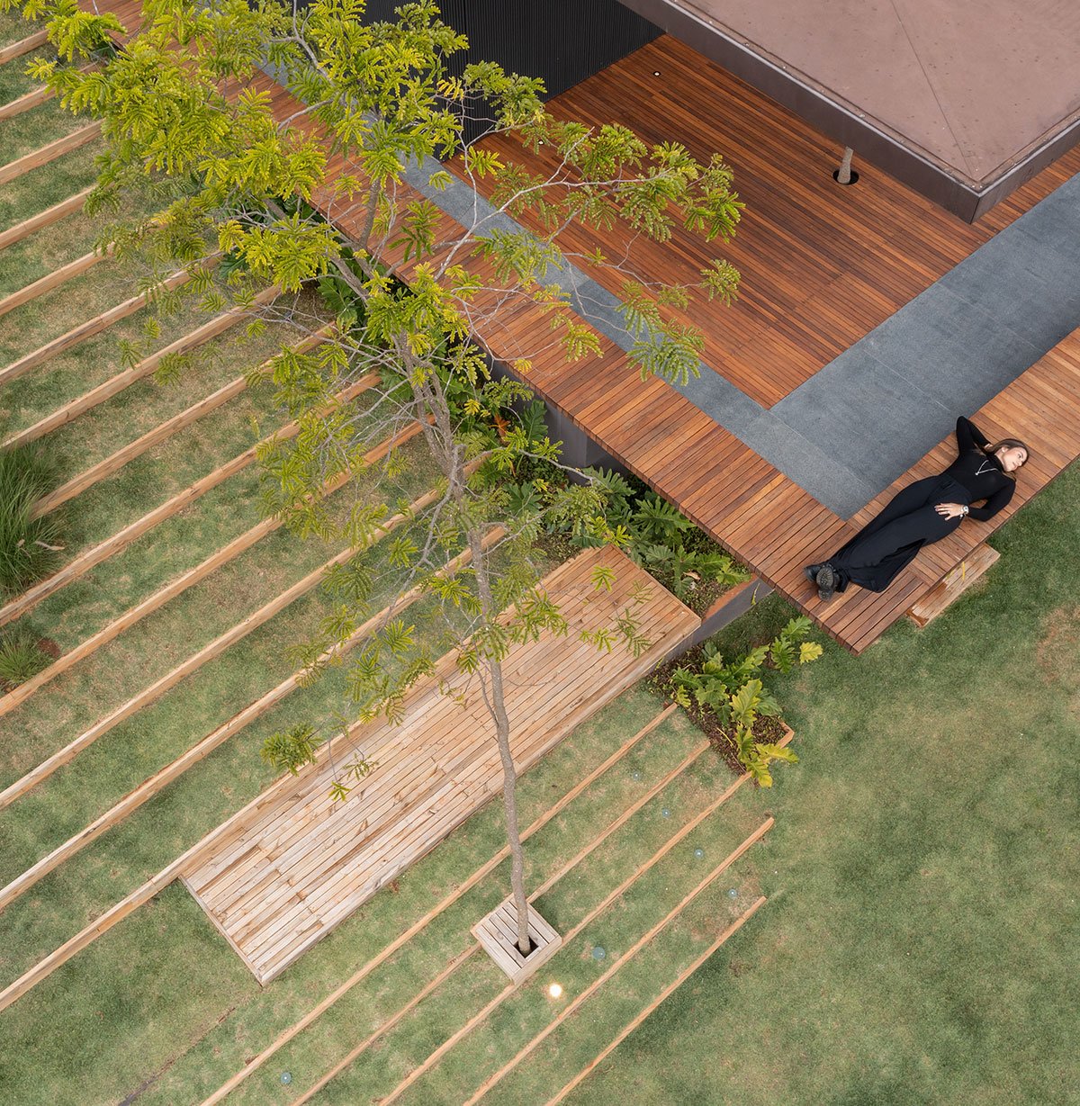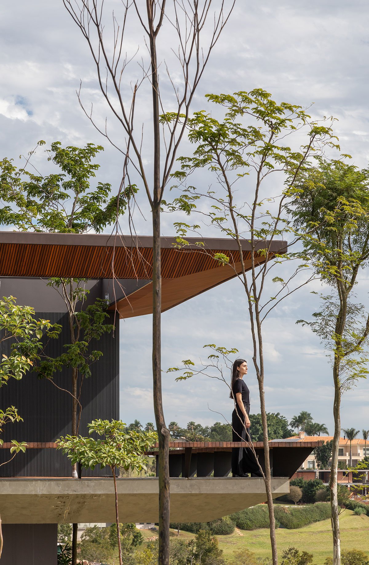 The hollow elements and cutouts in the roofs allow for the creation of gardens and terraces, strengthening the integration between the house and the landscaping. Thus, the residence is configured as a harmonious fusion of architecture and landscape.