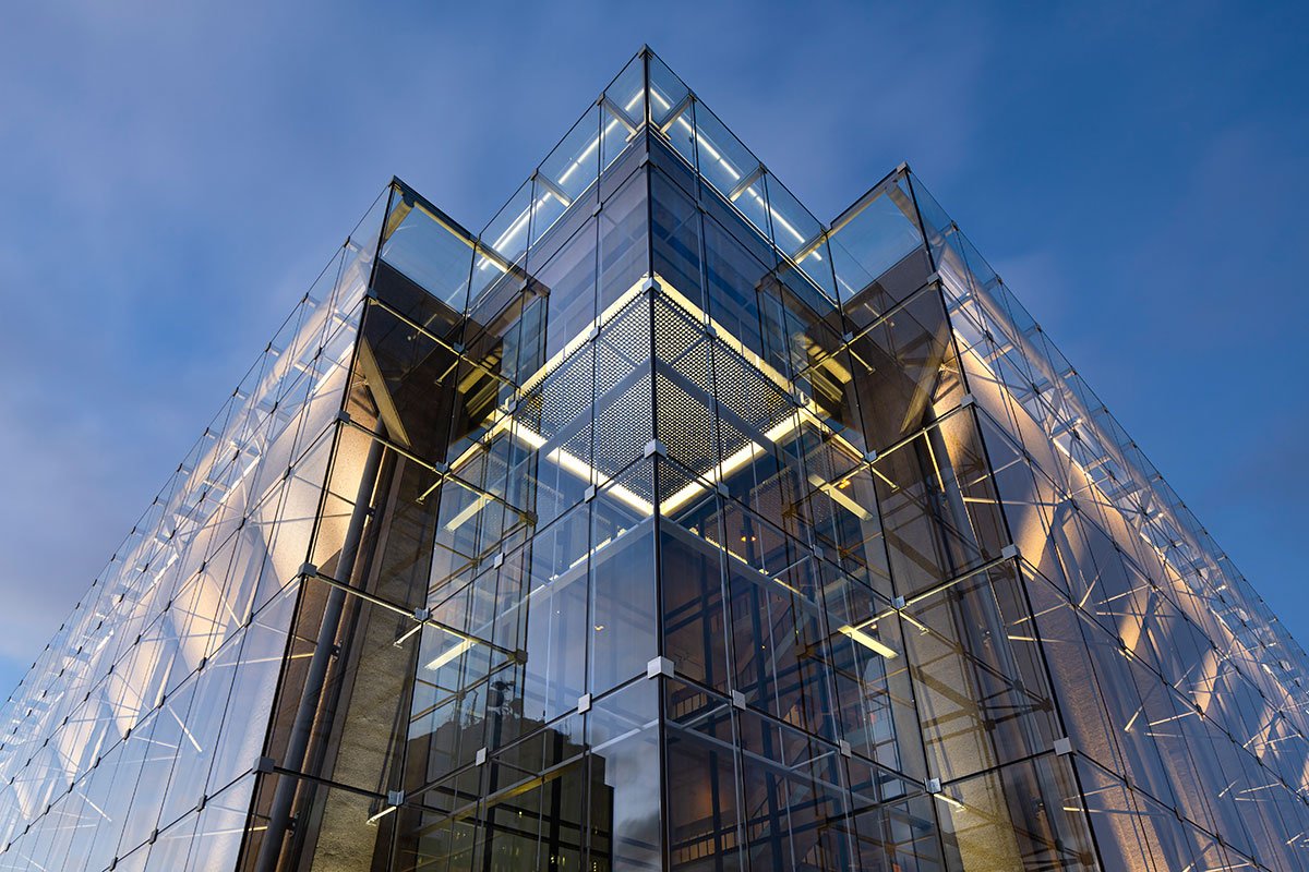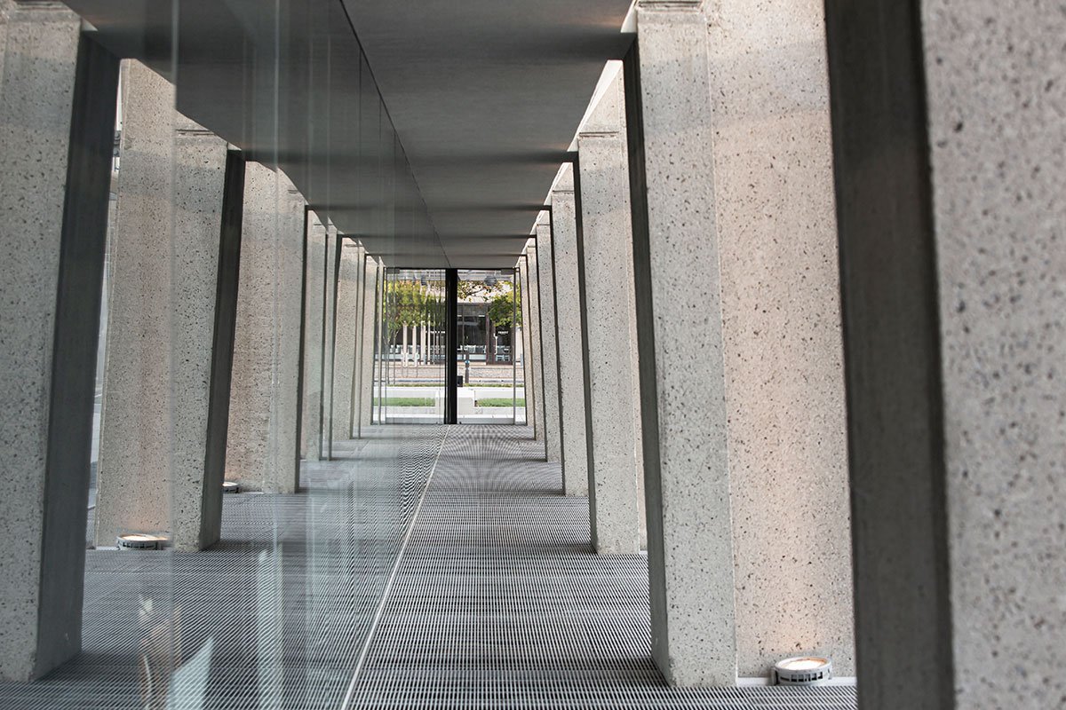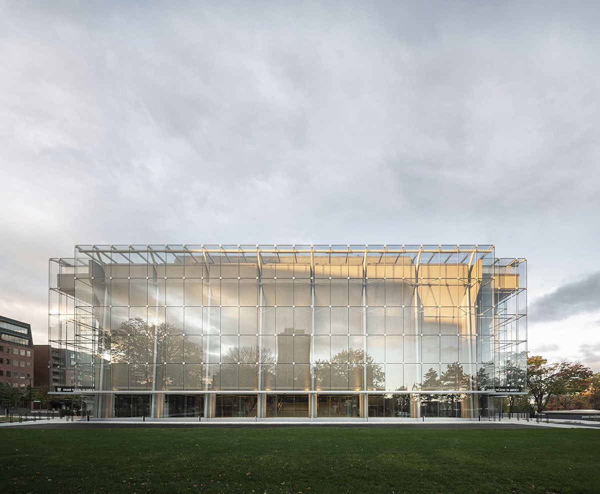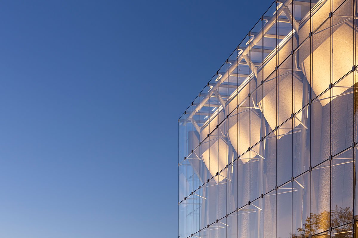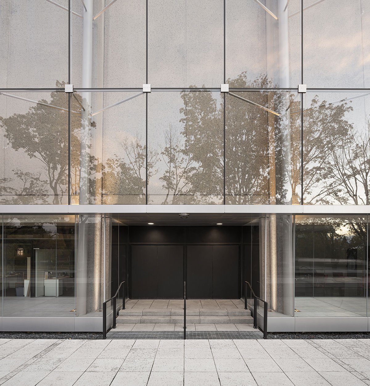 The glass casing was carefully designed in continuity with the structure developed by Victor Prus, the original architect, and the mural work of Jordi Bonet, enshrined by Prus’ protective outer shell. Discrete and almost immaterial at times, it reflects its surroundings and becomes the main interface with the city, adding a theatrical act in the discovery of this significant Quebecois work.