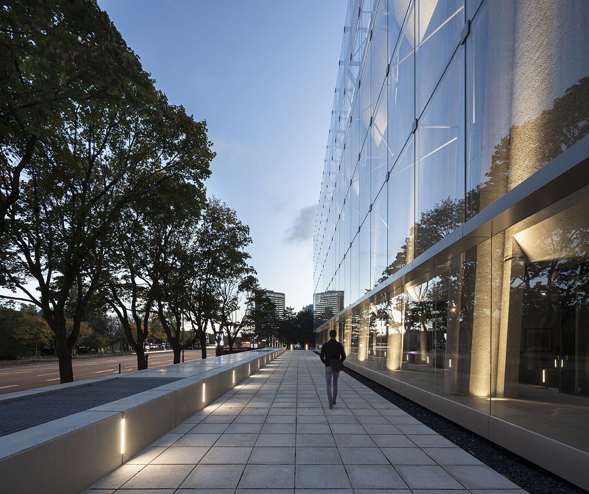 As designed, the thin wall of protective glass shields the Grand Théâtre from the elements by creating a secondary, tempered envelope housing a low-flow heat recovery and thermal mass system. The system is both energy-efficient and economical. Beyond its primary function, the new layer acts as an extension of the original building it protects, using the same finely tuned structural logic and composition.