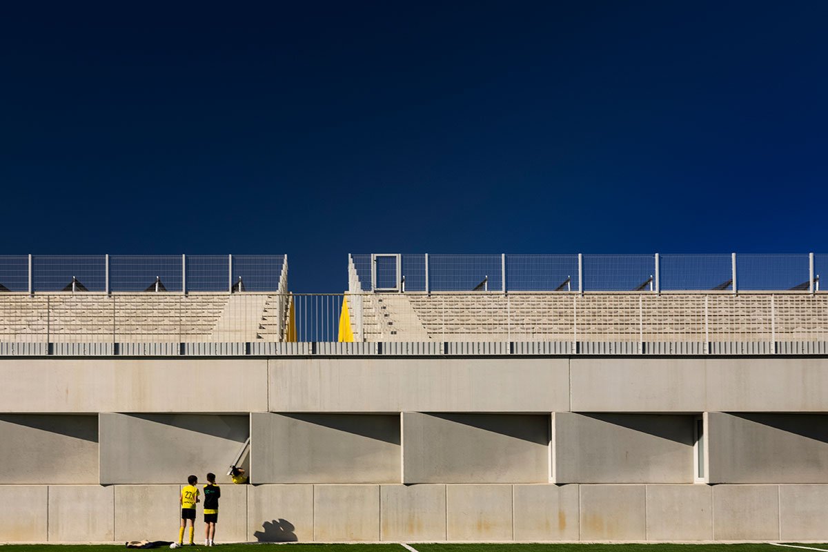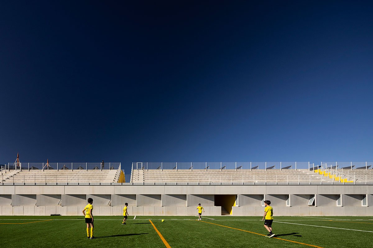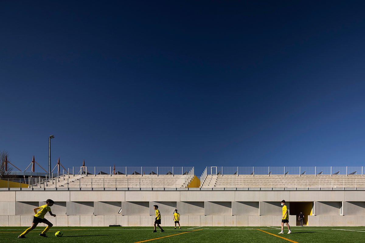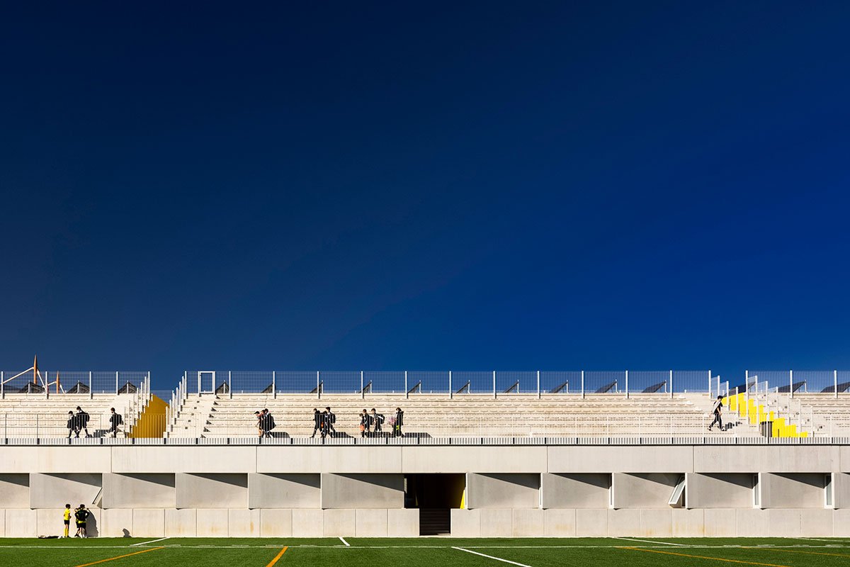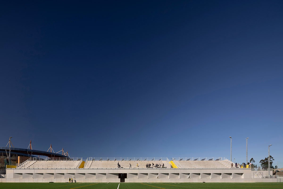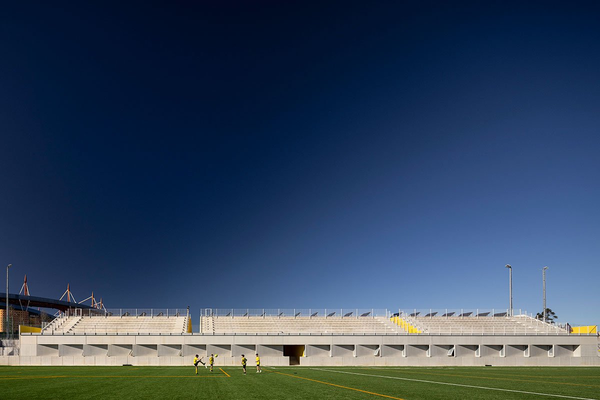 Excerpt: Grandstand Building – Training Complex of the Municipal Stadium in Aveiro, Portugal by SUMMARY, is a public stand that faces both pitches on opposite sides. This configuration generates a series of situations where public life can unfold and a sense of community can be more strongly felt.