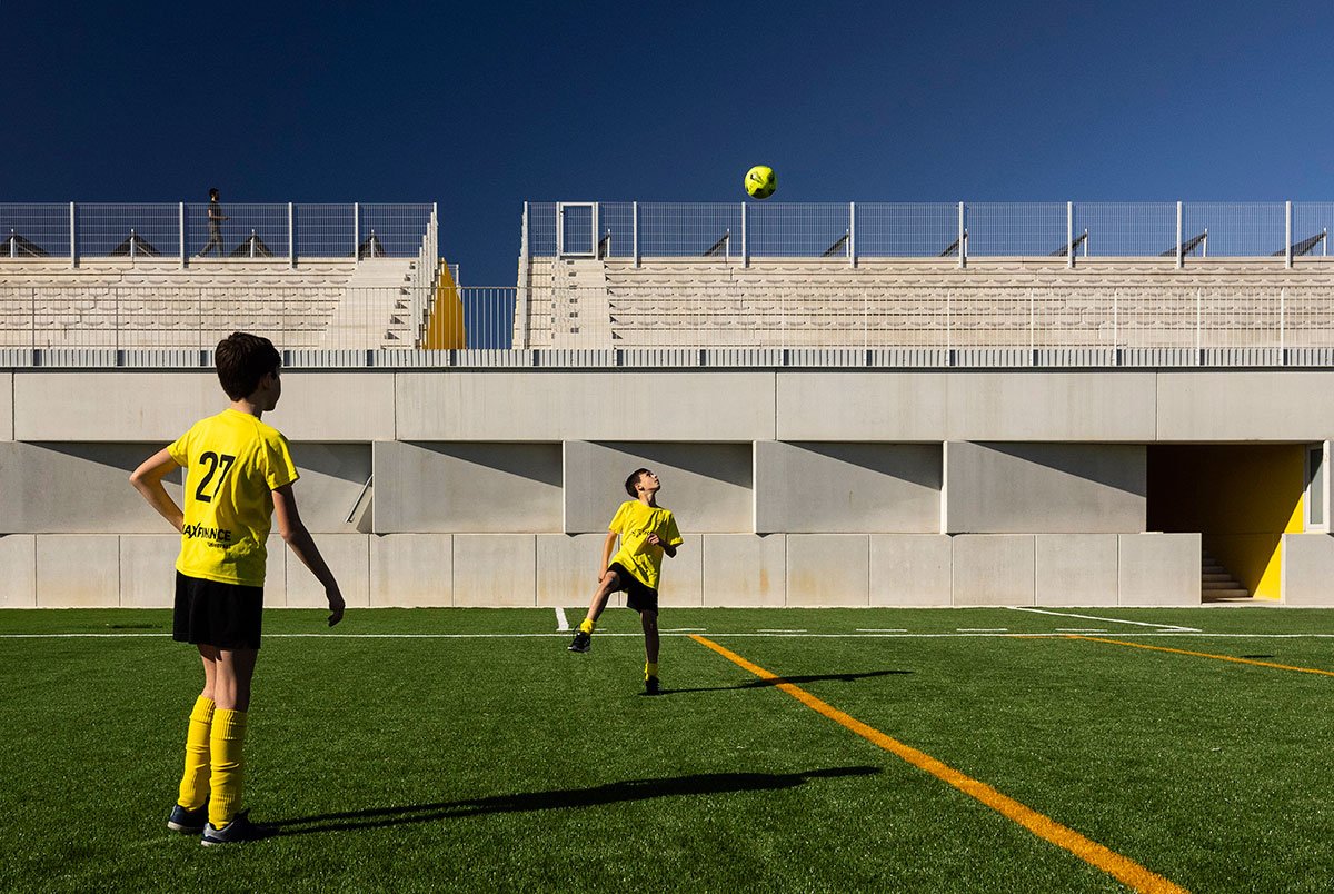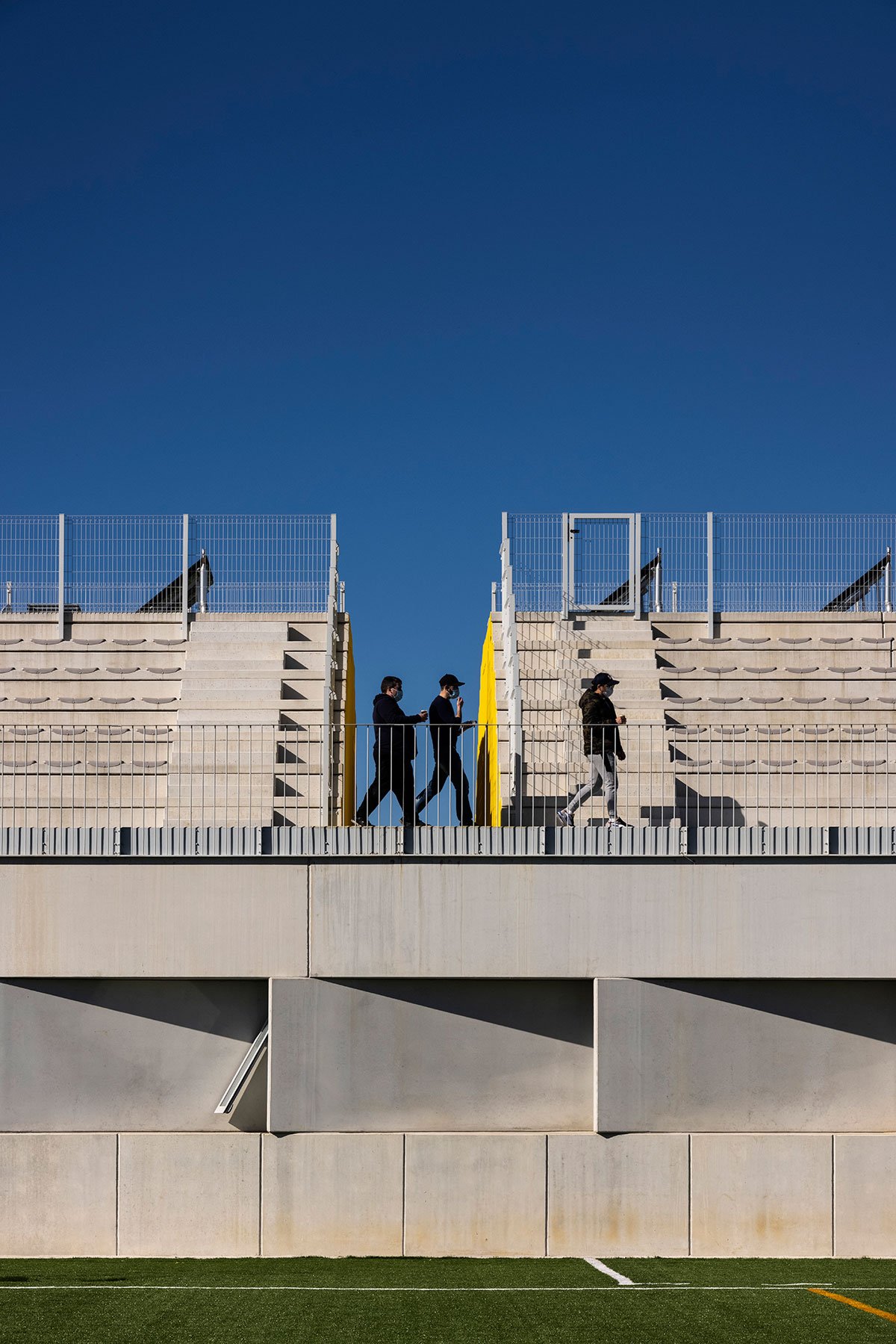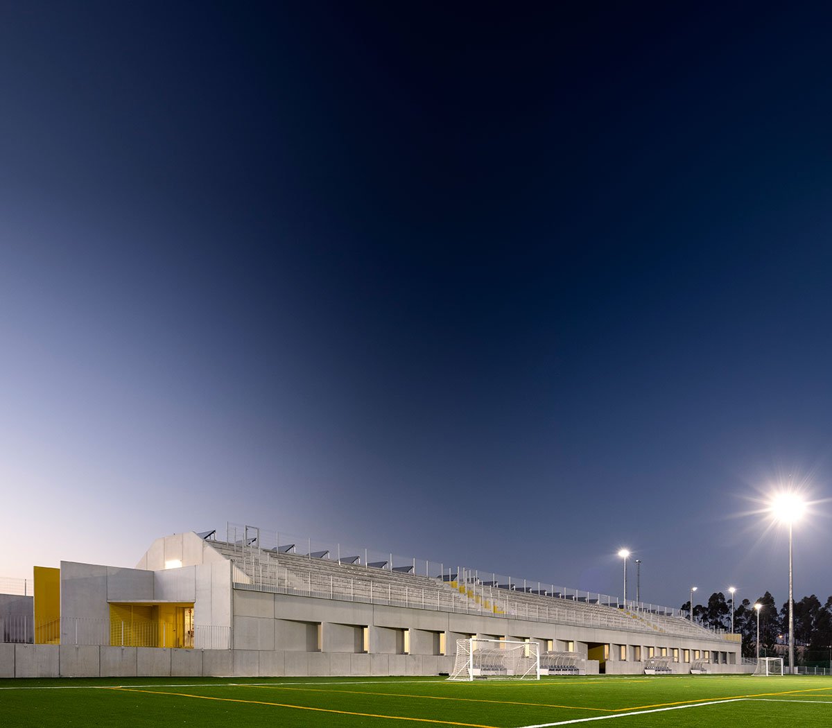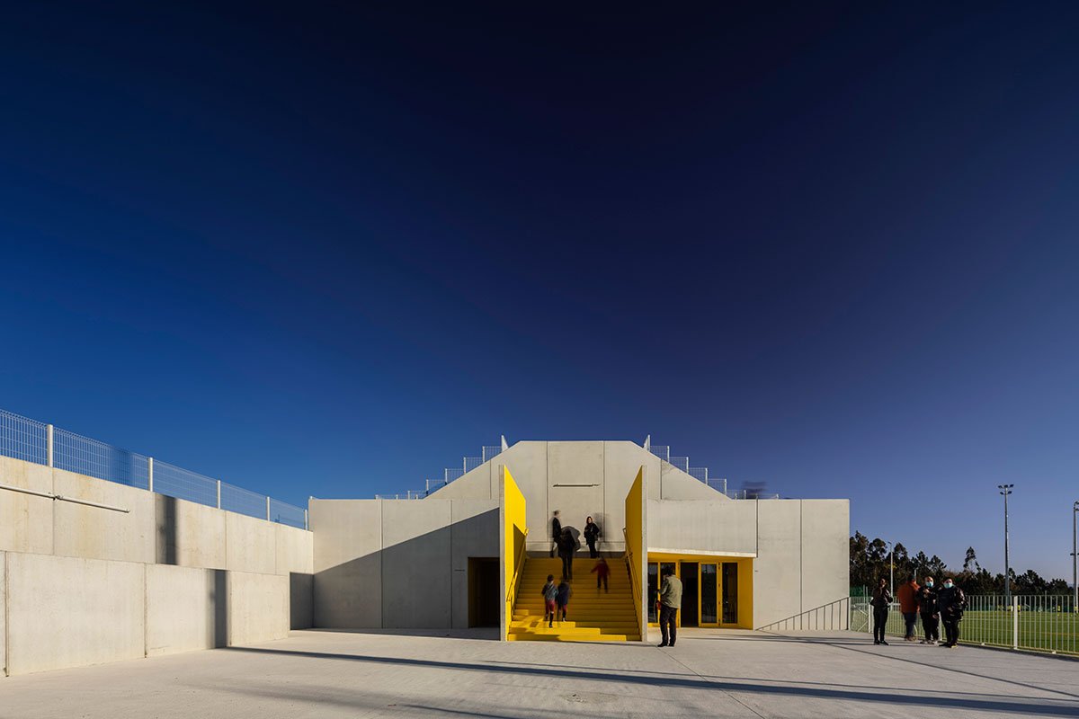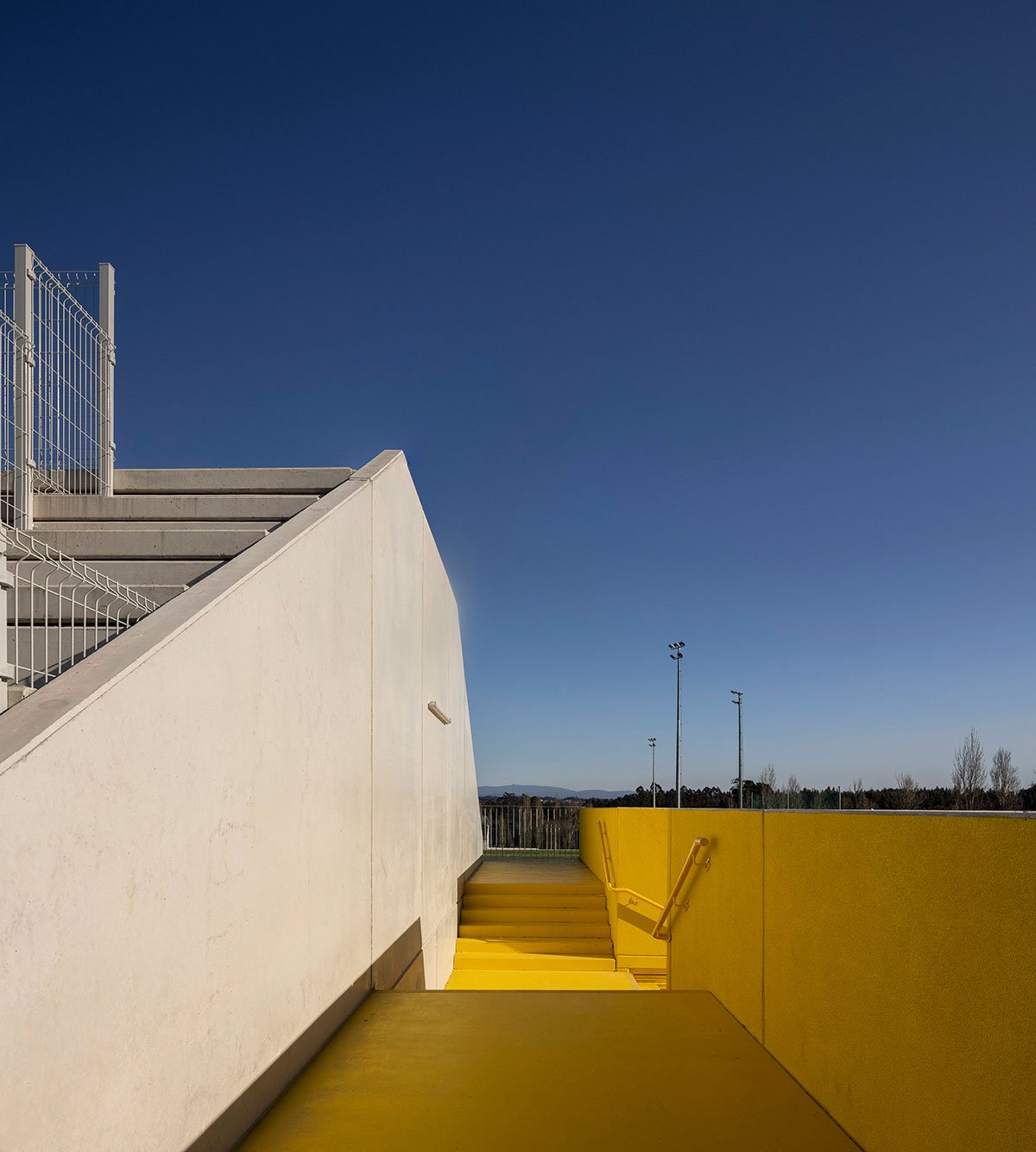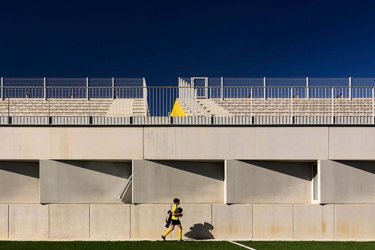 Excerpt: Grandstand Building – Training Complex of the Municipal Stadium in Aveiro, Portugal by SUMMARY, is a public stand that faces both pitches on opposite sides. This configuration generates a series of situations where public life can unfold and a sense of community can be more strongly felt.
