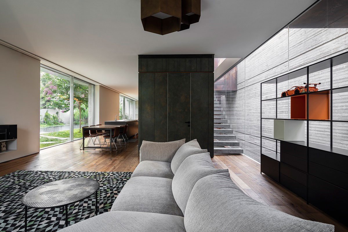 [Text submitted by architect] In our first conversations with the clients we discussed the garden no less than the house. The costumers bought a little more ground out of the neighbor’s site, In order to end up with a bigger garden space. It was clear that the garden has a leading role in this house’s design, though we were yet disturbed that even after the site’s growth, the scale is not enough. So we thought, and then thought some more. We thought a whole lot, but the garden still remained in its unsatisfying proportions. And then we had it. If there is not enough space for one big garden then we shall have two.