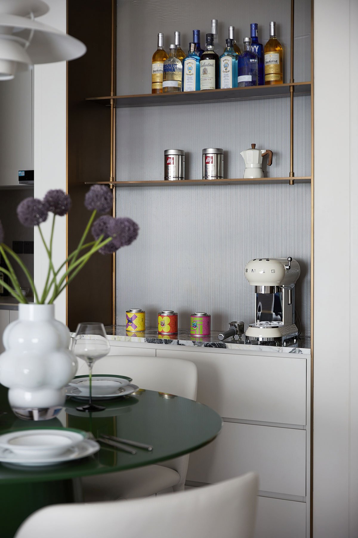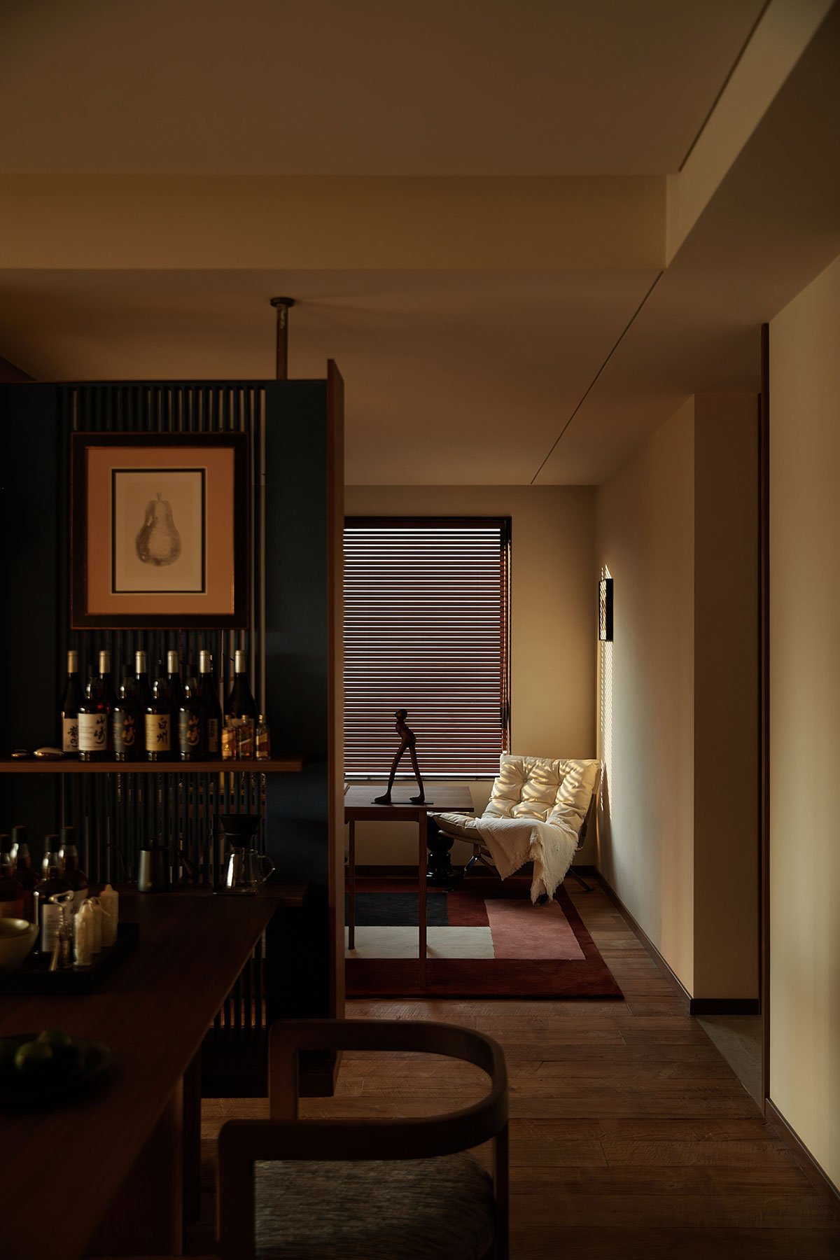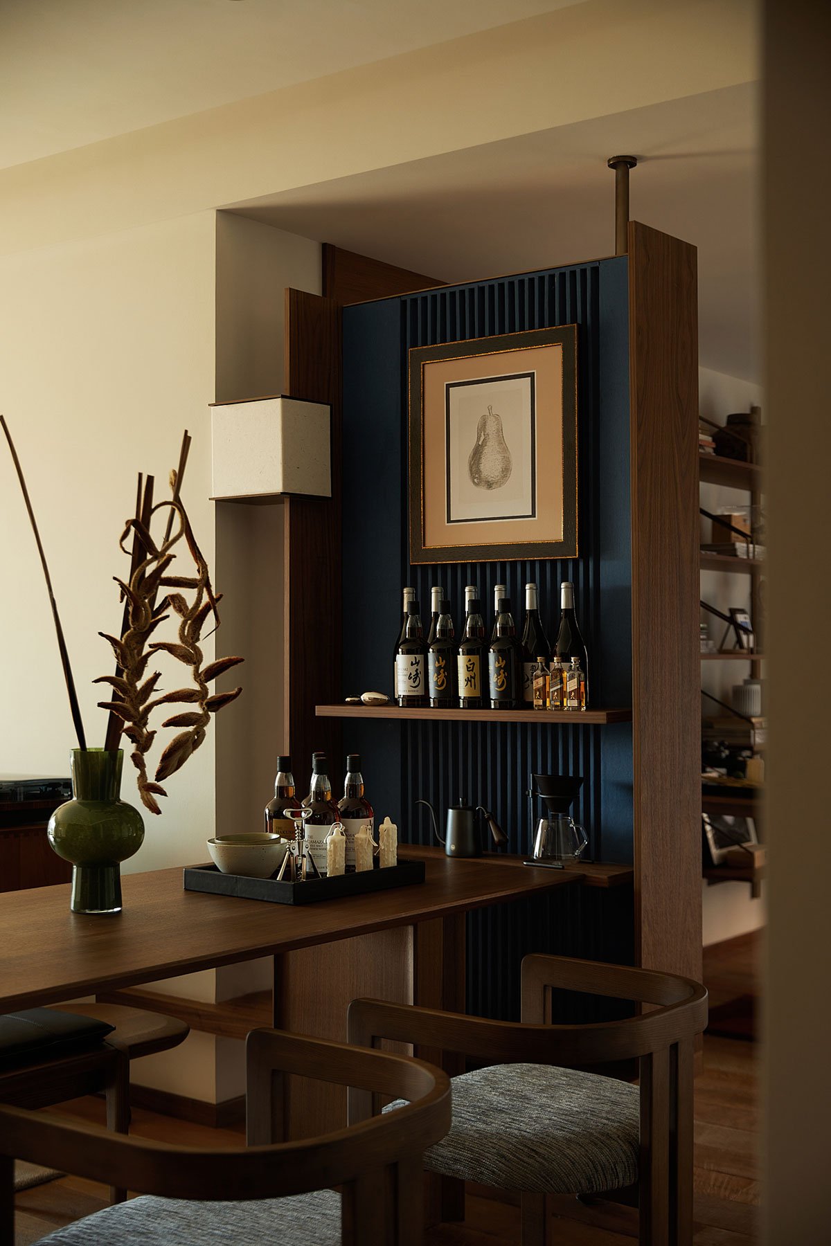 In the study, a lattice-style wine cabinet acts as a divider, creating a space that feels private without being closed off. It’s the perfect spot to curl up with a book, sip coffee, and bask in the sunlight streaming through the window—ideal for moments of quiet reflection.