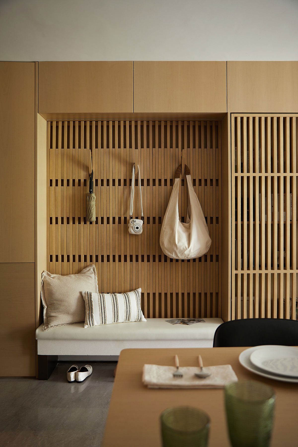03 Nature & Warmth: The first thing you feel when entering this home is its warmth, coziness, and gentleness. The entryway sets the tone for the home, with playful piano-key hooks offering a touch of whimsy, adding a welcoming ritual to your return.