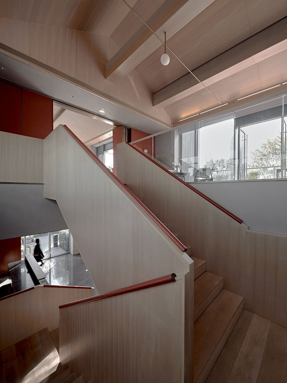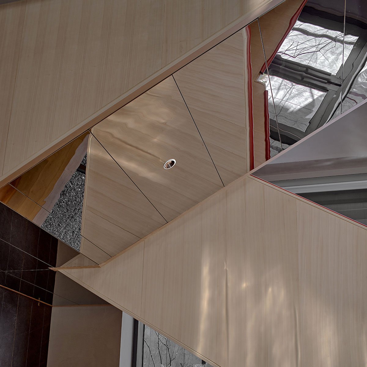 In terms of spatial form, deconstruction is applied in the design to reinterpret the form of traditional roof and wood structure, and reconstruct the relationship between main body, interior and roof.