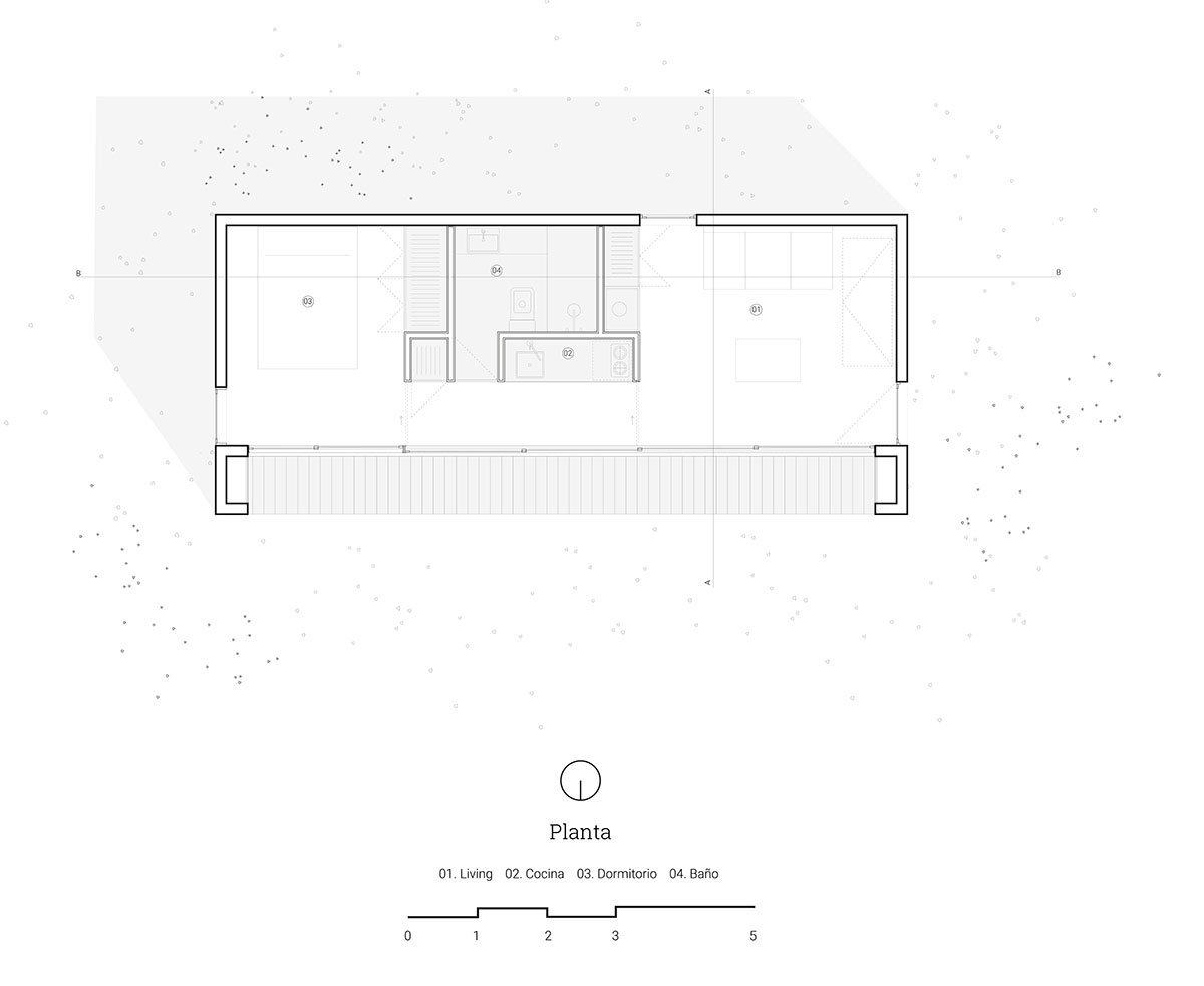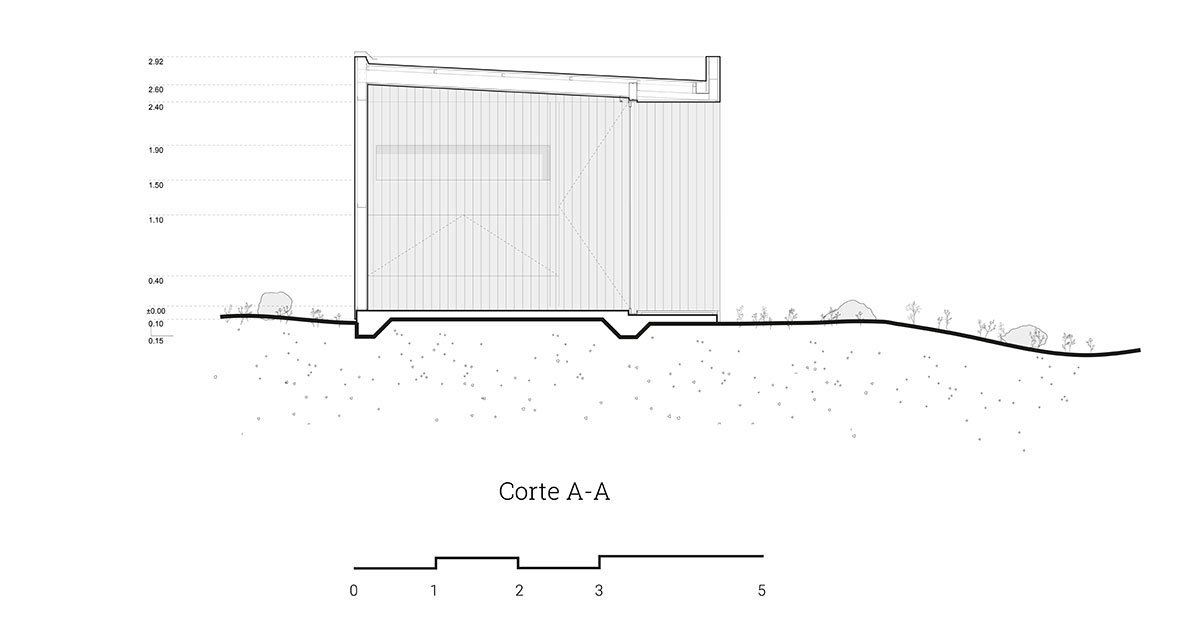 The shelter was considered an anomaly in the sierras that could provoke interest from the geometric contrast of the volume inserted in a natural environment. Its distribution was oriented to be inhabited and provide shelter in short-term stays in an itinerant way. By closing three of its faces to the outside and focusing the interest on the more qualified horizon. In the rest of the surfaces, a series of hierarchical frames are built that crop and propose specific landscape segments that became part of the object’s interior experience. The project needed to guarantee a certain speed of assembly; in that sense, the constructive choice was oriented towards material optimization.