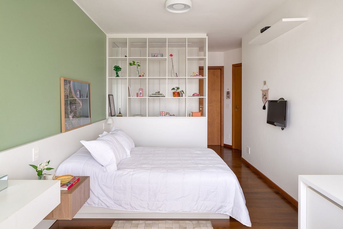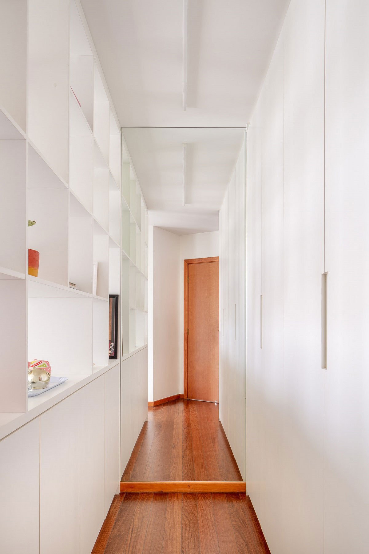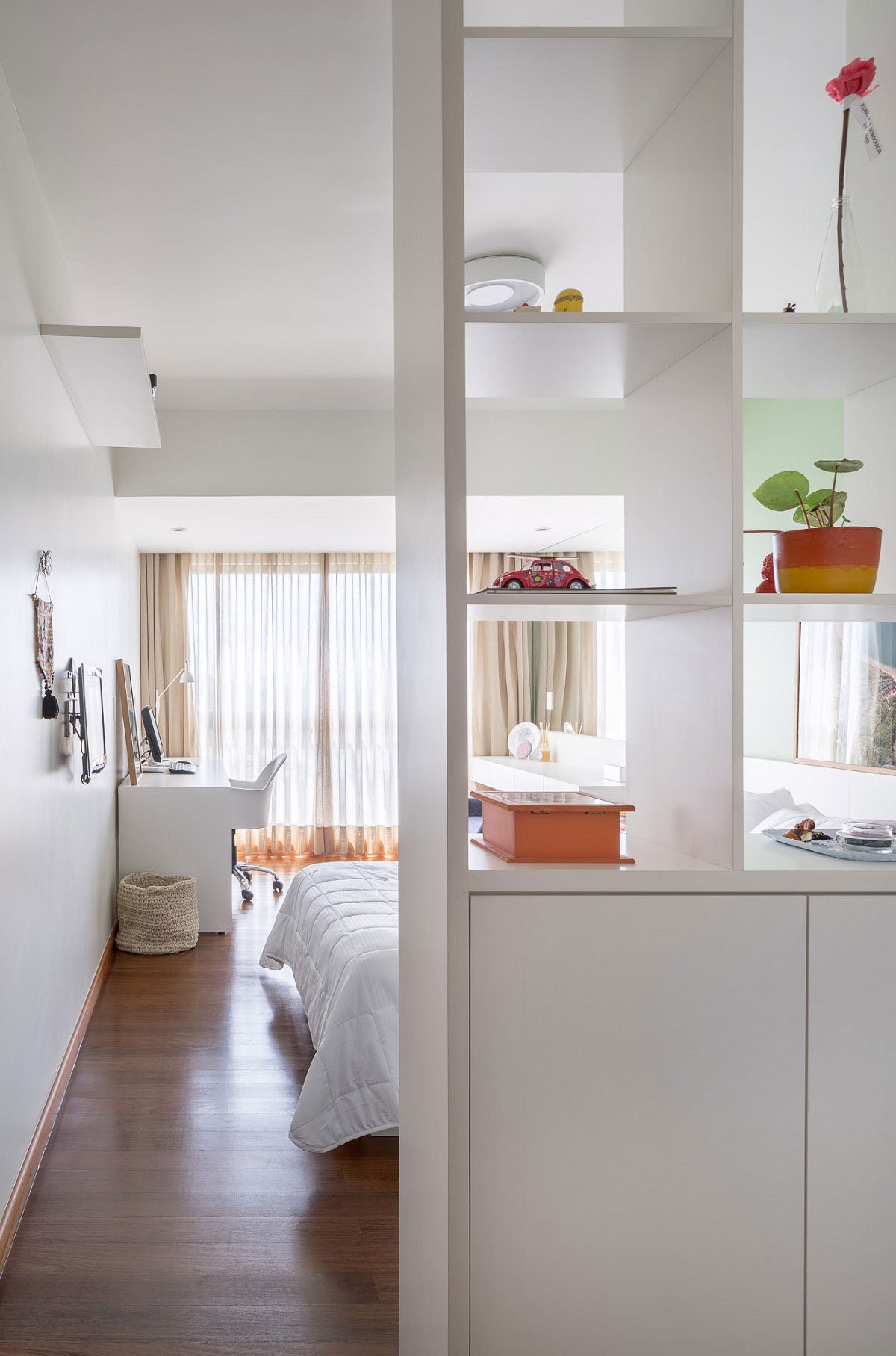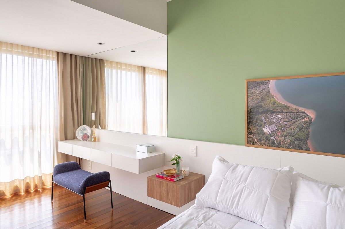 The chosen furniture also tried to agree with the wooden shades of the other elements: all the carpentry designed used white or light shades, bringing lightness and visual unity to the environments.