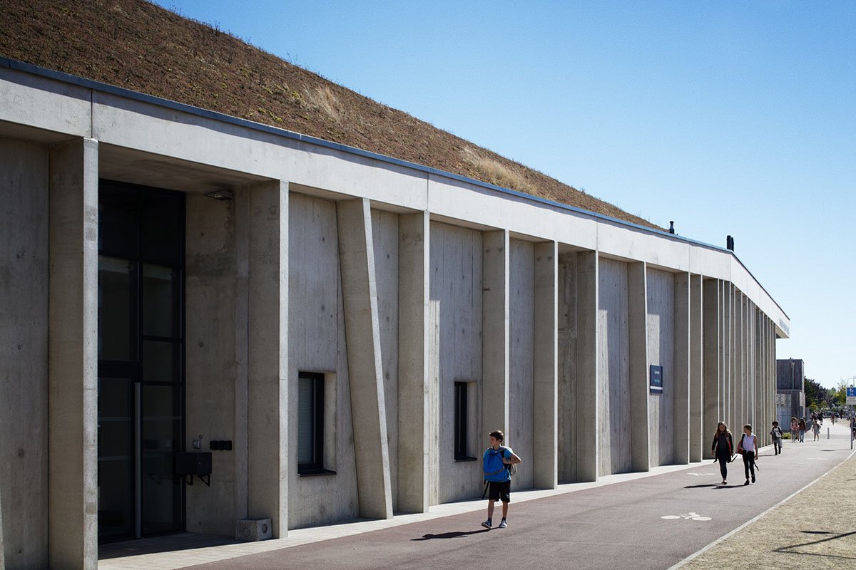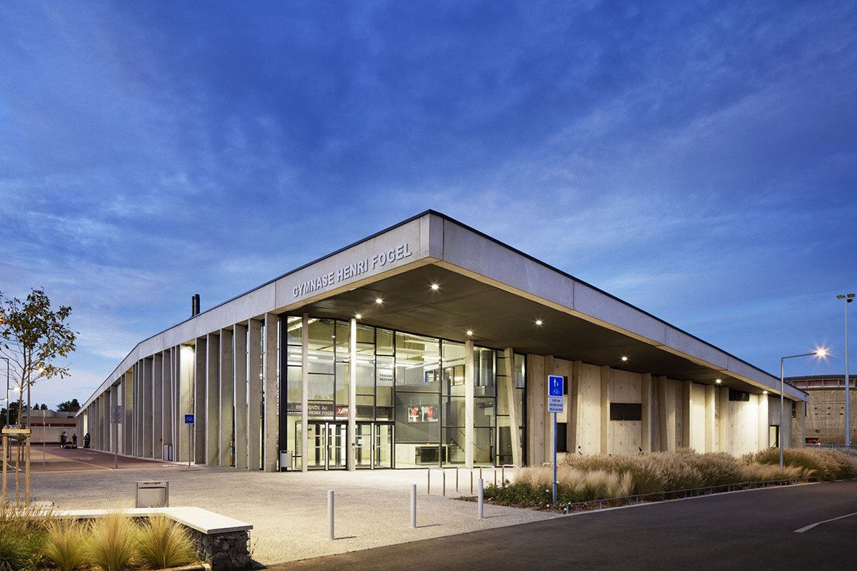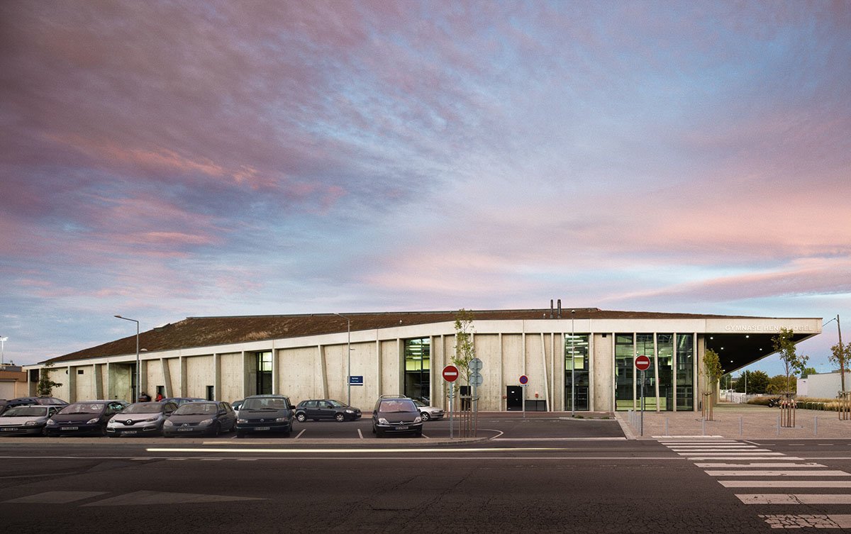 Excerpt: GYMNASIUM Saint Nazaire is a project designed by the architectural firm Christophe Rousselle Architecte. This sporting facility forms a continuity with the architectural heritage already present on the site of the Saint Nazaire sports centre. Despite being an imposing project, it finds lightness in its canted walls and the thickness of the outer shell.
