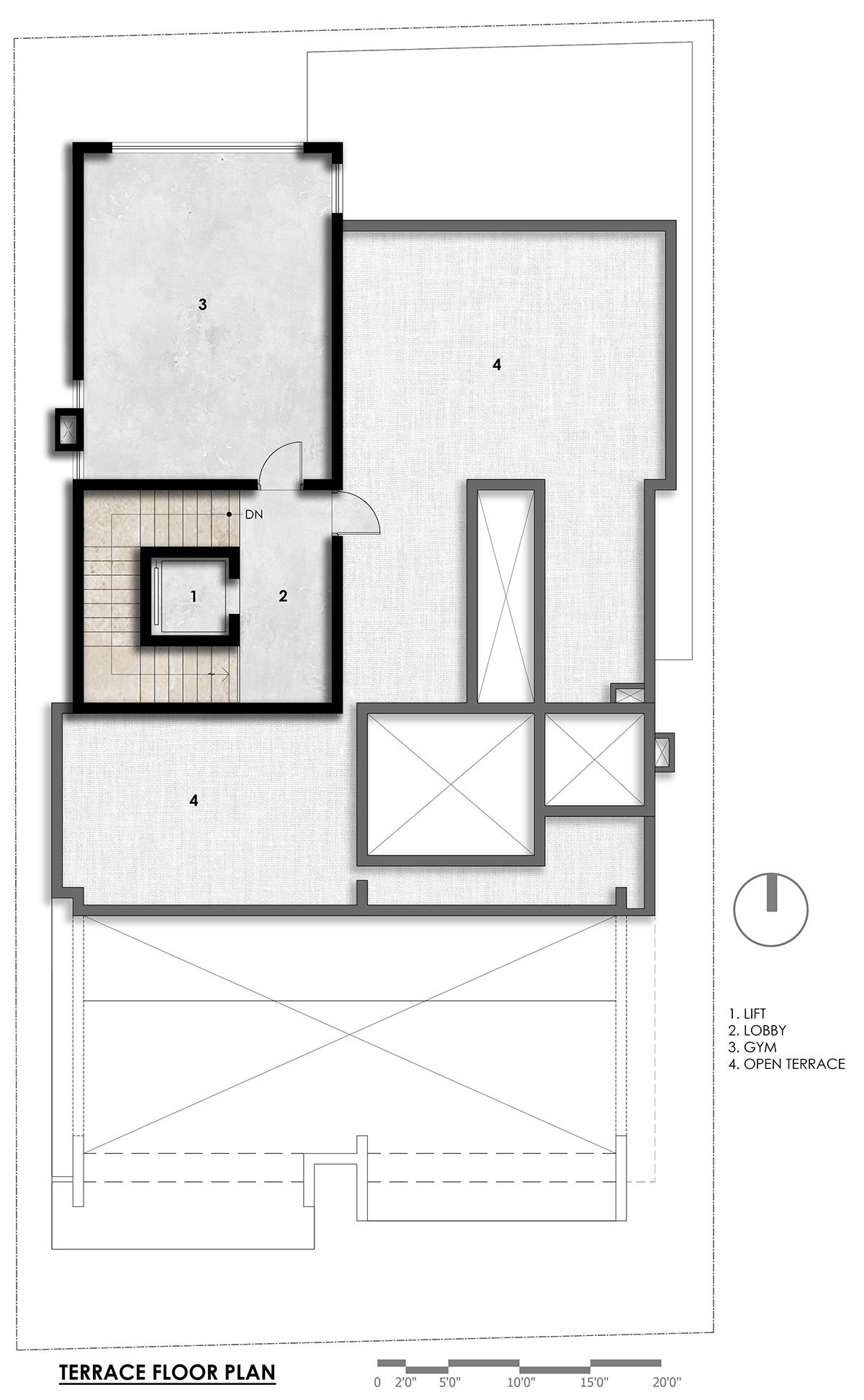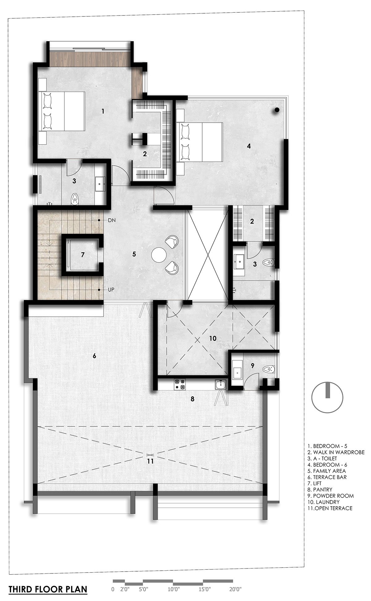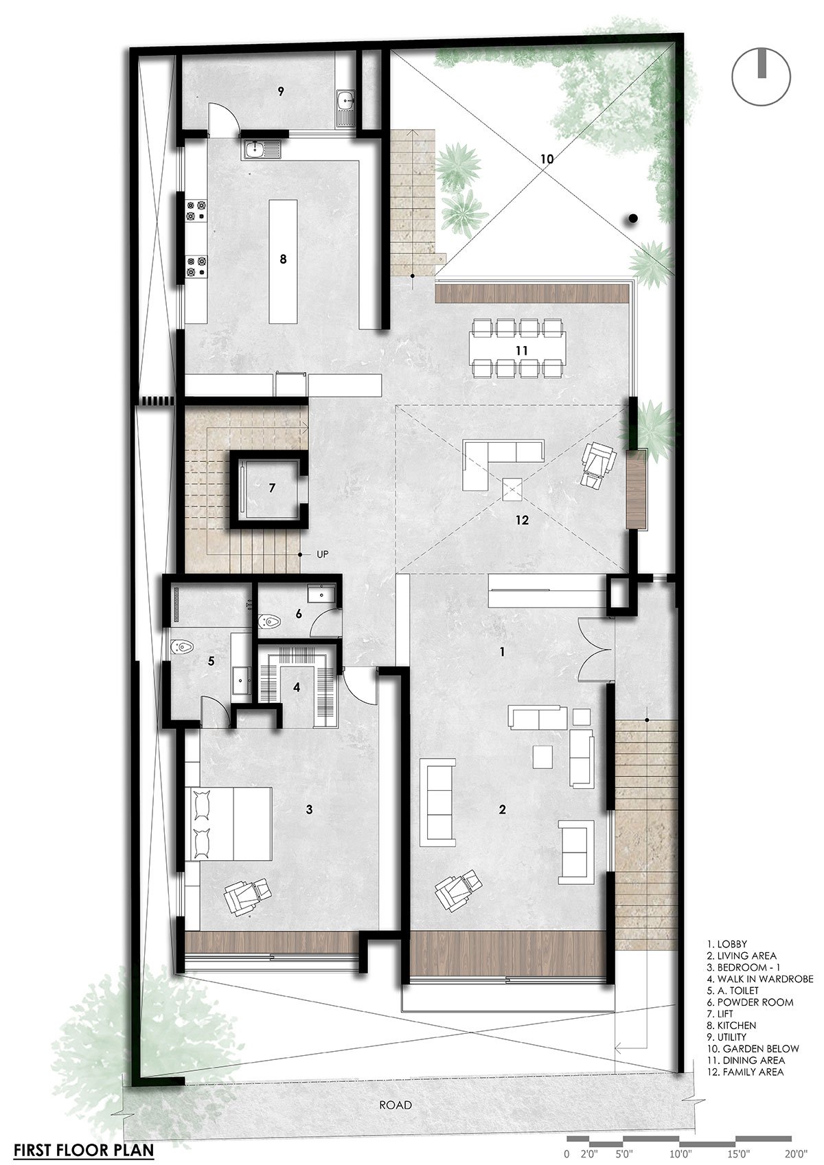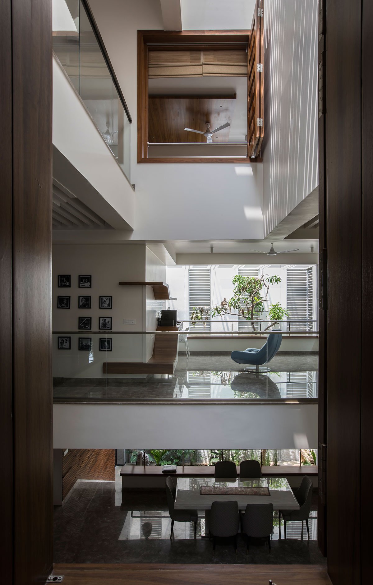 Conclusion: The design successfully addresses all the client’s requirements by integrating natural light into the courtyard and central open space. This design made the house inward-looking and vertically transparent, fostering a strong sense of connection within the family.