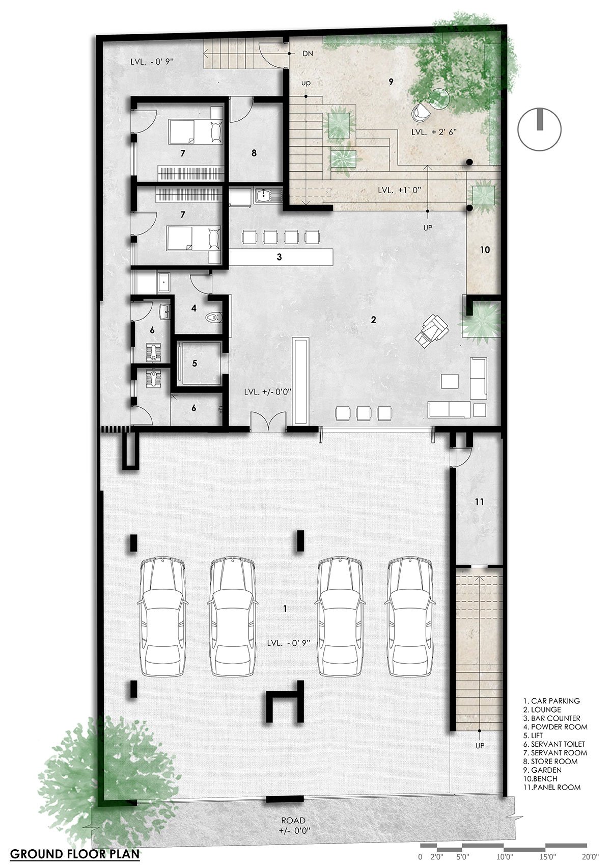 Site Context: The site featured one mango tree in the northeast and one jackfruit tree in the southwest of the site. The design was centered around both trees.