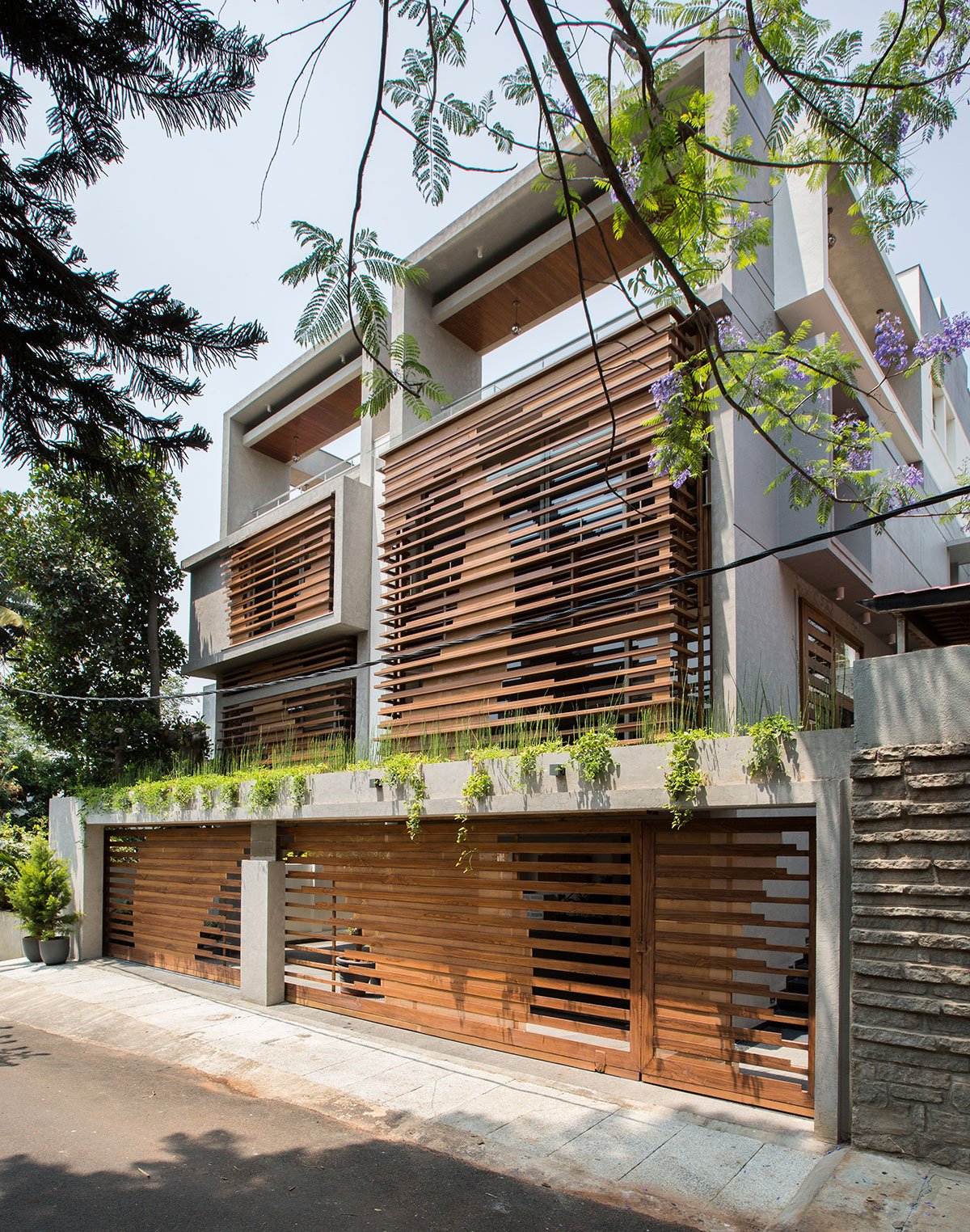 Excerpt: H2, a residence by Design Plus, is designed around two existing trees, creating a nature-centric, inward-looking home. Emphasizing vertical transparency and light-filled interiors, the design integrates a central courtyard, skylights, and staggered volumes to enhance connectivity and spatial flow. The house blends functionality with natural elements, fostering a warm, interactive family environment.