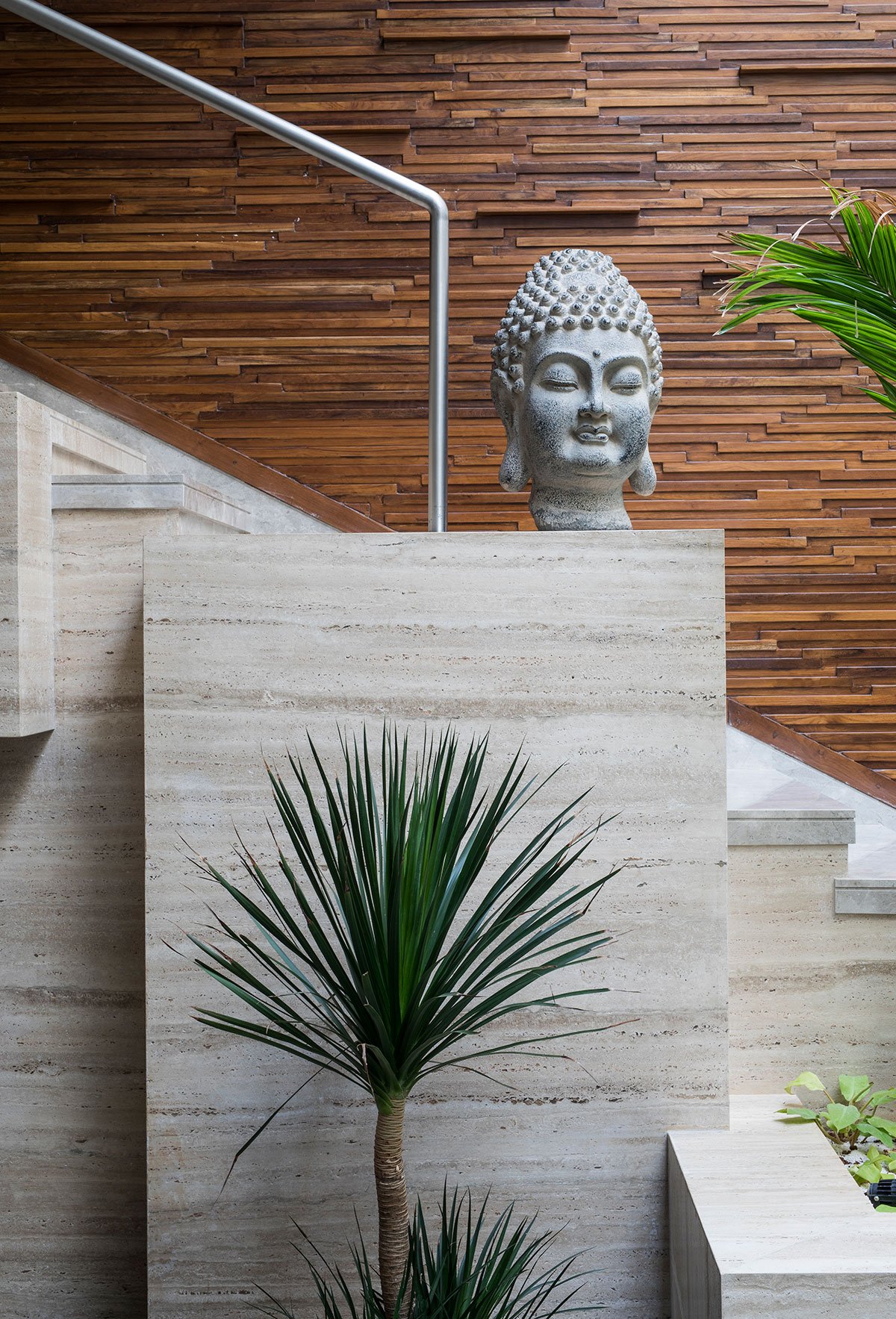 Design Brief: The requirements called for a 6-bedroom house with ample entertainment space for friends and family. The entertainment space on the ground level was positioned next to the mango courtyard, with sliding folding doors. During large gatherings, these doors allow the space to open up to the car park, creating a fluid connection between the areas. The mango courtyard opens into the entire section of the house. A sculptural staircase bridges the courtyard and dining area.