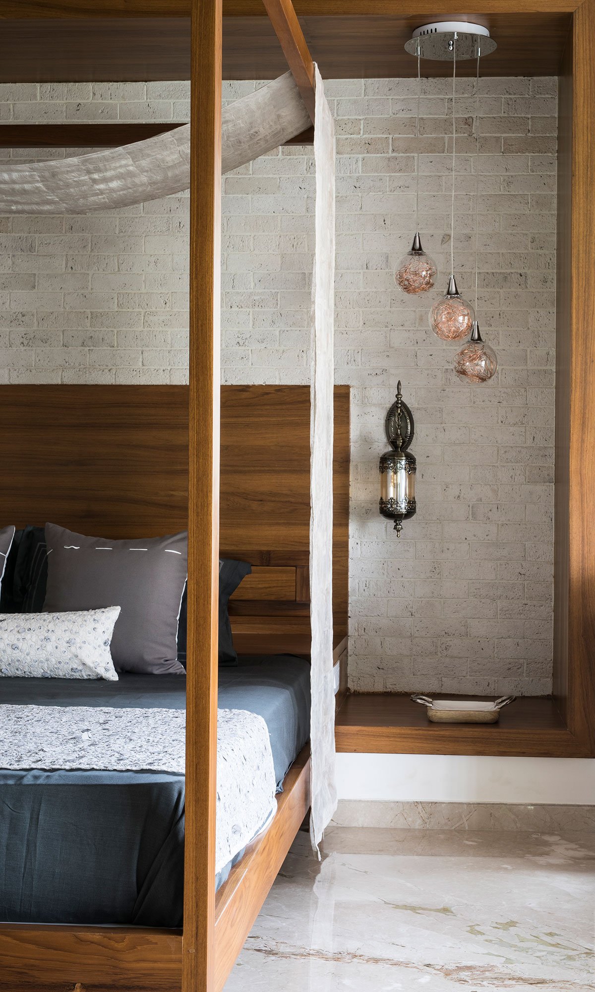 The bedrooms feature large benches in place of balconies, with well-designed metal trails outside the benches. This creates a play of light and shadows while reducing heat gain. The terrace is aligned towards the front and opens to a large green space, overlooking the Air Force Command and CPRI, ensuring good cross-ventilation.