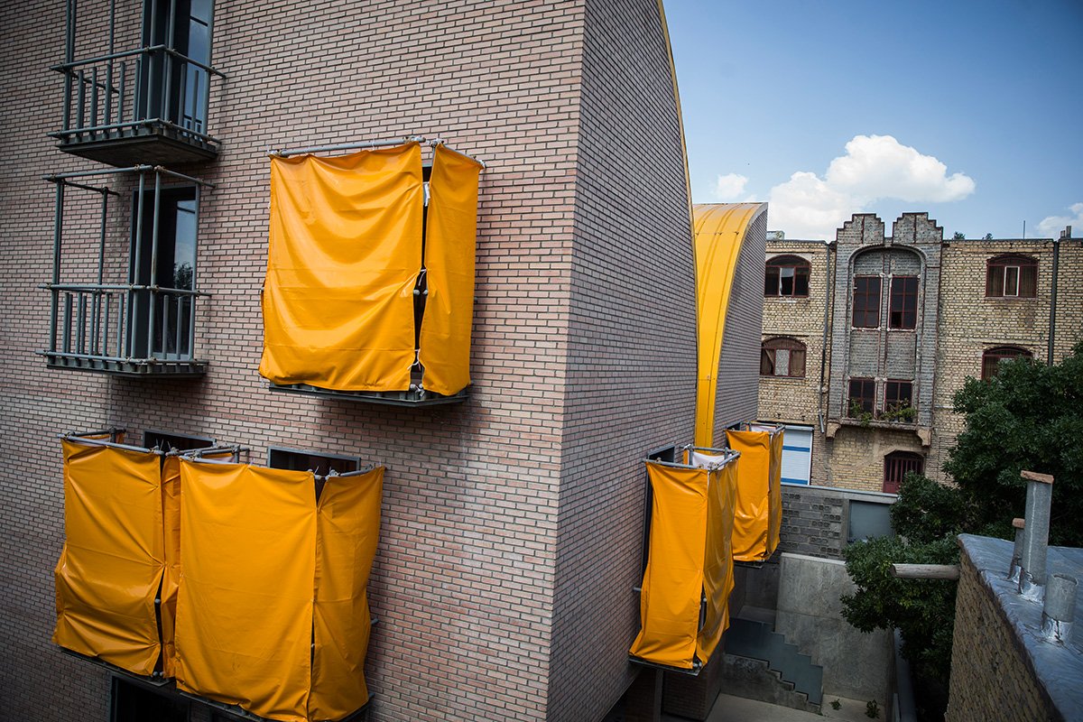 The “oppressed” is “liberated”: It is hard to exercise one’s right in choosing one’s lifestyle as an orphaned girl in a male-dominated religious city such as Khansar. In a critique of the status quo, although the architecture of the shelter adopts an introverted typology in response to concerns of security and security of the girls, the facade of the project transforms to a medium that allows the building to close down or open up to the city as the girls need or desire, capitalizing on the hand-operated exterior curtains of the balconies. As the girls learn how to operate the building, they exercise their limited right over their practice of life. For instance, one girls’ discrimination in such a culture was their deprivation from being in project photos.