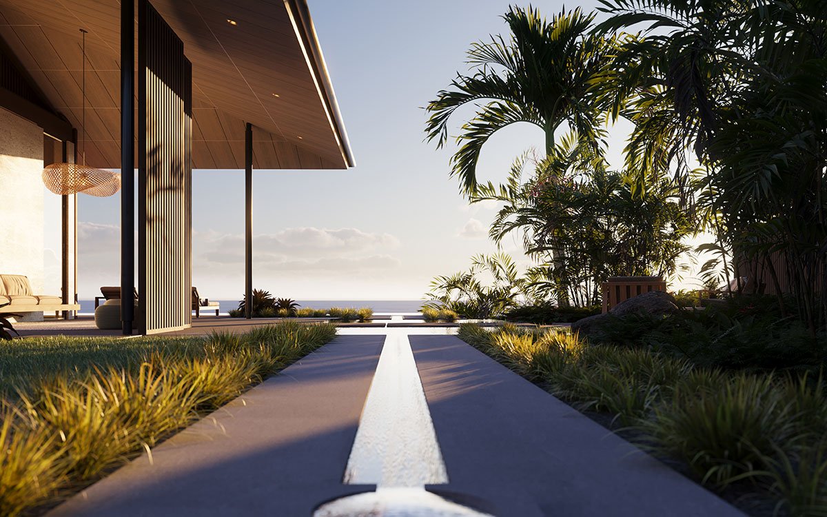 The gathering points focus on significant natural features and phenomena which define Kauai such as Mount Haupu, breaking waves on Kukui’ula harbor reefs, and invite enjoyment of atmospheric conditions such as clouds, rainbows, sunrises and sunsets. Material choices reflect elements which define Kauai; lava, limestone, coral, wood, and water.