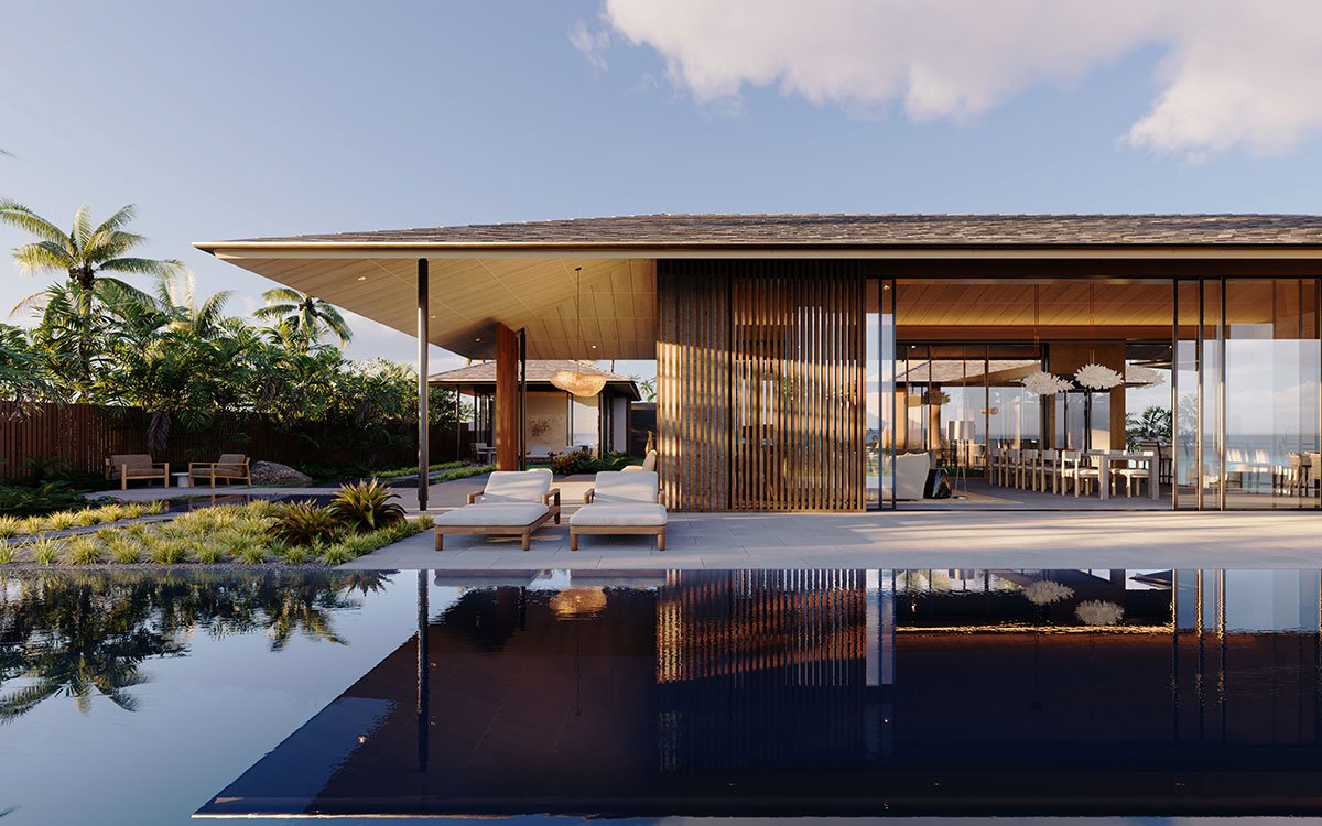 Excerpt: Hale Hapuna by Eerkes Architects is a retreat designed to enhance family interactions and connect with Kauai’s South shore’s land and seascape. The exterior spaces of the house offer multiple gathering points with stunning natural features, including intimate seating areas nestled in lush plantings. The material choices reflect elements of Kauai, such as lava, limestone, coral, wood, and water.