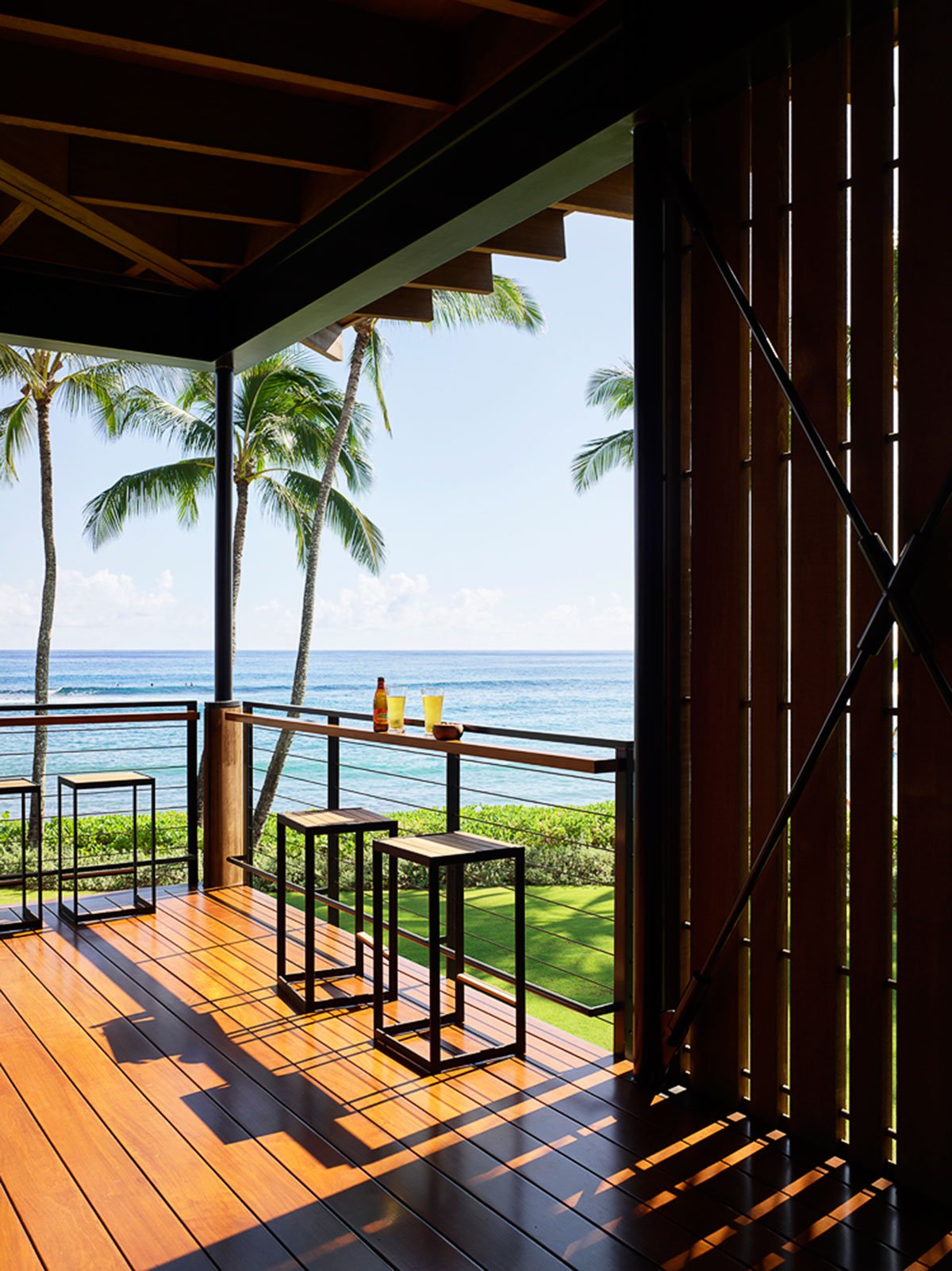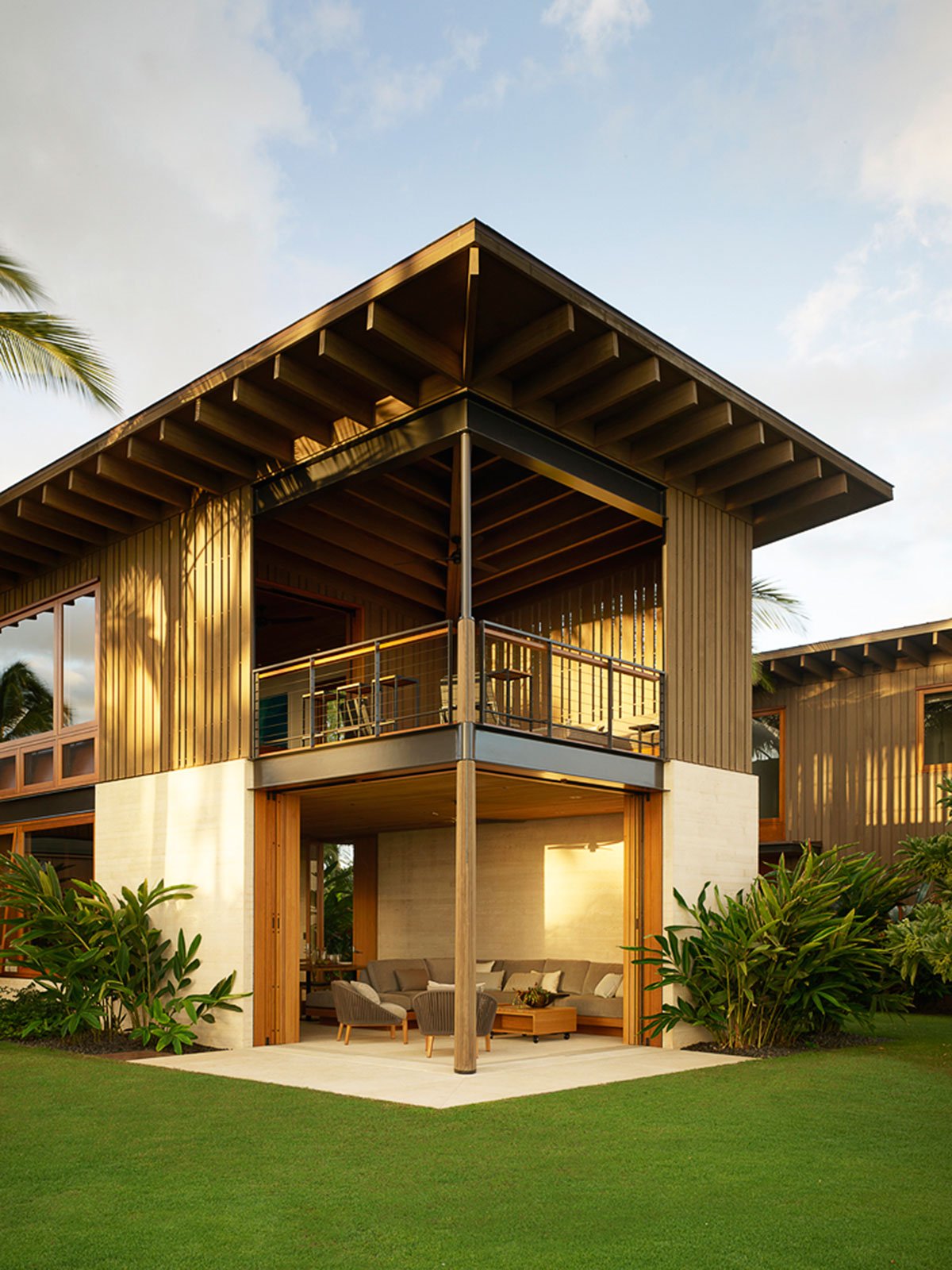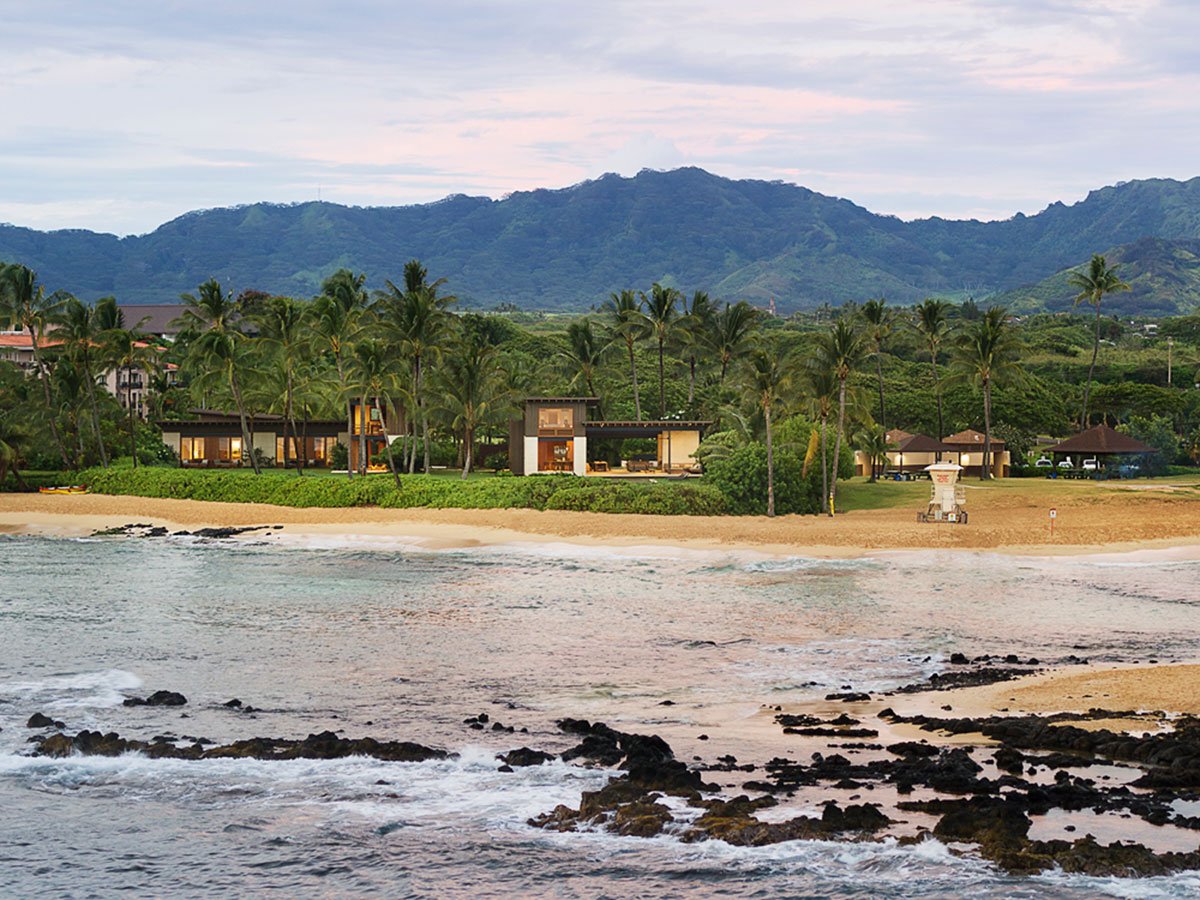 [Text as submitted by architect] Hale Nukumoi is the quintessential Hawaiian beach retreat: open and casual—the opposite of fussy. Set amidst mature palm trees, the complex is ready-made for family and friends. Composed of a main house and guest house, the site features a large yard and pool, as well as beach access. An indoor/outdoor lifestyle is exemplified by the home’s airy design: large sliding doors and walls, a custom two-story rainscreen, and layered plantings balance connections to nature with privacy.