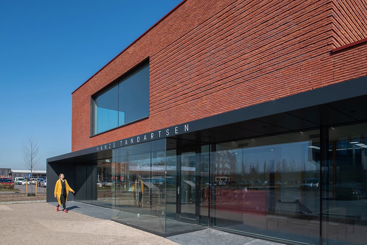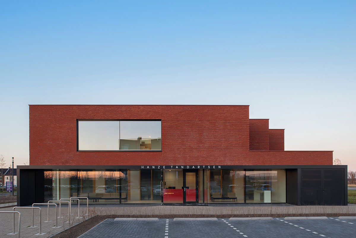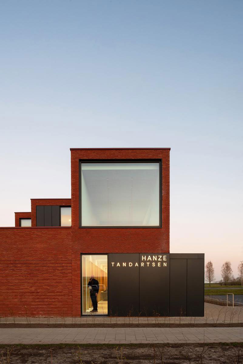 Excerpt: Hanze is a dental clinic designed by the architectural firm BURO/S ARCHITECTS. A dynamic, striking volume was developed, which was easy to recognize both from the residential area and the nearby highway. Additionally, the client wanted the building to convey the values and mission of their practice, where patients’ comfort and wellbeing always come first. The practice also had to be as compact as possible and potentially expand in the future.