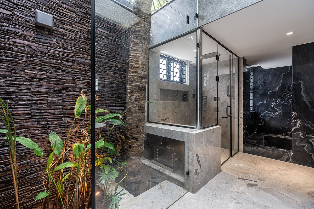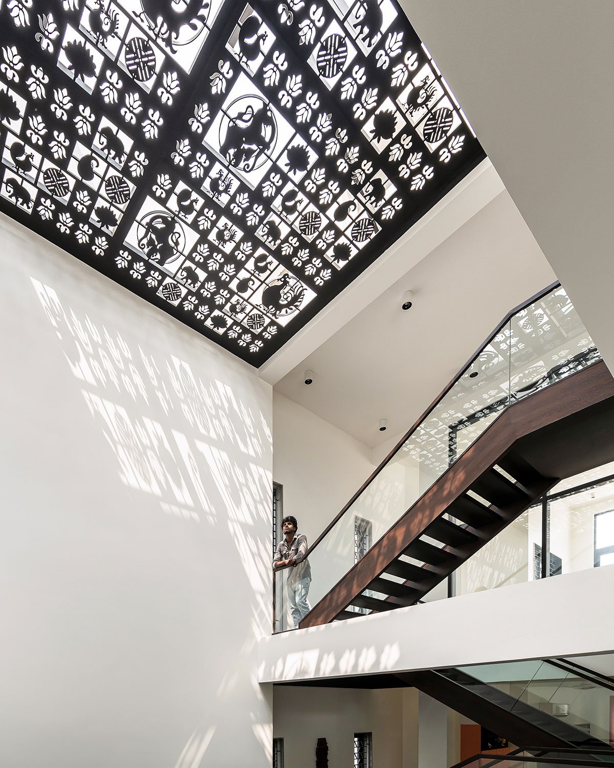 The home features five thoughtfully designed bedrooms, each with its unique purpose. The client’s parents’ bedroom is situated for easy access, while the master bedroom shares a direct connection with the daughter’s bedroom, fostering a sense of family closeness. Two additional guest bedrooms provide privacy for visitors. Every bedroom opens to a balcony, offering visual connections to the outdoors and inviting in natural light and fresh air.