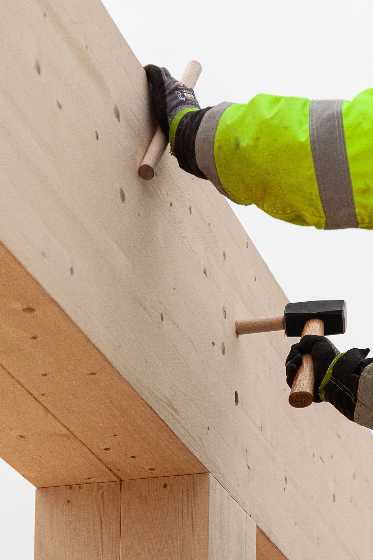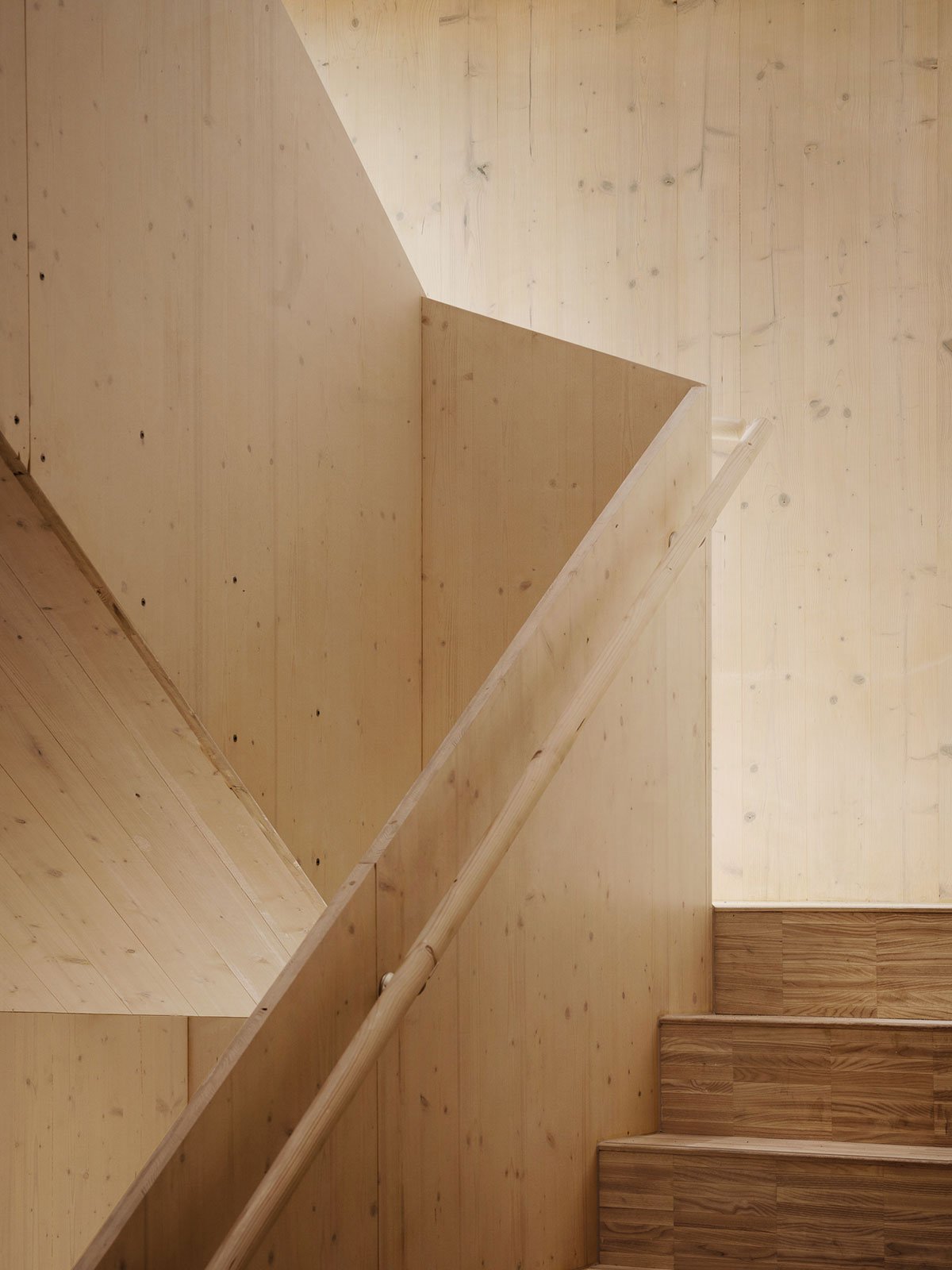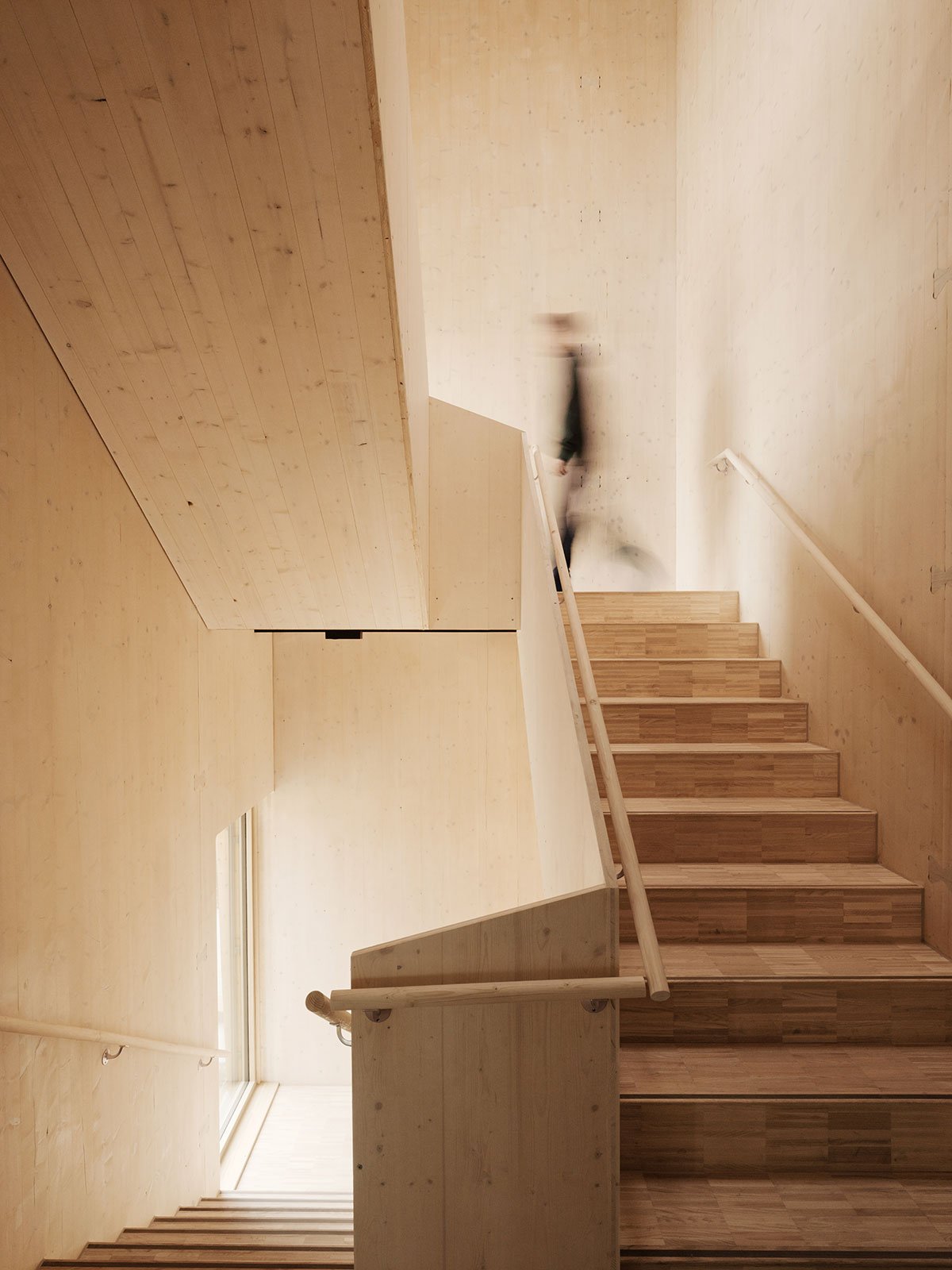Ingenious timber-to-timber connections, such as glulam columns and beams joined with beech dowels, and CLT walls and slabs utilizing X-fix connectors, culminated in a steel-free construction system. This timber-centric approach curtailed steel use by over 80% compared to concrete alternatives, while adaptable technical solutions enhance longevity.