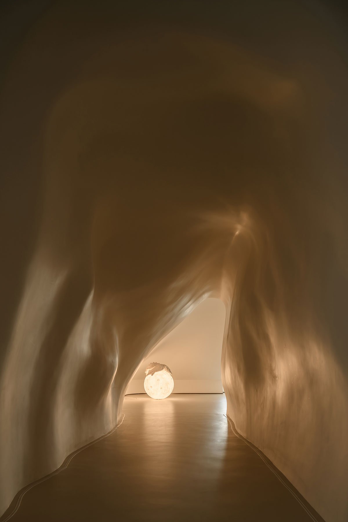 On the basis of preserving the original structure, the interior has been transformed to create a more natural sloping roof. The gentle light filtering through the wrapped window resembles a candle in an ancient cave, purifying the mind and bringing clarity and serenity to one’s inner self.